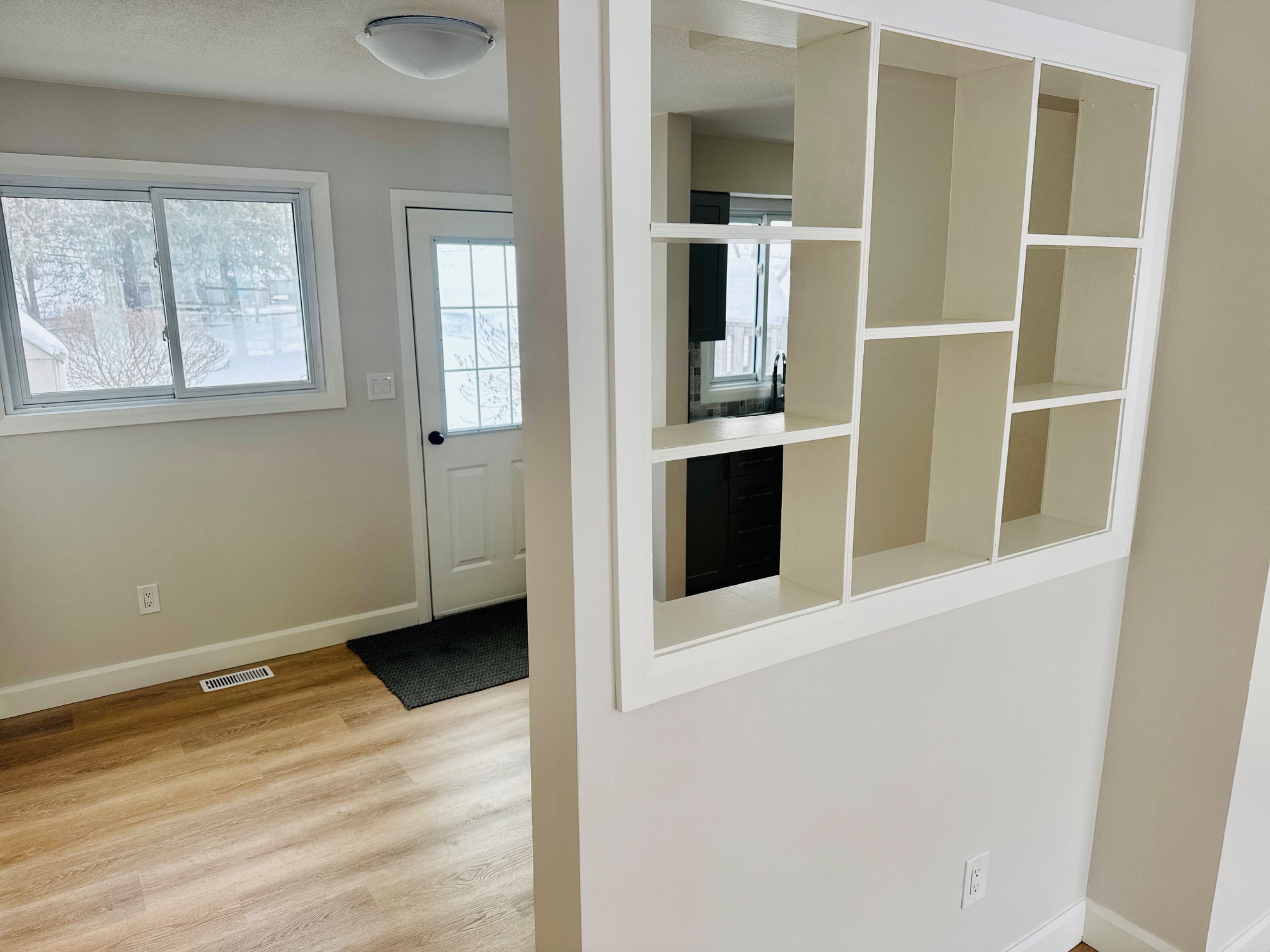 Beautiful semi-detached home has been completely updated with new trim, lighting, doors, carpeting and life-proof vinyl flooring throughout. The bright new kitchen features new ss fridge & stove, a tiled backsplash, and a view of the backyard. The freshly renovated washroom features a subway tiled tub surround. The laundry area is tucked at the rear of the basement includes washer and dryer. Further development potential with good sized windows. Walk out from the dining area to a concrete patio. Good sized backyard backs onto farmer's fields. Spacious shed for additional storage.
