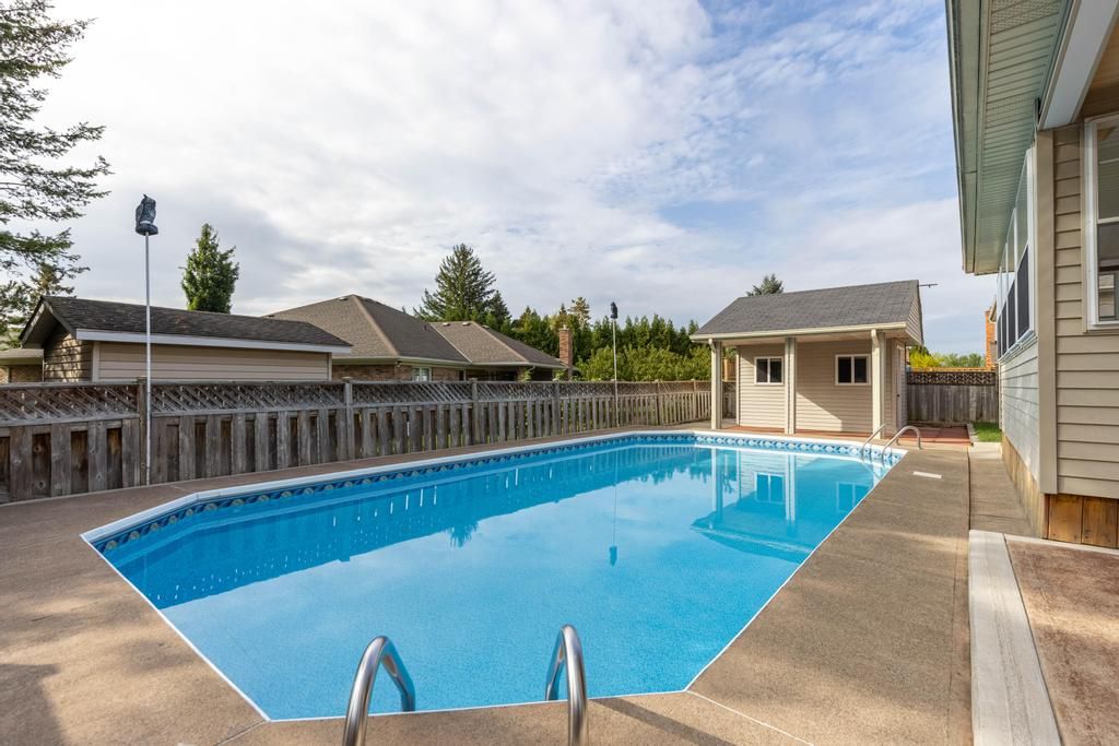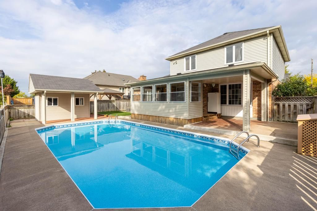 There's something timeless about a home that has been loved by the same family since day one. That feeling of comfort and permanence begins the moment you arrive at this classic 2-storey in a sought-after st. Catharines neighbourhood. With its double garage, covered front porch, bay window, and welcoming double doors, curb appeal comes naturally here. Set back on a generous lawn with low-maintenance yet charming gardens, the house makes an impression before you even step inside. The main floor opens with a grand curved staircase in the foyer, setting the stage for the character and space that define this home. From here, you'll find a family room anchored by a bay window, flowing seamlessly into a formal dining room. The eat-in kitchen sits at the heart of the home and connects directly to the sunken living room where a fireplace and oversized window create that classic, movie-like atmosphere. Just beyond, a 3-season sunroom opens onto the backyard. With an inground pool, shed, fenced yard, and low-maintenance gardens, this space is ready for entertaining or unwinding. Also on this level: a powder room and a laundry room that doubles as a mudroom. Upstairs, 3 large bedrooms offer plenty of room for everyone. The primary bedroom includes a walk-in closet, while the others feature double closets. A skylight and high ceilings brighten the landing, while a 4-piece bath with a jacuzzi tub and separate shower serves the level. The basement expands the living space even further with a massive rec room perfect for a home theatre, games area, or gym. A 4th bedroom, 4-piece bath, cold cellar, and abundant storage complete this level. With hardwood floors throughout the main and second levels, classic french doors, thoughtful light fixtures, and features that never go out of style, this is a quintessential family home in a location that connects you to parks, schools, and shopping. With space to spare and stories still to tell, this home is ready for its next chapter!