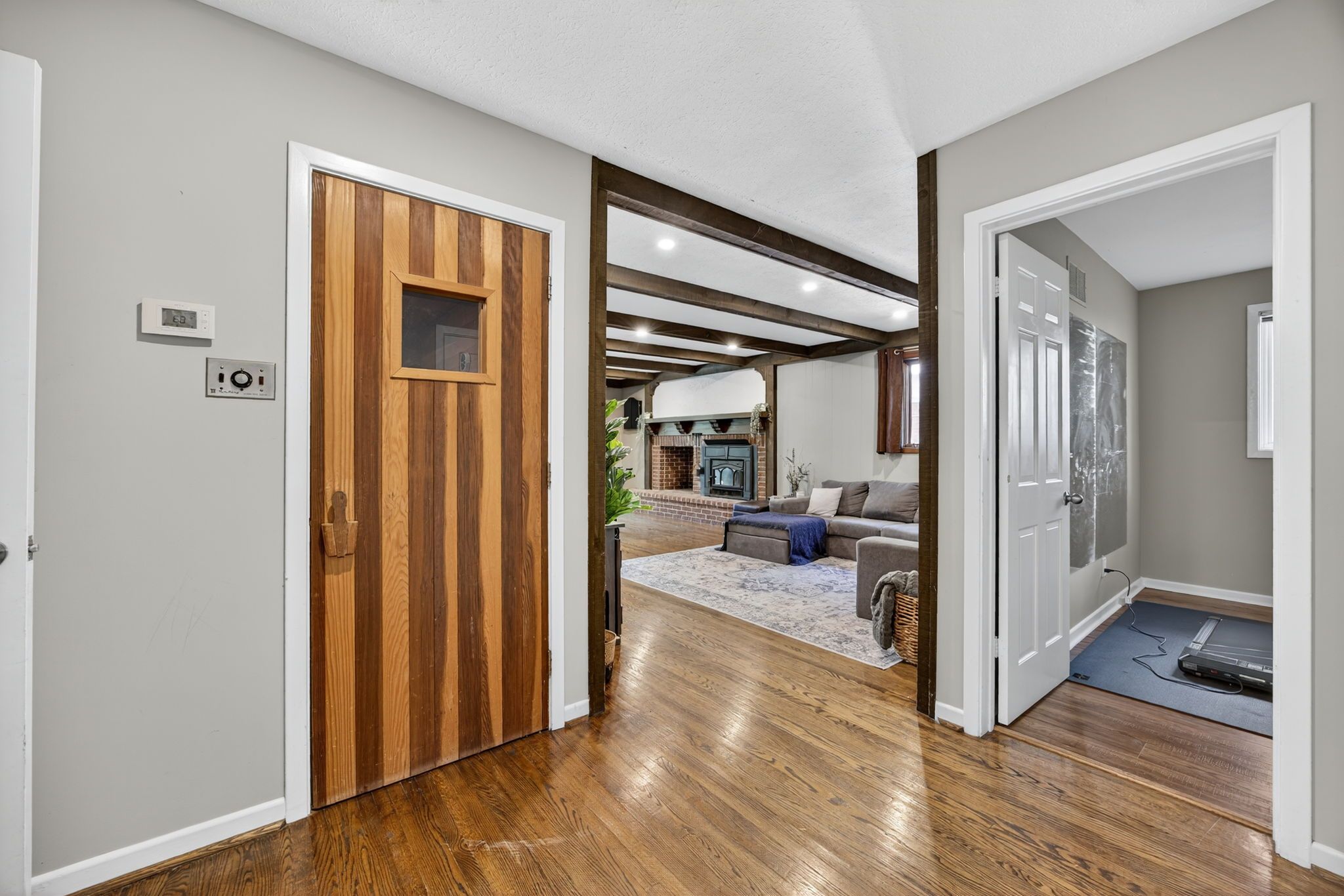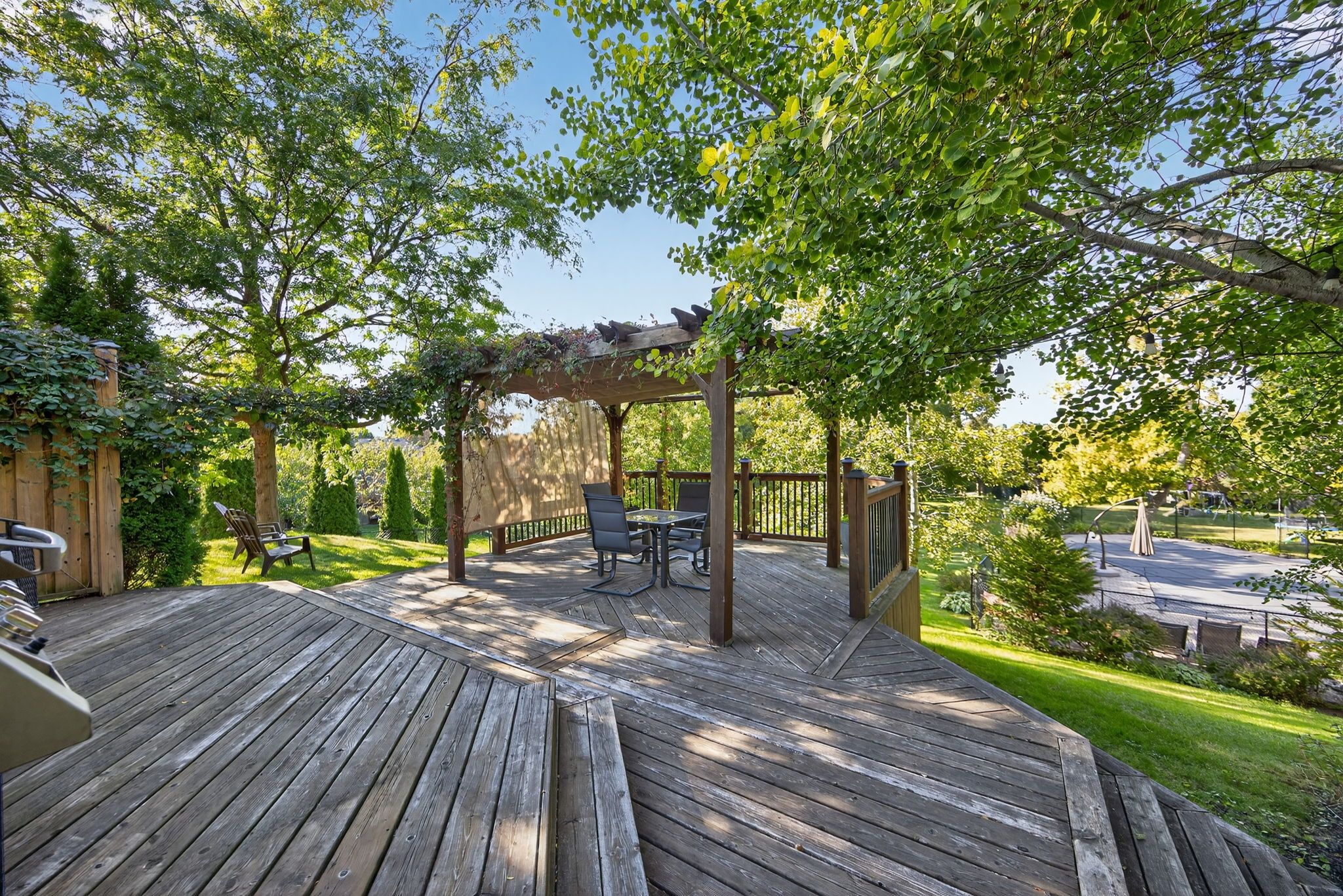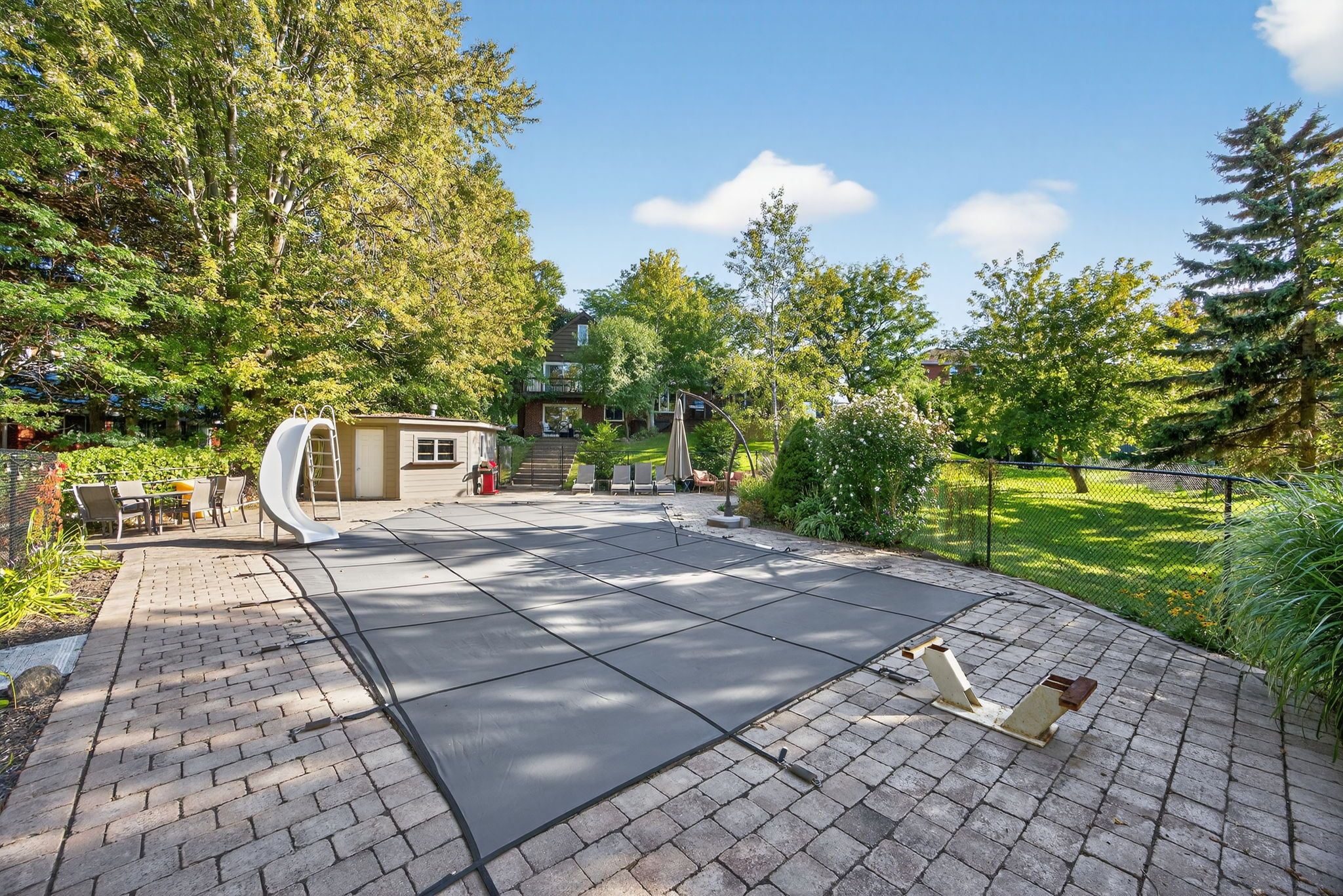 Welcome to one of bradford's most exceptional executive homes, set on a rare 99. 57 x 325 lot - 3/4 of an acre of privacy right in town. This elegant custom 4 + 1 bedroom, 4 level sidesplit offers the space families want with the convenience of being steps to schools & parks, featuring a long private drive, oversized double garage & parking for many vehicles make it perfect for gatherings & multigenerational living. Inside, a bright white eat-in kitchen opens to a spacious dining room with patio doors & a living room featuring oversized window & cozy wood burning fireplace. On the family room level, you'll find a 2nd fireplace alongside a flexible 5th bedroom (currently a gym) & private sauna. A finished basement with garage access, rec room, bathroom & generous storage adds more flexibility. With 5 separate access/entry points, the layout works beautifully for larger families or extended living/nanny/in-laws. Upstairs, the private primary bedroom is a sanctuary, with its own balcony & spa-like ensuite. 3 additional bedrooms are spacious & bright. Outdoors, the backyard feels like a private luxury resort in every season! From the dining room walk out to a pergola with ambient lighting - perfect for summer dinners & evening gatherings. Off the family room, a patio with firepit offers another place to gather. Steps below, the in-ground pool (new heater 2023) with slide & diving board is fully fenced (2023) with a pool house. Behind the garage, a natural toboggan hill adds winter fun, while much of the 325 foot lot stretches out in flat, open land complete with a playset & trampoline. Surrounded by mature trees & perennials, kept lush with inground sprinklers, the property is as functional as it is beautiful. Multiple levels of outdoor living create settings where milestones are celebrated, weekends are well spent & memories are made. Recent updates include new shingles (aug 2025) &furnace (approx. 2022). Truly unique & beautifully maintained - show with confidence