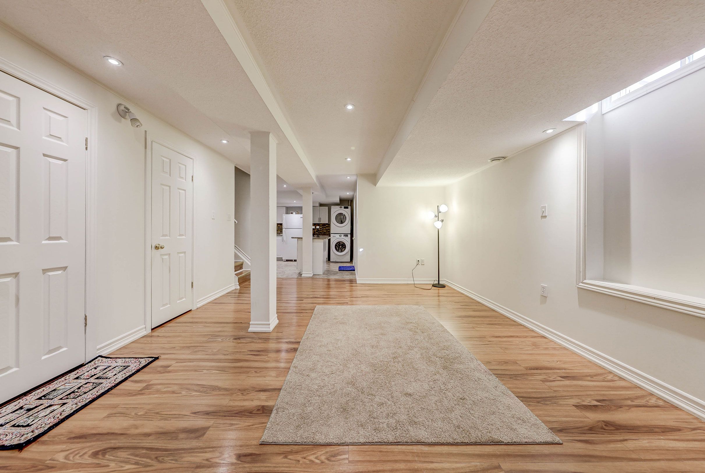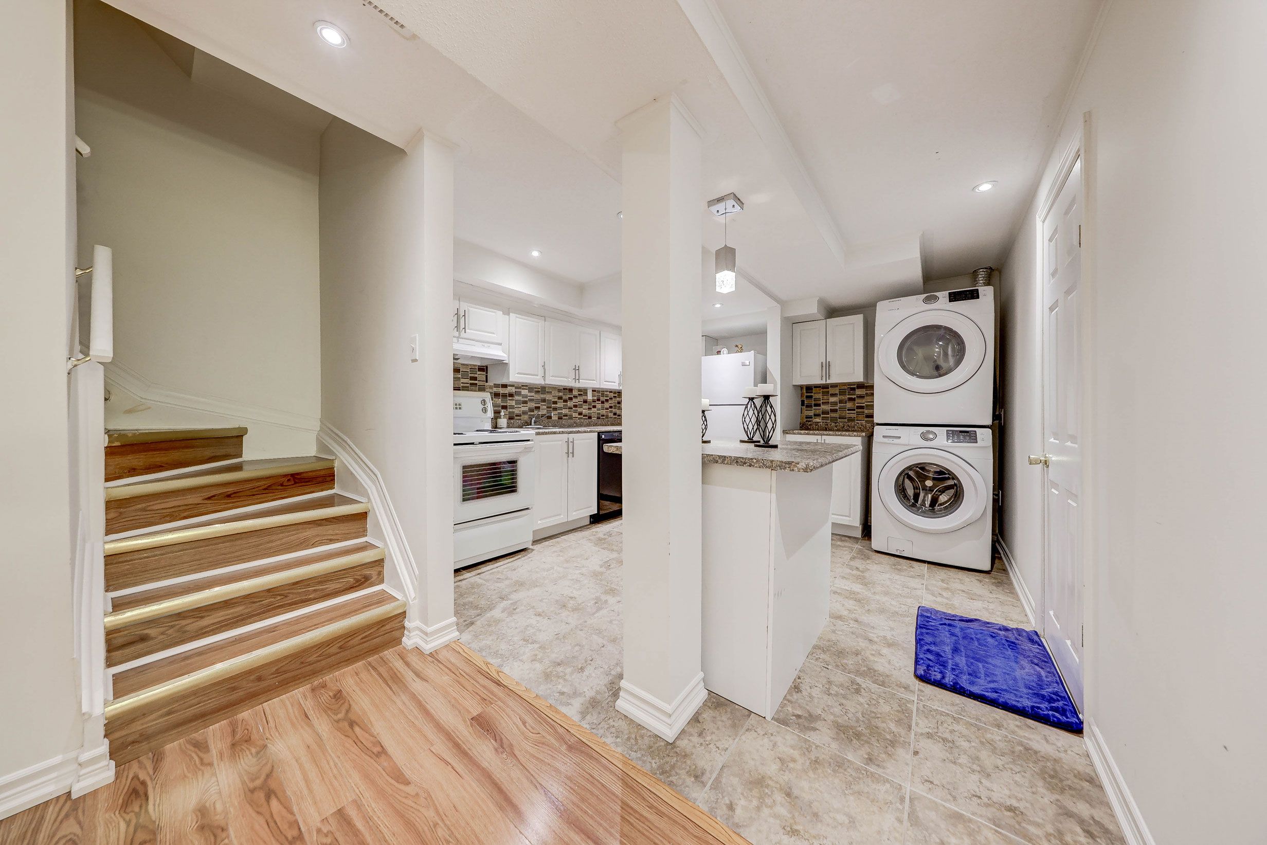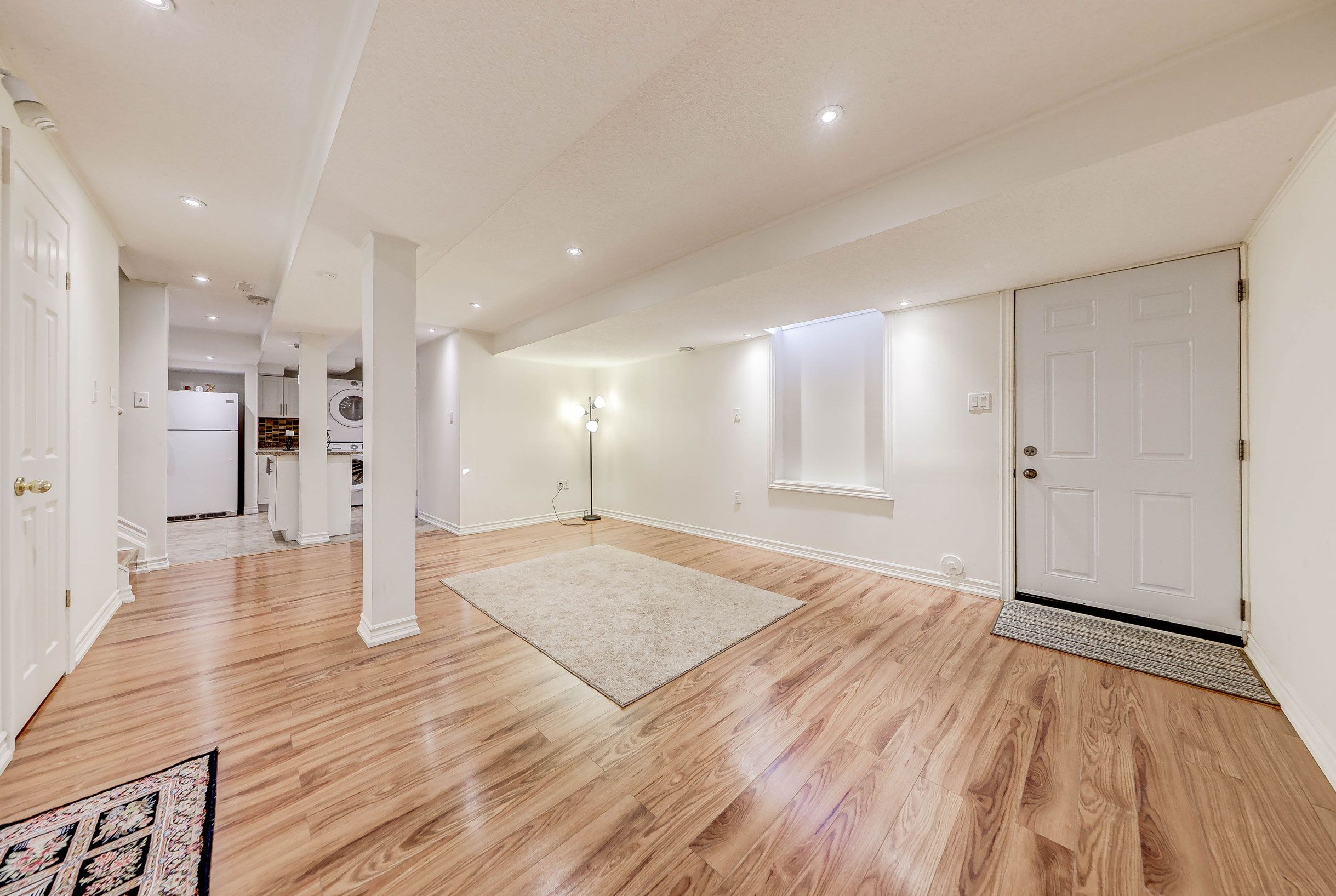 • Bright open-concept layout with full kitchen and private laundry.