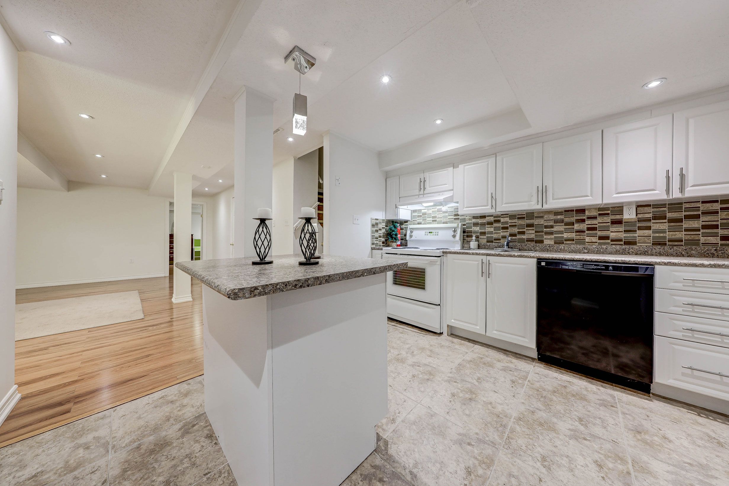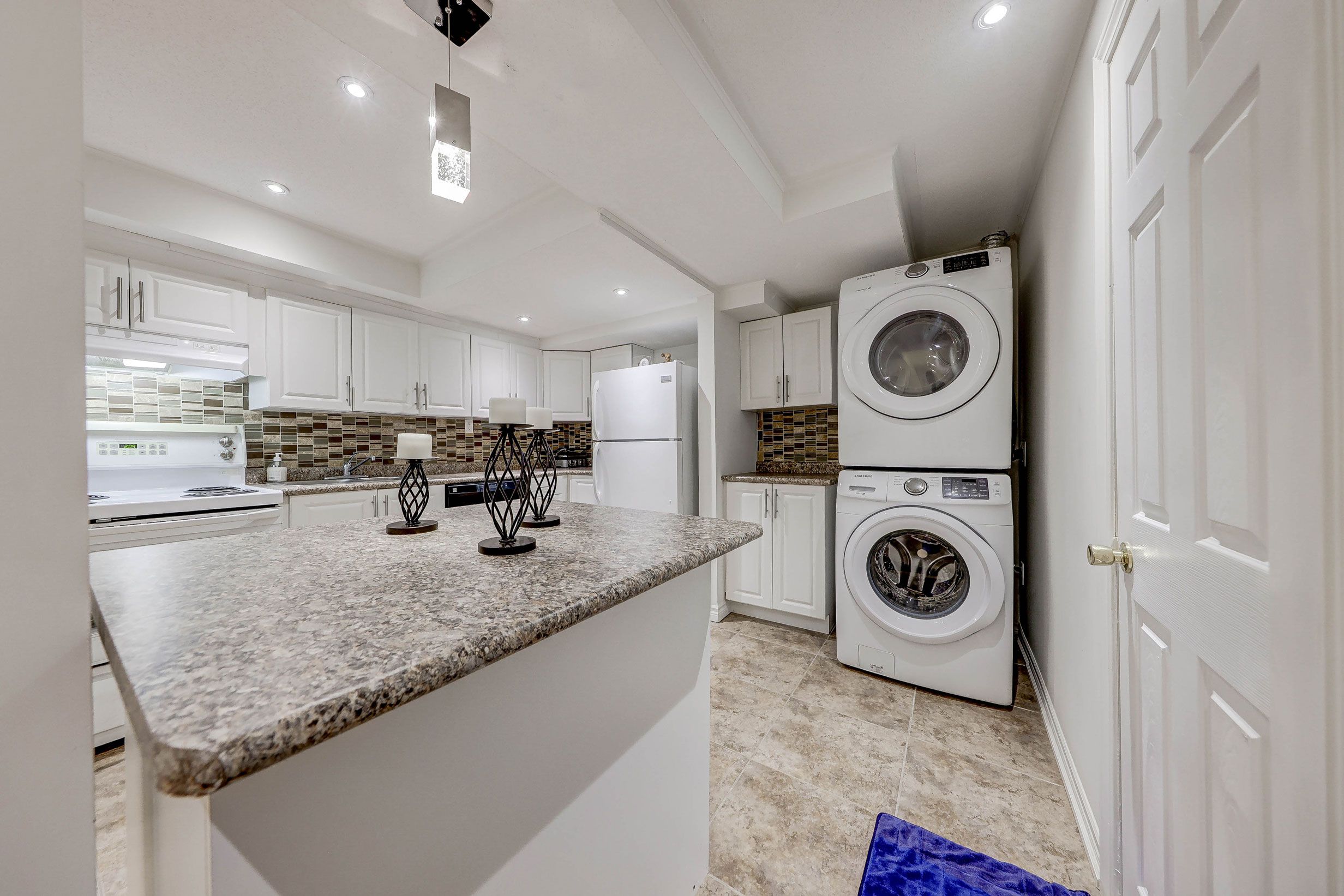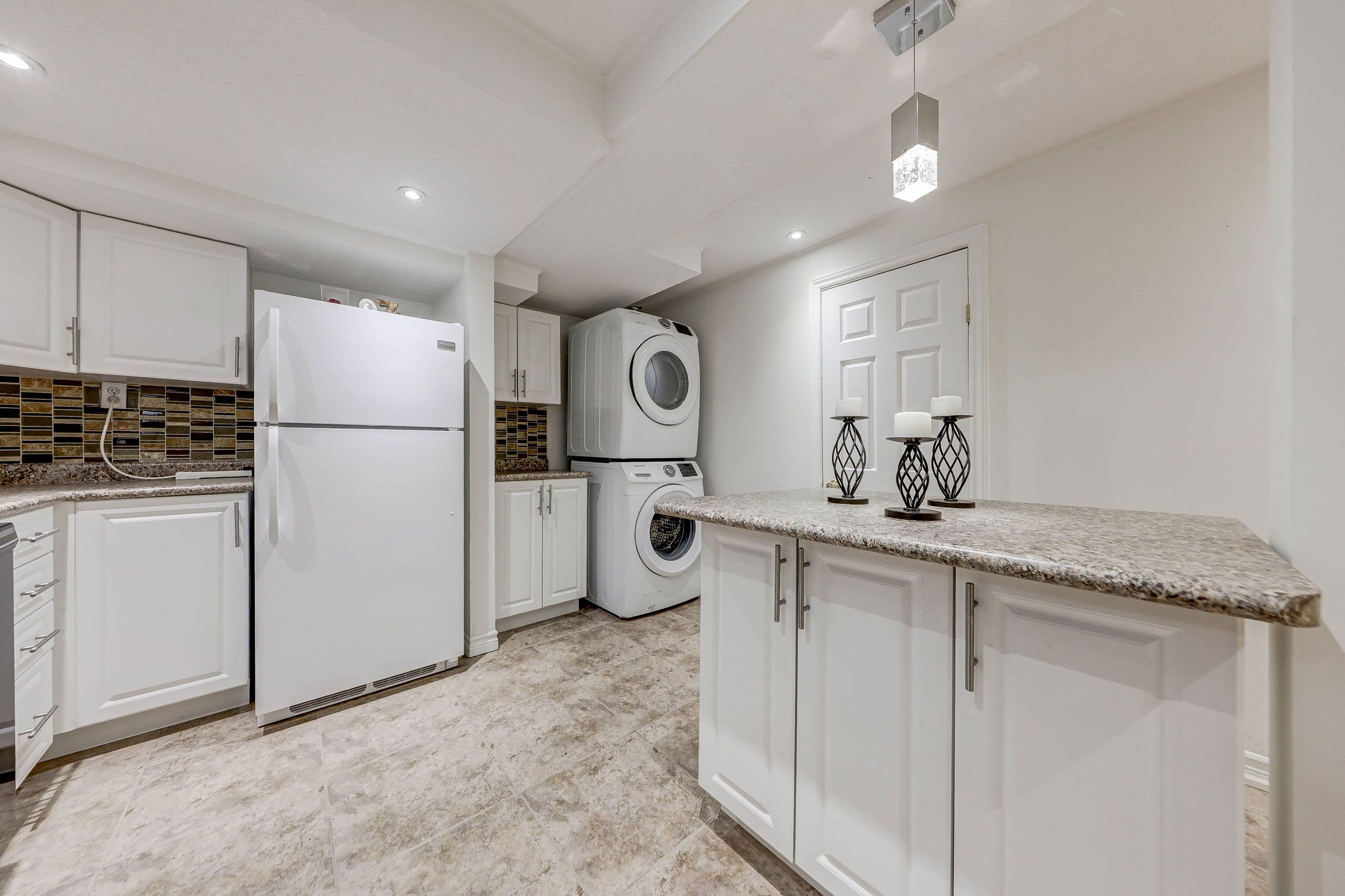 • Bright open-concept layout with full kitchen and private laundry.