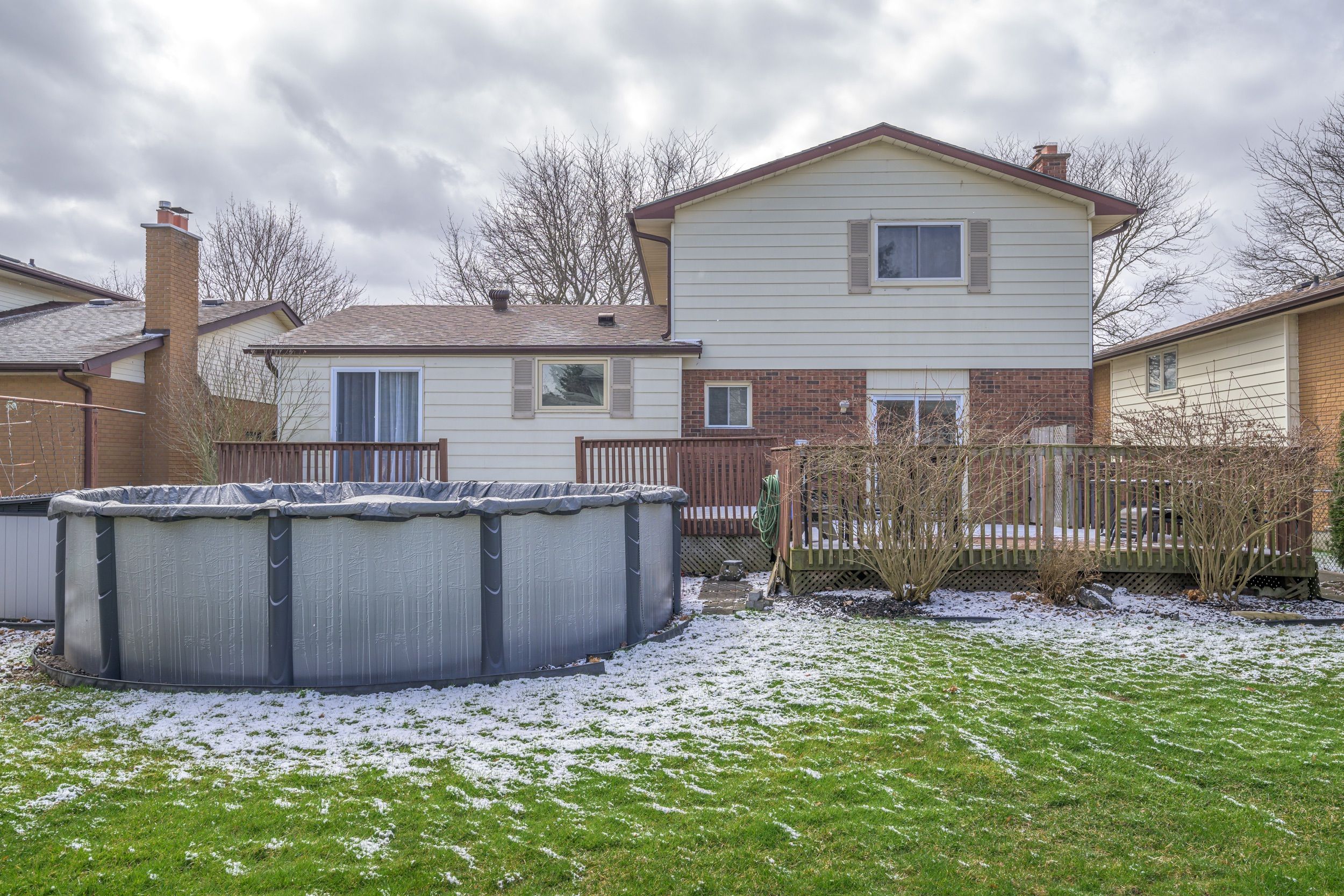 Offering the space, updates, and outdoor lifestyle today's buyers are searching for, this well-maintained and thoughtfully updated 3-bedroom split-level home delivers exceptional functionality and comfort. Featuring a walkout from the family room, a finished lower level, attached garage, and a generous backyard with decking and a newer resin pool (easy to remove), this home truly checks all the boxes. A contemporary front doorsystem welcomes you into a bright foyer that leads up to a sun-filled living room with a large picture window. The updated kitchen is designed for everyday living and entertaining, offering crisp white cabinetry, ample counter space, a breakfast bar, and an adjacent dining area ideal for gatherings. Upstairs, you'll find three comfortable bedrooms with generous closets, including hardwood flooring in the primary bedroom, and a renovated family bath complete with dual sinks and stylish tile work. The main level family room is warm and inviting, with patio doors that bring in natural light and provide direct access to the backyard. This level also offers a convenient powder room and inside access to the garage. A rare find for this style of home, the finished lower level adds valuable living space with a retro bar area, three-piece bathroom, and plenty of storage perfect for entertaining or family time. The backyard is made for summer enjoyment with an above-ground pool and safety fencing installed in 2023, expansive decking and a large lawn for kids or pets. Notable updates include some hardwood flooring, modern lighting, front door system, garage door and opener, furnace, shingles, eaves, and select windows-making this home truly move-in ready. Ideally located close to 400-series highways, hospitals, shopping, restaurants, golf courses, springbank park, and schools.