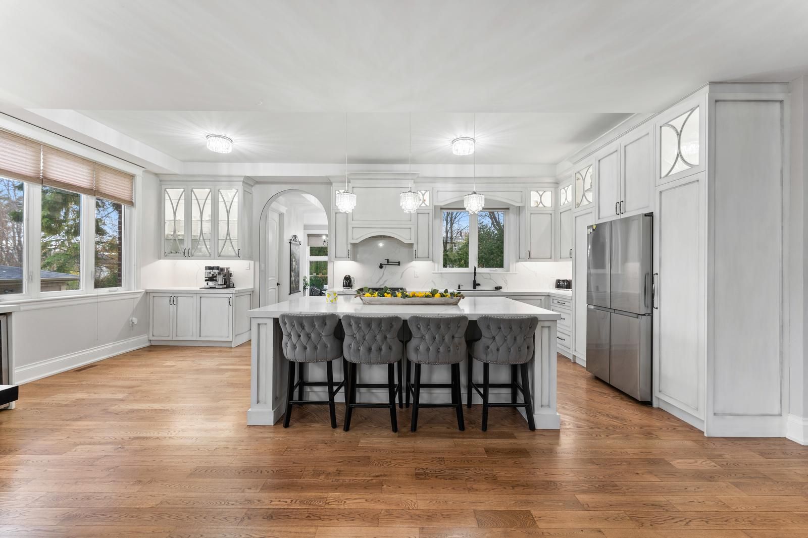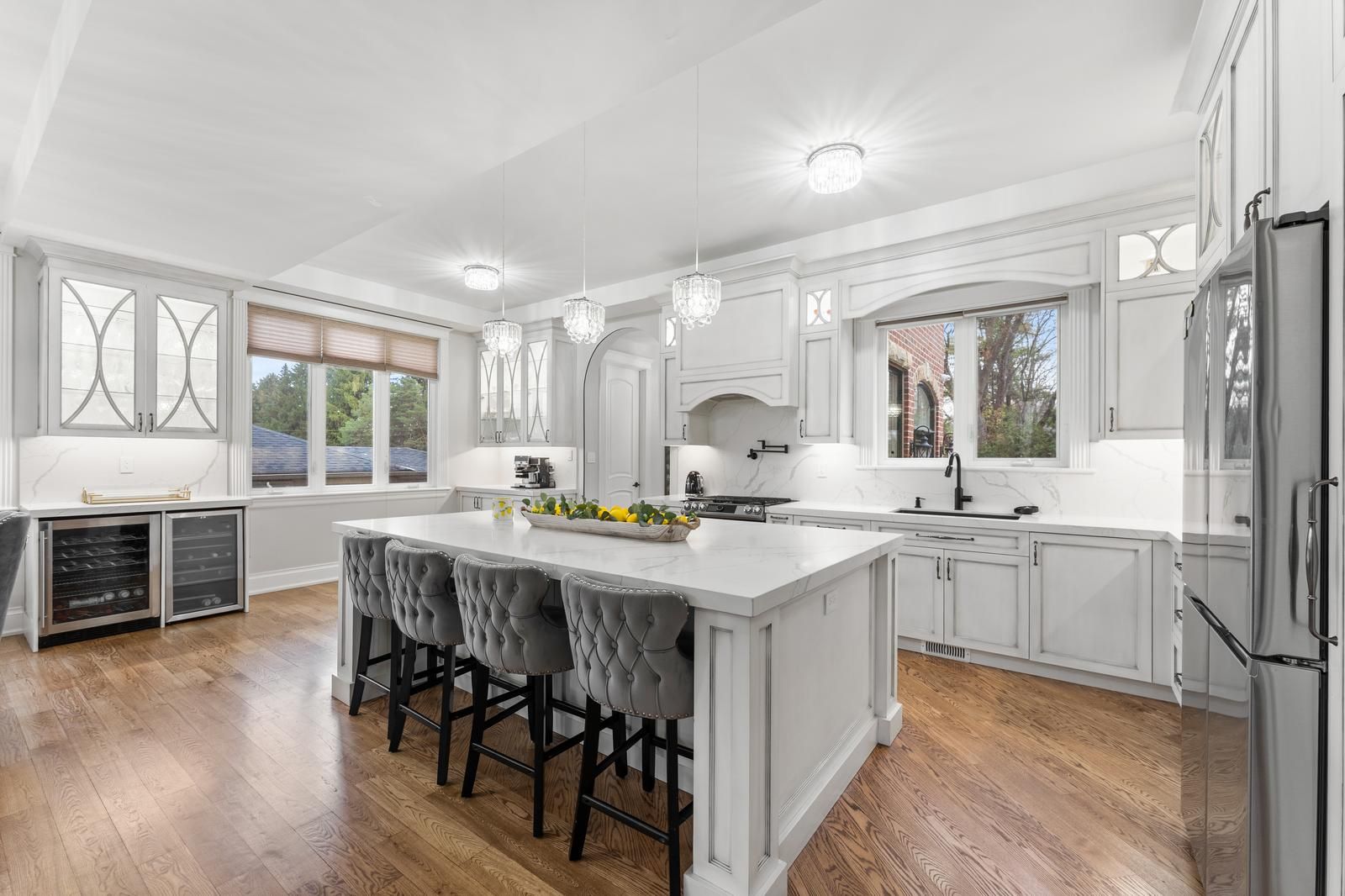 Prestigious king city residence on a premium 90-foot lot! Introducing 83 hambly avenue, an exceptional custom-built home located in one of king city's most sought after neighbourhoods. Set on an expansive 90 foot property and surrounded by distinguished multi million dollar residences, this home offers an unparalleled blend of luxury, sophistication, and lifestyle. Over $500,000 in recent upgrades elevate this property to a true showpiece. The newly completed chef's kitchen features top tier appliances, including two wine refrigerators, and is complemented by beautifully renovated bathrooms throughout. The resort inspired backyard showcases a concrete saltwater pool with a cascading waterfall and integrated gas fire feature, along with a private, courtyard style outdoor living area and a fully outfitted outdoor kitchen-perfect for refined entertaining. Designed with hosting in mind, the upper level includes a grand recreation room complete with a solid wood bar accommodating more than 20 guests, as well as a ventilated cedar cigar lounge overlooking the pool. High end finishes are evident throughout the home, including custom millwork, premium stainless steel appliances, and solid wood flooring. The luxurious primary suite boasts a vaulted ceiling, an expansive spa like ensuite with a large glass enclosed shower, and dual walk in closets. The fully finished lower level adds further versatility with a comfortable living area and two additional bedrooms, along with a spacious, well appointed laundry room with built-in cabinetry. Car enthusiasts will appreciate the four car drive through garage with soaring 20 foot ceilings, offering abundant potential for lift installations. Ideally situated, the property is within walking distance of local dining, parks, and the go station, and is only minutes away from some of the region's finest public and private schools. A remarkable offering in the heart of king city luxury living at its finest.