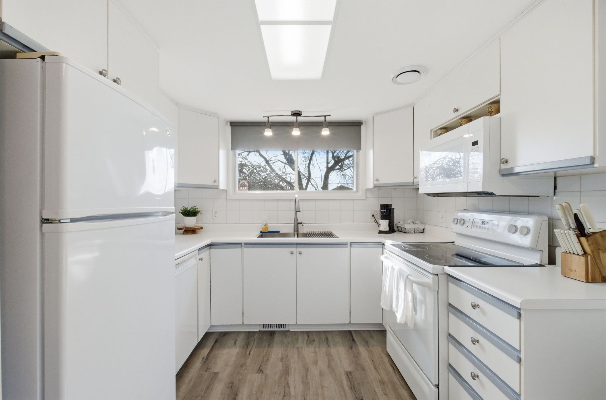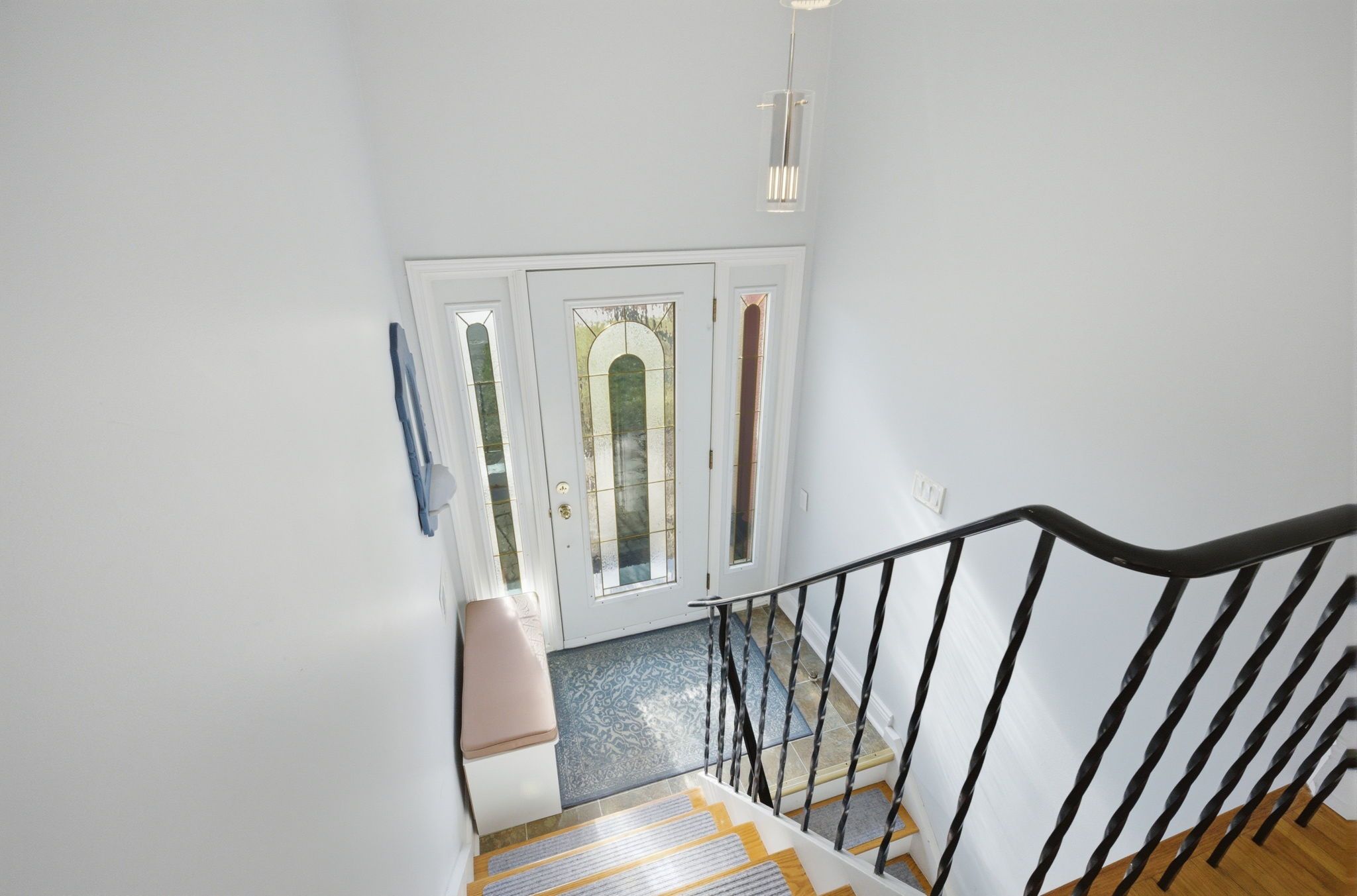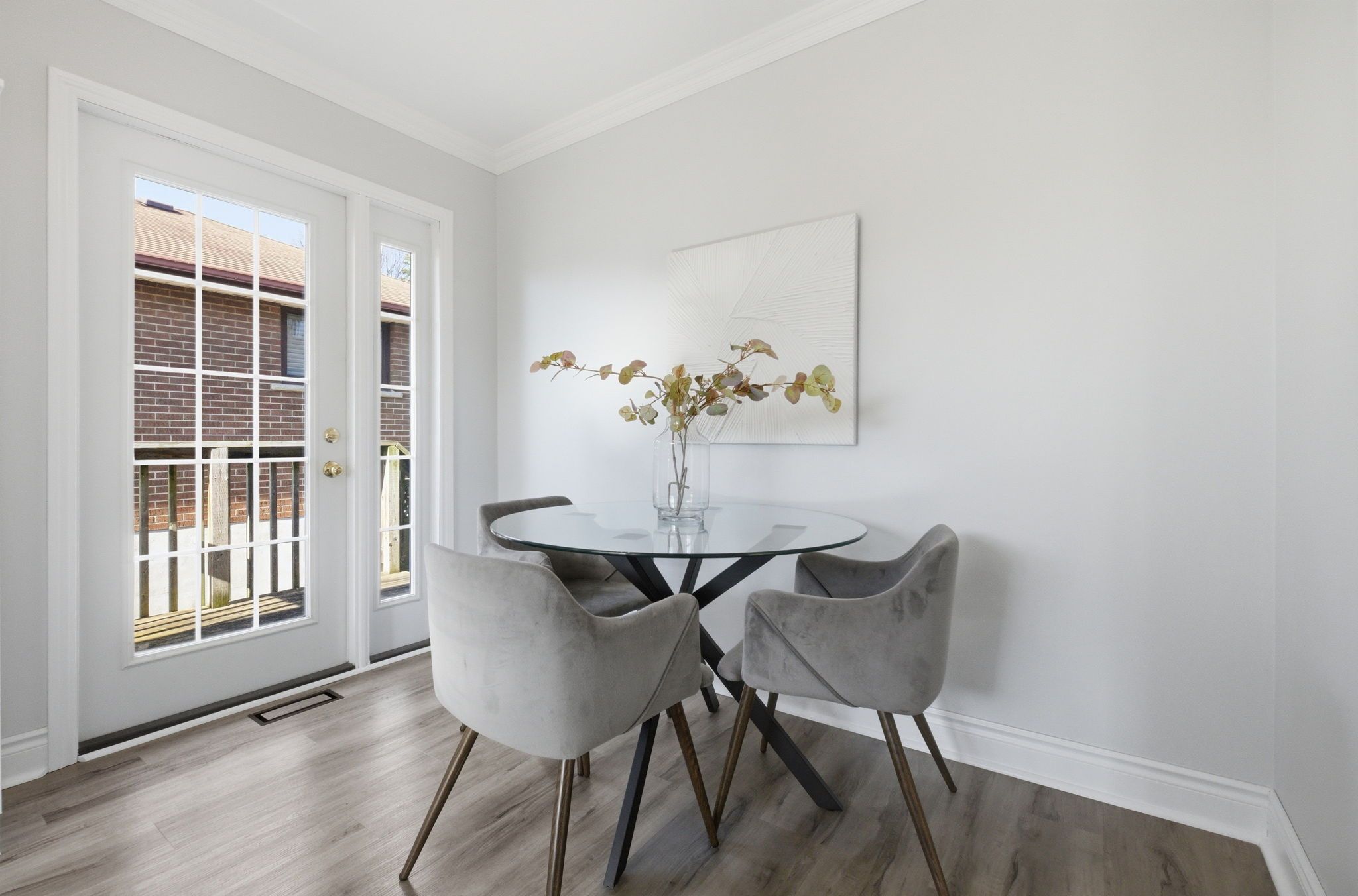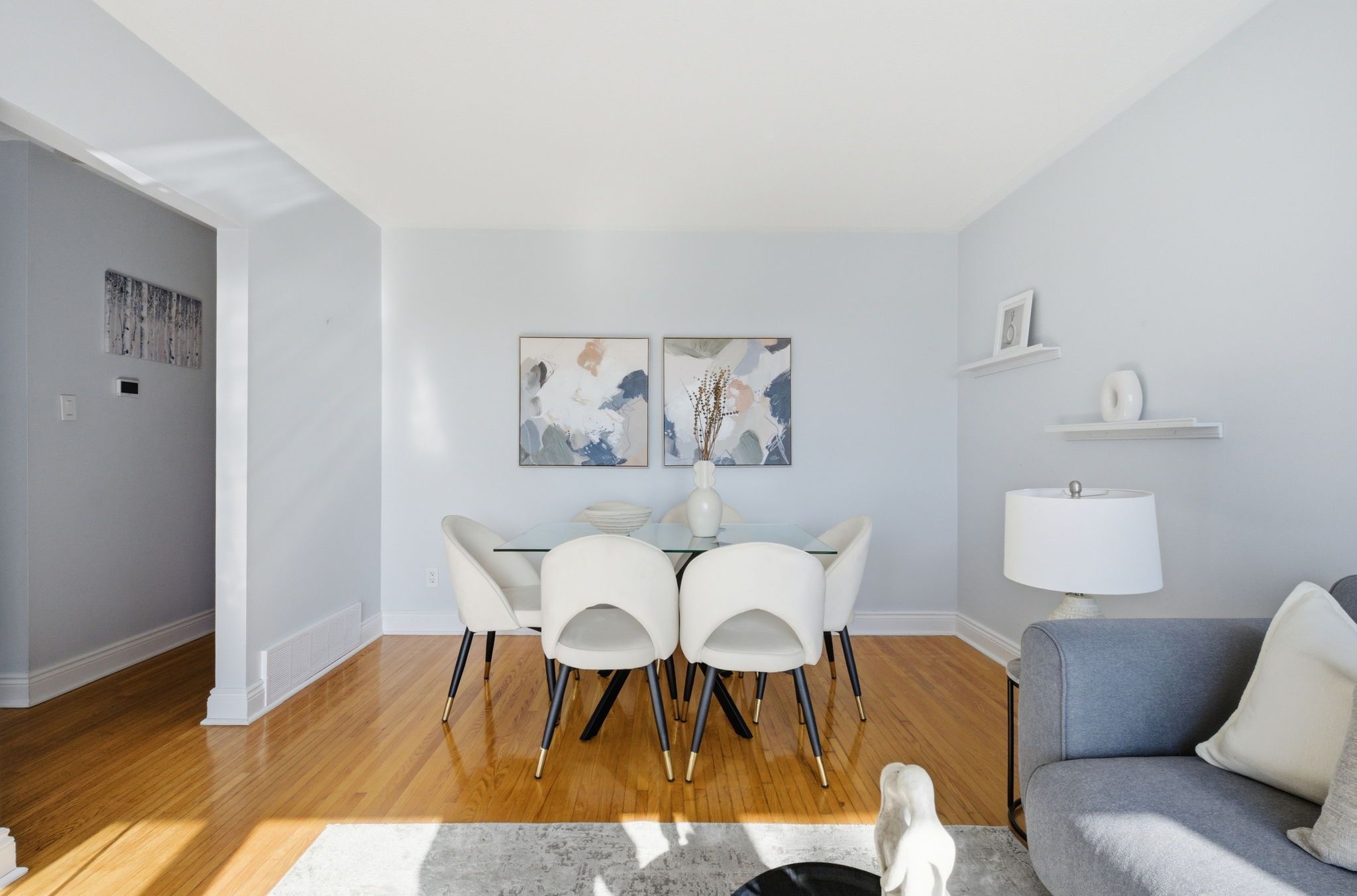 • Bright interior with large windows and hardwood flooring throughout living areas.