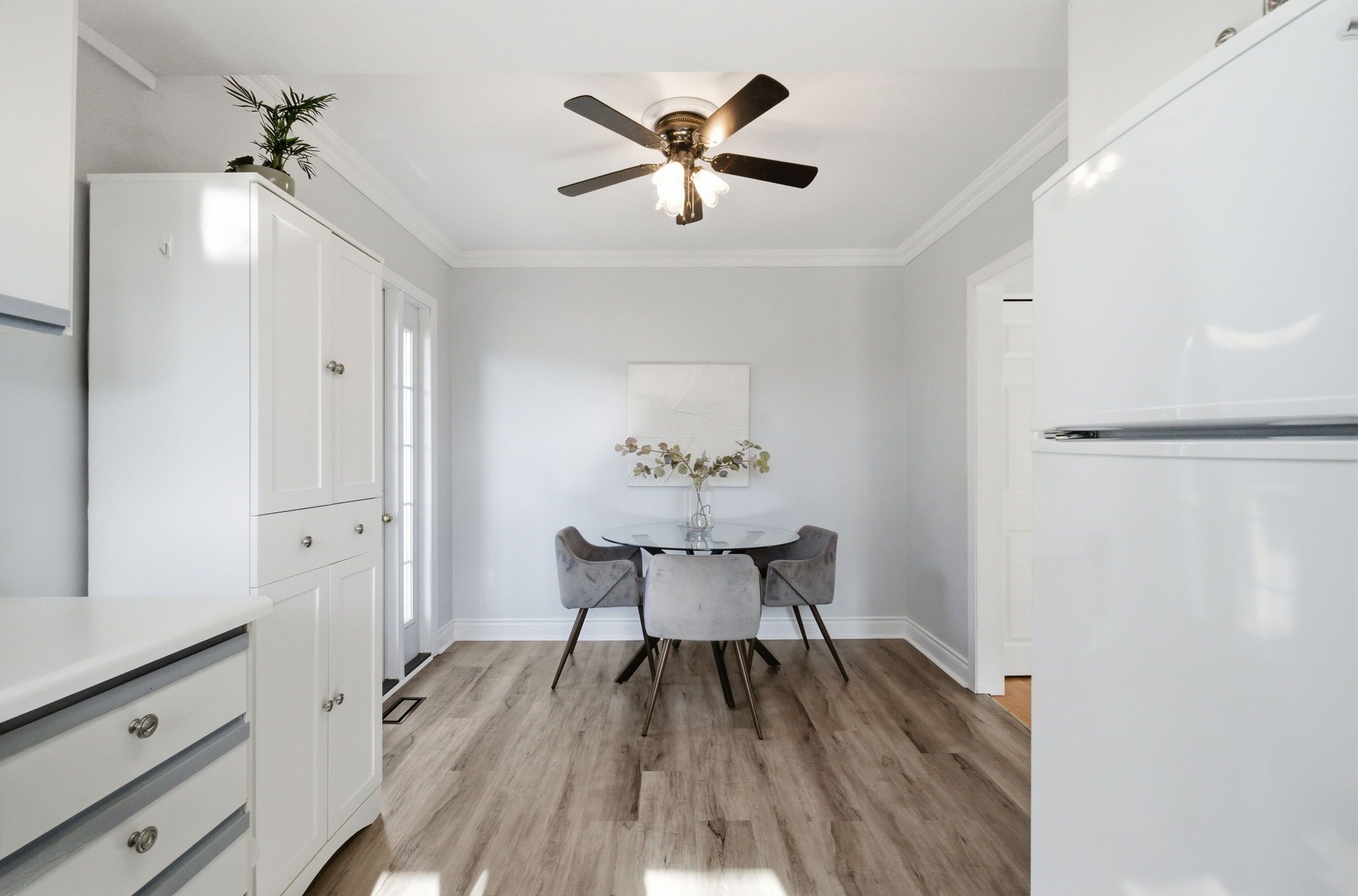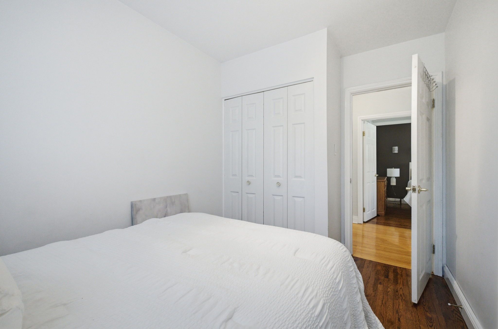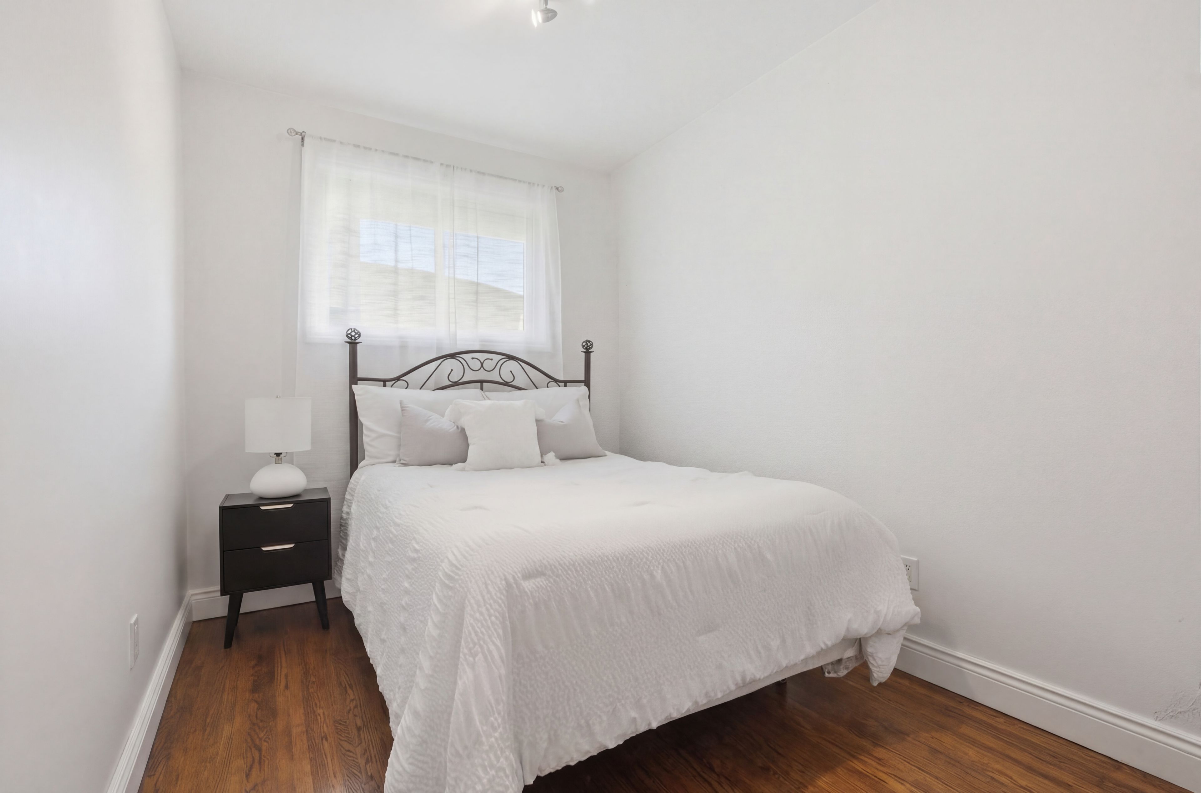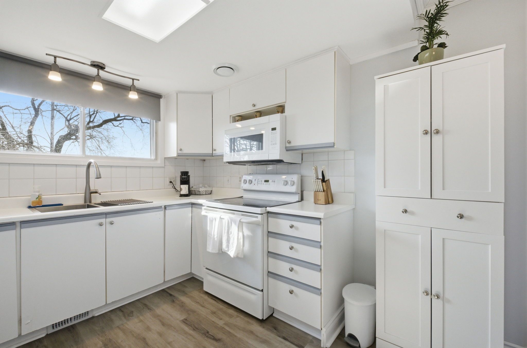 • Bright interior with large windows and hardwood flooring throughout living areas.