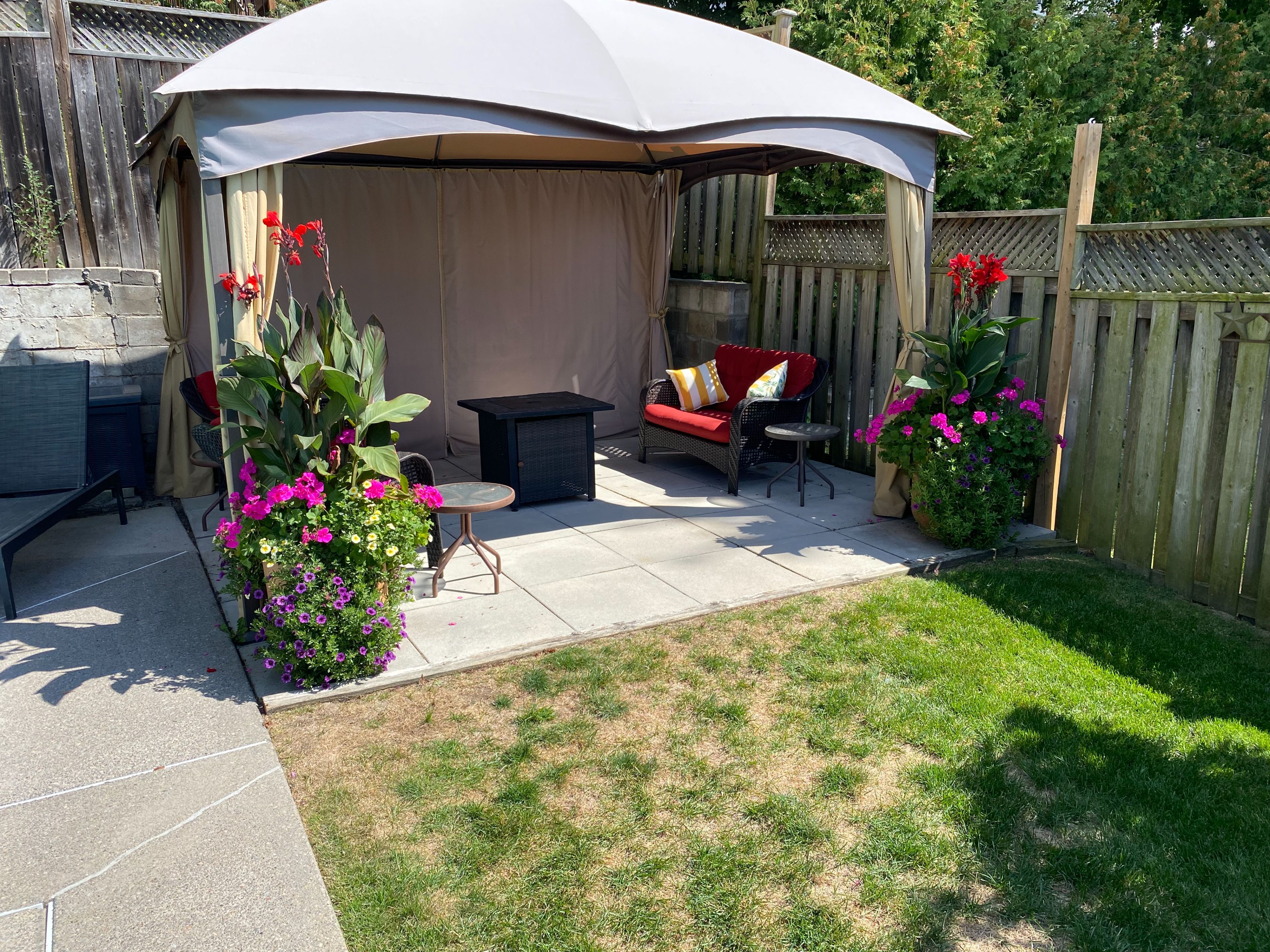 • Fully fenced backyard features a pool, patio, and gazebo for summer fun.