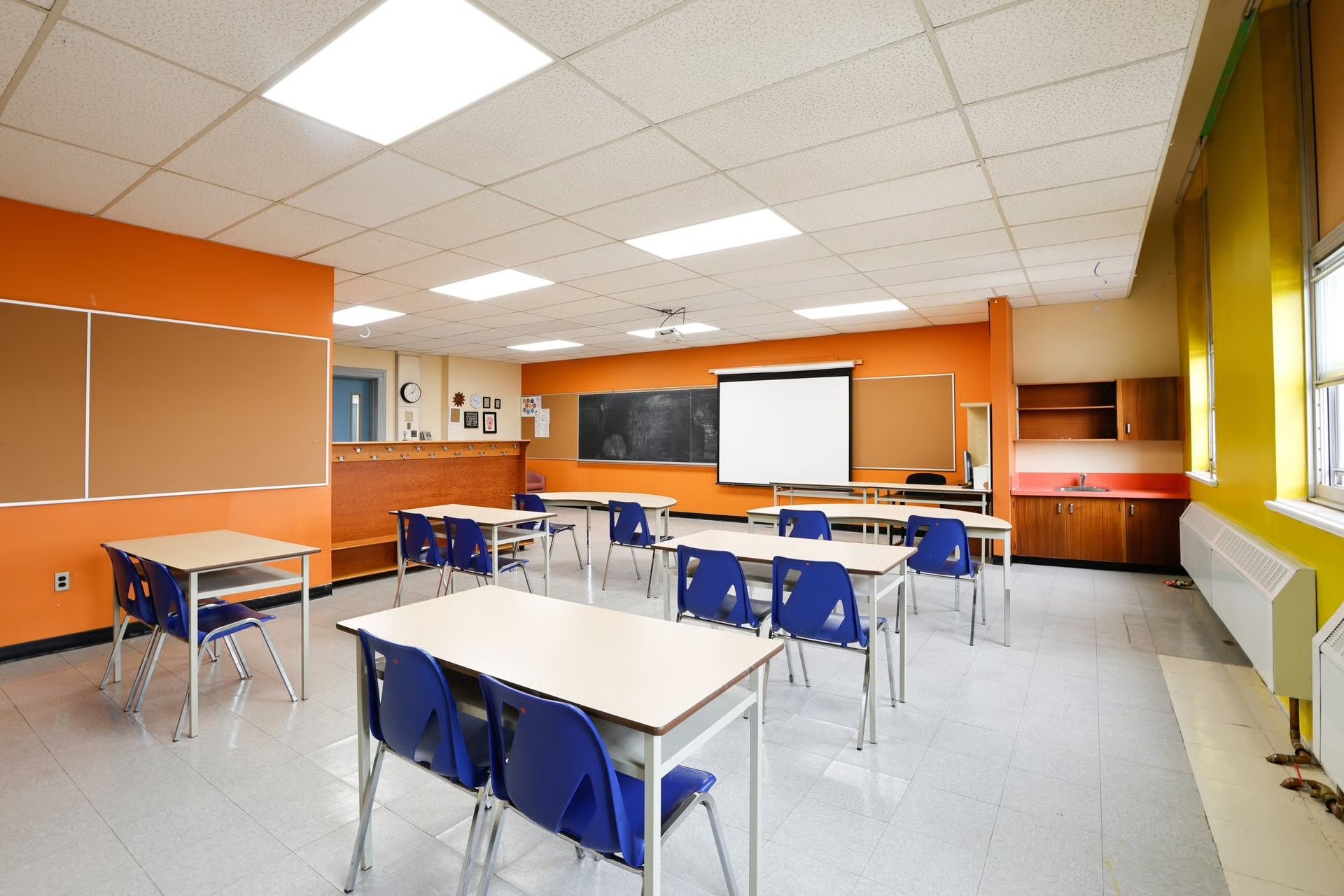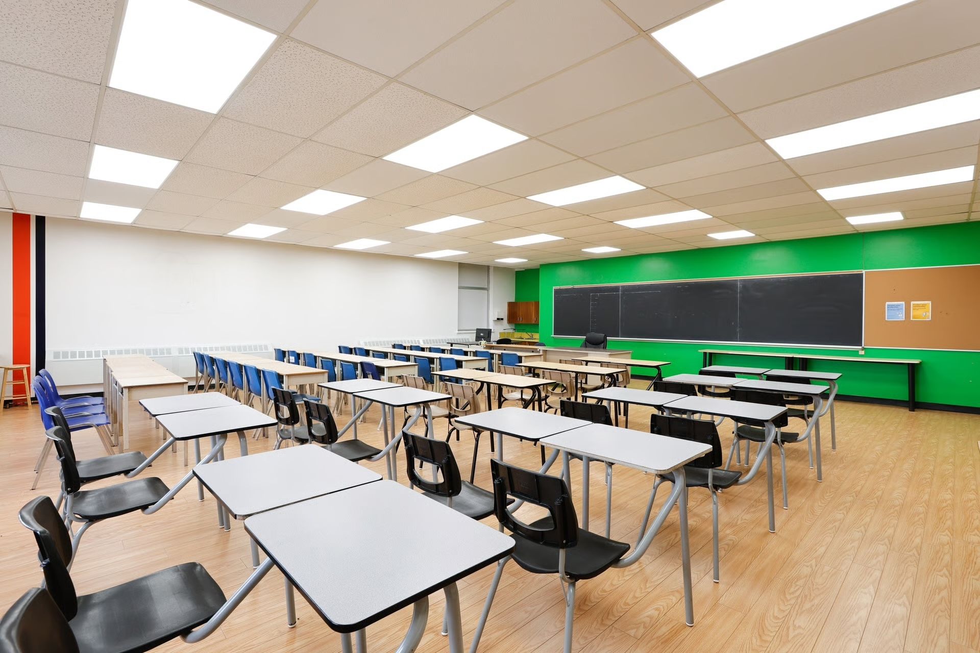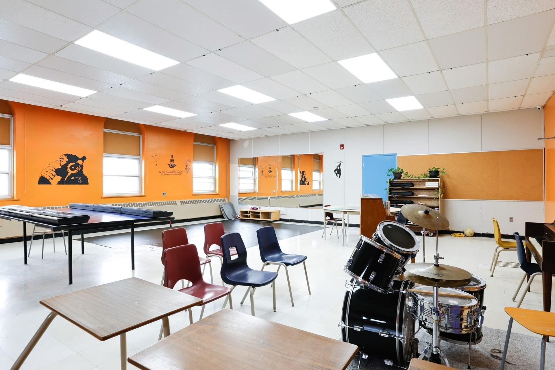 • Includes a cafeteria and 10 large classrooms for diverse use.