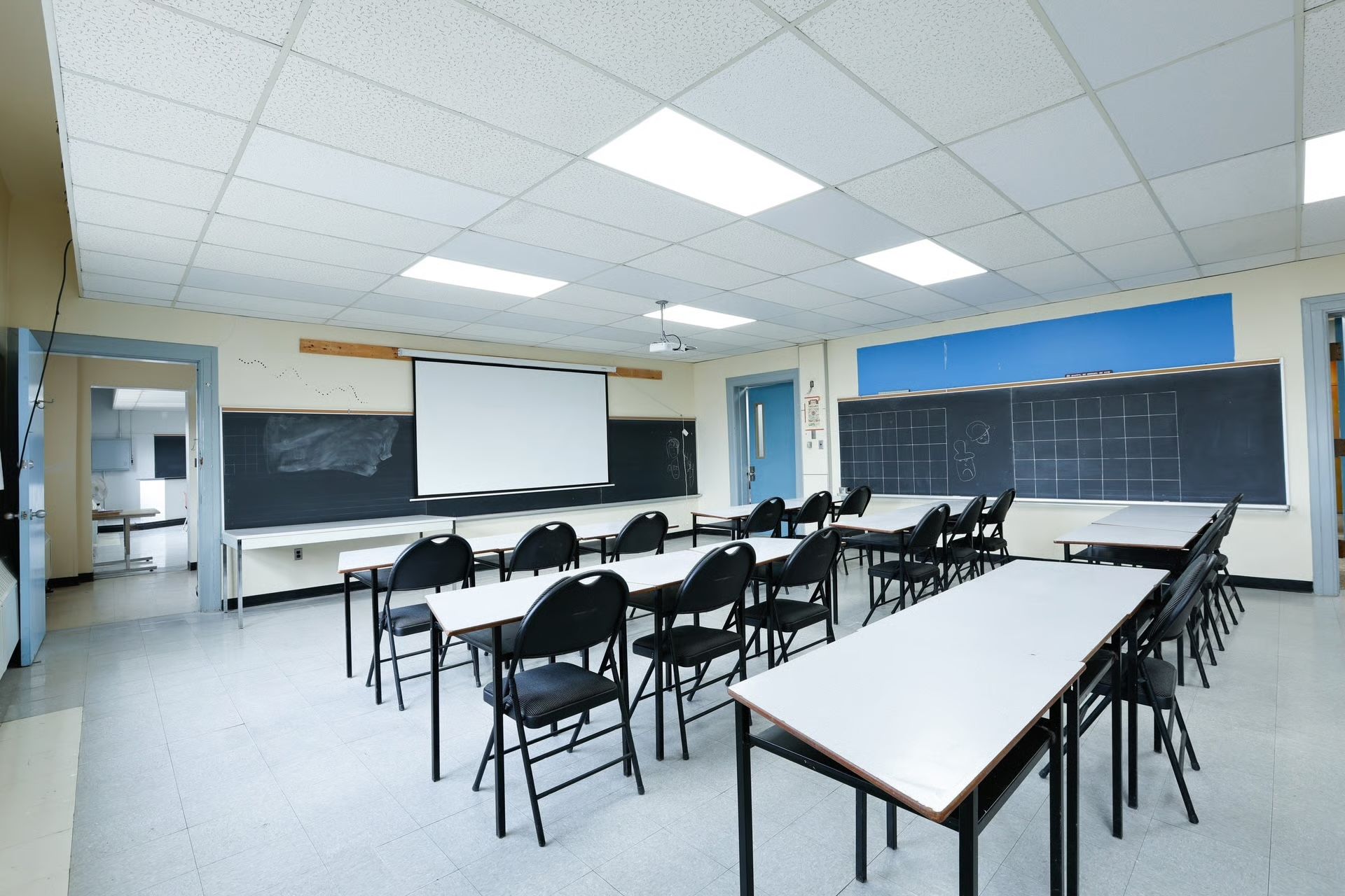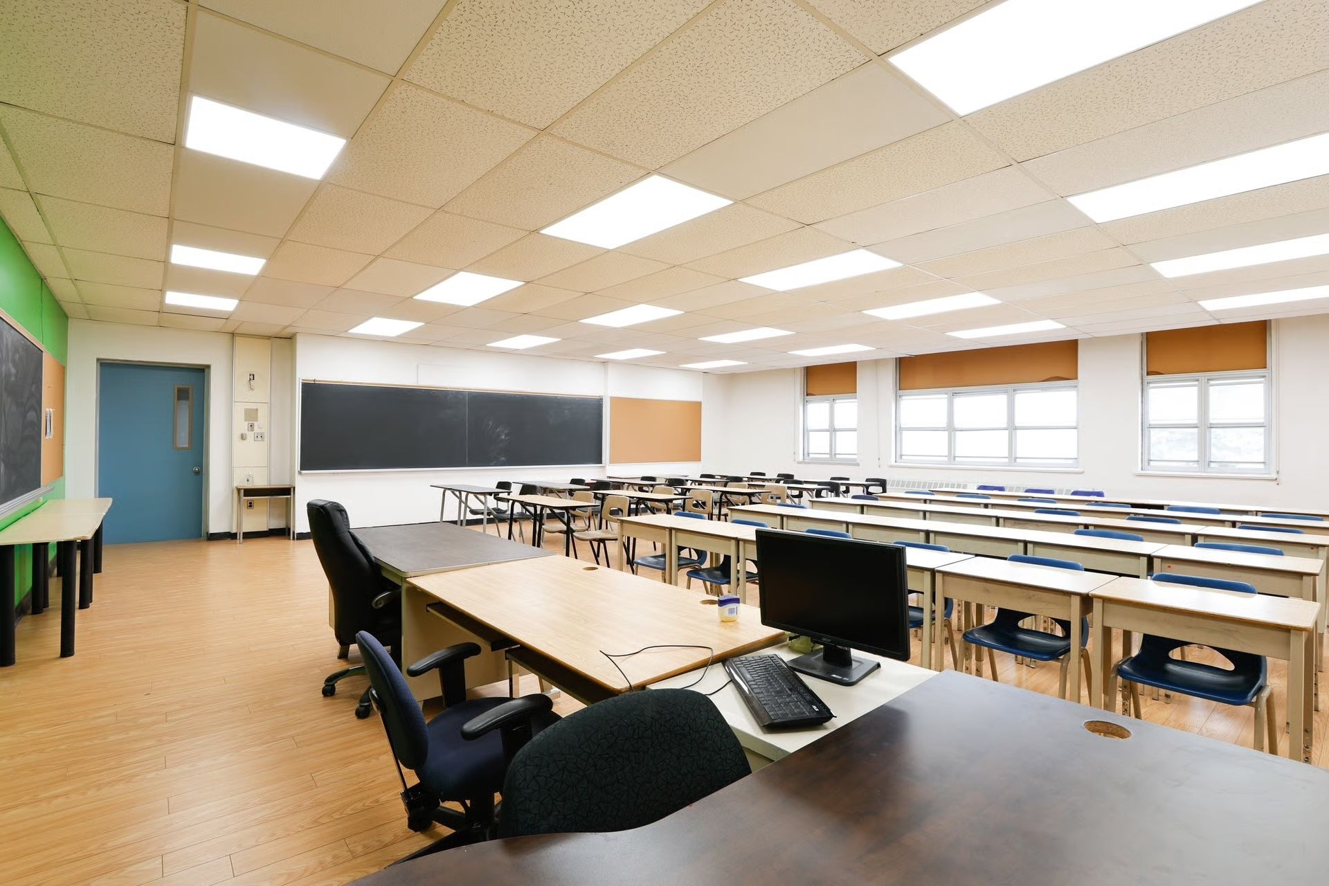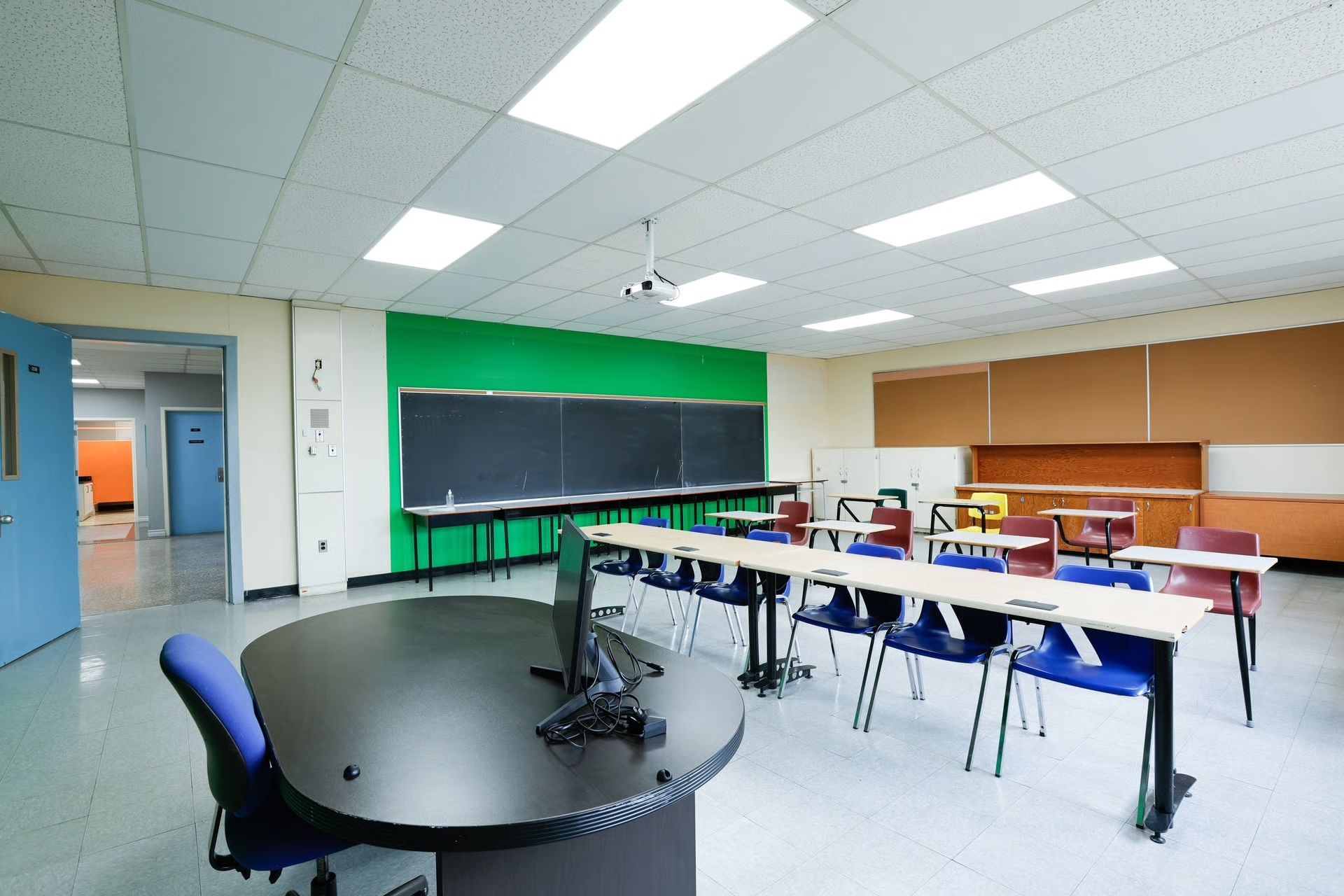 • Includes a cafeteria and 10 large classrooms for diverse use.