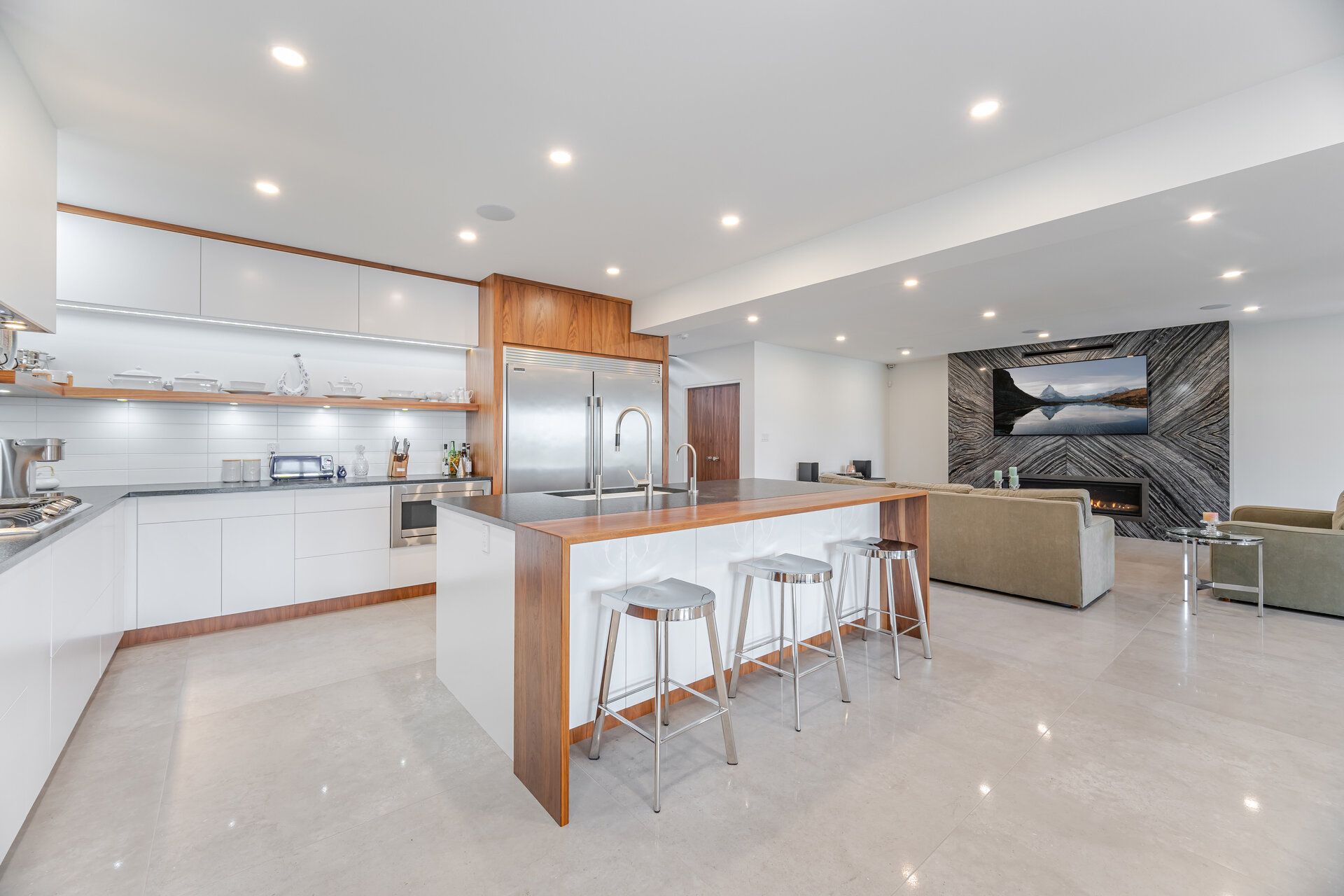 Luxury living on the bay of quinte begins at 83 navigation drive. An extraordinary custom-built residence in the prestigious watermark on the bay community. Set on approximately one acre with breathtaking waterfront views, this architectural masterpiece offers over 7,700 sq ft finished and refined living space and an oversized 3-car garage. Built within the last five years, this home blends high-end design with advanced home automation for effortless modern living. Inside, every detail has been thoughtfully curated from soaring 10 foot ceilings and european porcelain 48" tile to wide-open living areas anchored by a walnut and glass staircase. The opulent chef's kitchen is equipped with premium thermador appliances, including stainless steel side-by-side fridge, freezer, and wine cooler, including an induction cooktop, built-in coffee machine, double wall ovens, and more perfect for entertaining or everyday luxury. Enjoy seamless free flowing open concept living through the 22 foot ceiling height of the great room, dining area, kitchen and breakfast area all bathed in natural light with panoramic water views. The primary suite is a private retreat with a spa-inspired ensuite, heated floors, and a custom walk-in closet. Upstairs, a media lounge and additional bedrooms offer space for family and guests, while the finished walk-out lower level adds flexible living. Exquisite chandeliers, light fixtures and helifire 360 architectural fire features. Step outside to a covered stone terrace and swimming pool all overlooking the serene bay of quinte. This property is sophisticated, spacious and one-of-a-kind.