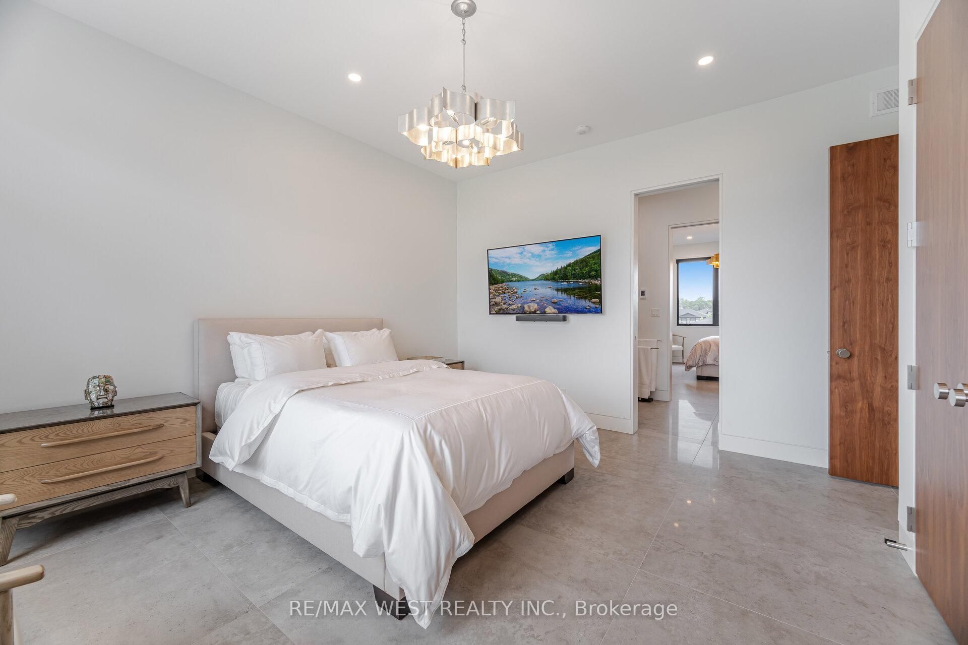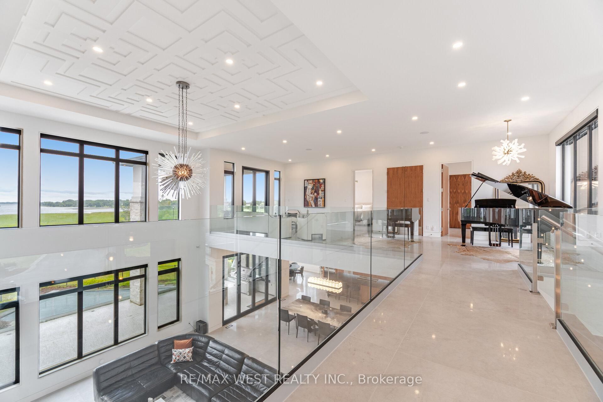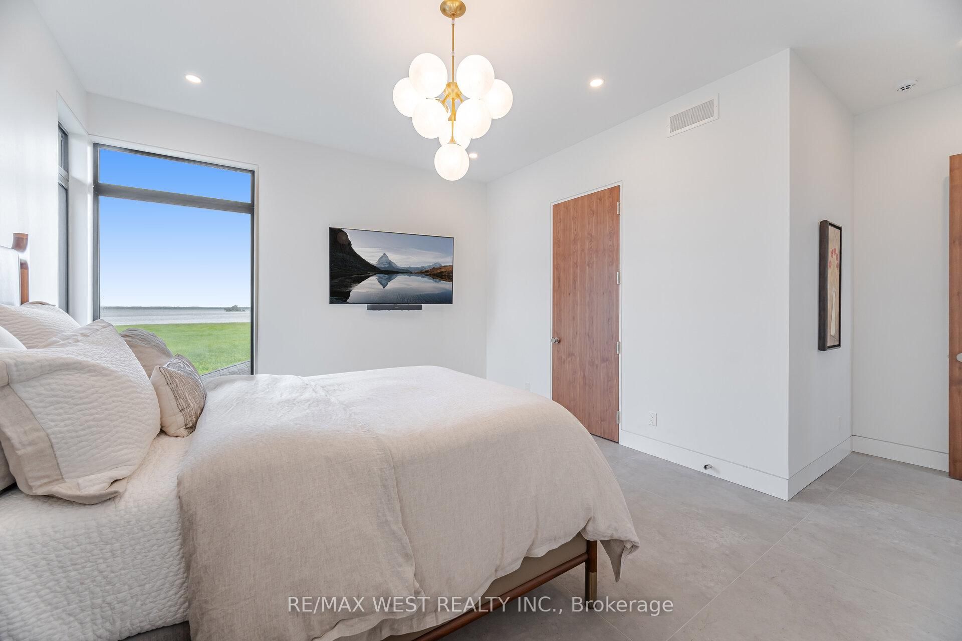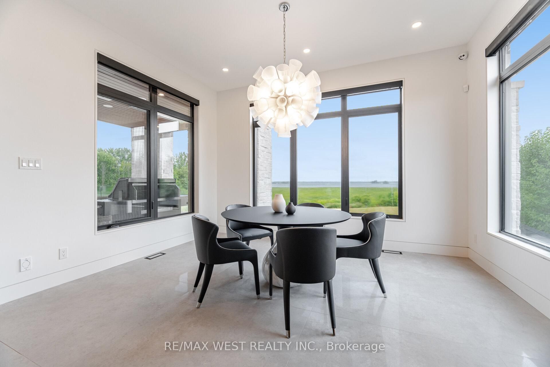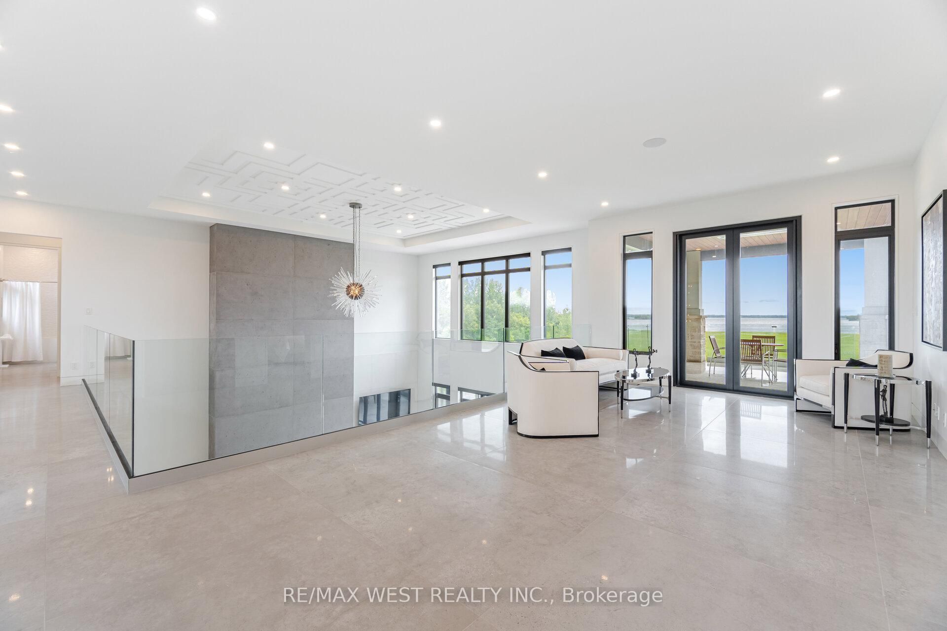 Luxury living on the bay of quinte begins at 83 navigation drive. An extraordinary custom-built residence in the prestigious watermark on the bay community. Set on approximately one acre with breathtaking waterfront views, this architectural masterpiece offers over 7,700 sq ft finished and refined living space and an oversized 3-car garage. Built within the last five years, this home blends high-end design with advanced home automation for effortless modern living. Inside, every detail has been thoughtfully curated from soaring 10 foot ceilings and european porcelain 48" tile to wide-open living areas anchored by a walnut and glass staircase. The opulent chef's kitchen is equipped with premium thermador appliances, including stainless steel side-by-side fridge, freezer, and wine cooler, including an induction cooktop, built-in coffee machine, double wall ovens, and more perfect for entertaining or everyday luxury. Enjoy seamless free flowing open concept living through the 22 foot ceiling height of the great room, dining area, kitchen and breakfast area all bathed in natural light with panoramic water views. The primary suite is a private retreat with a spa-inspired ensuite, heated floors, and a custom walk-in closet. Upstairs, a media lounge and additional bedrooms offer space for family and guests, while the finished walk-out lower level adds flexible living. Exquisite chandeliers, light fixtures and helifire 360 architectural fire features. Step outside to a covered stone terrace and swimming pool all overlooking the serene bay of quinte. This property is sophisticated, spacious and one-of-a-kind.