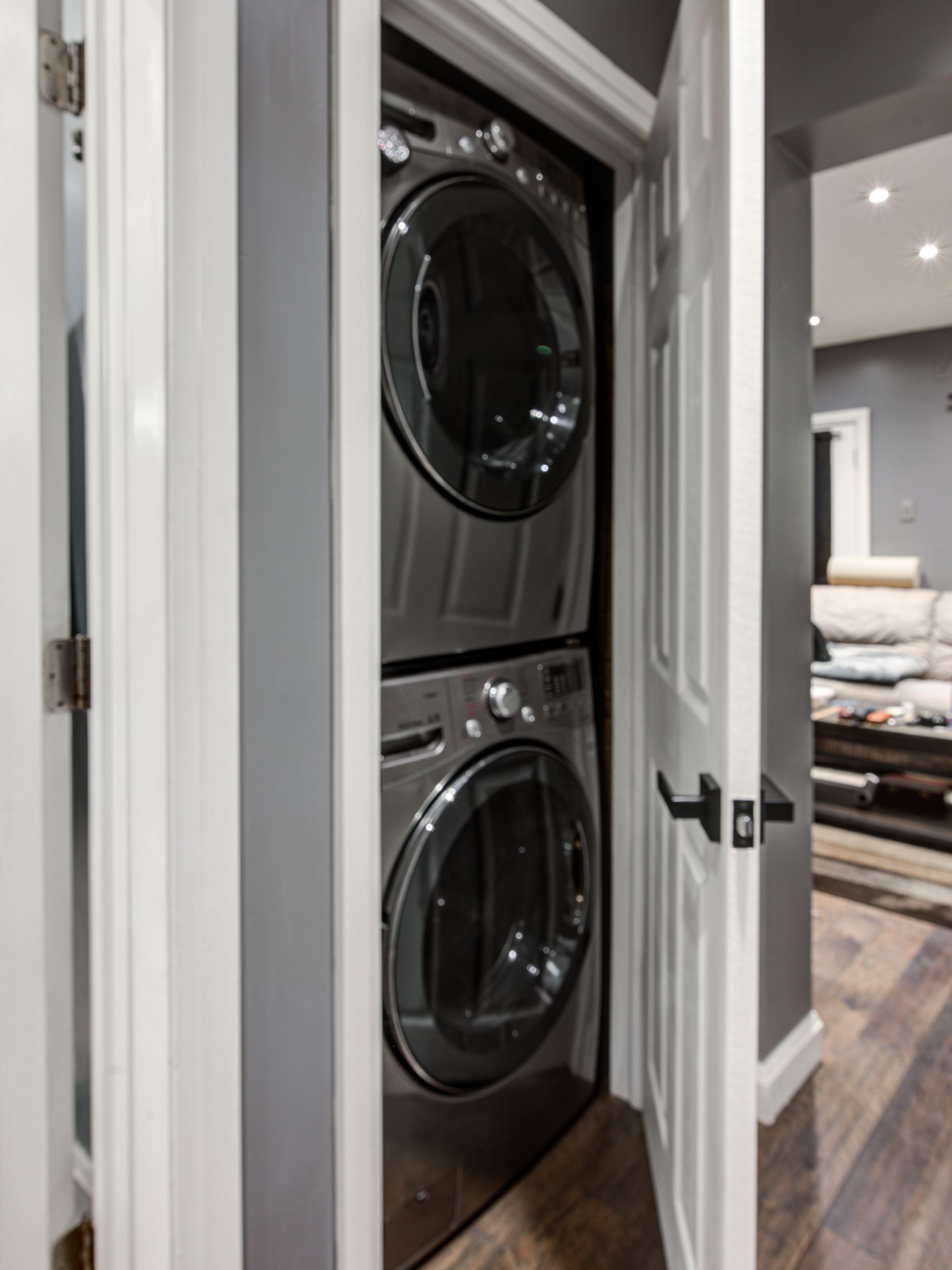 • Oversized heated two-car garage perfect for storage or tenant use.