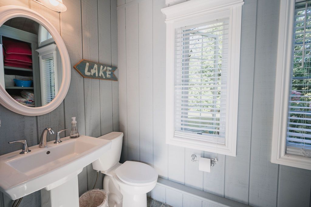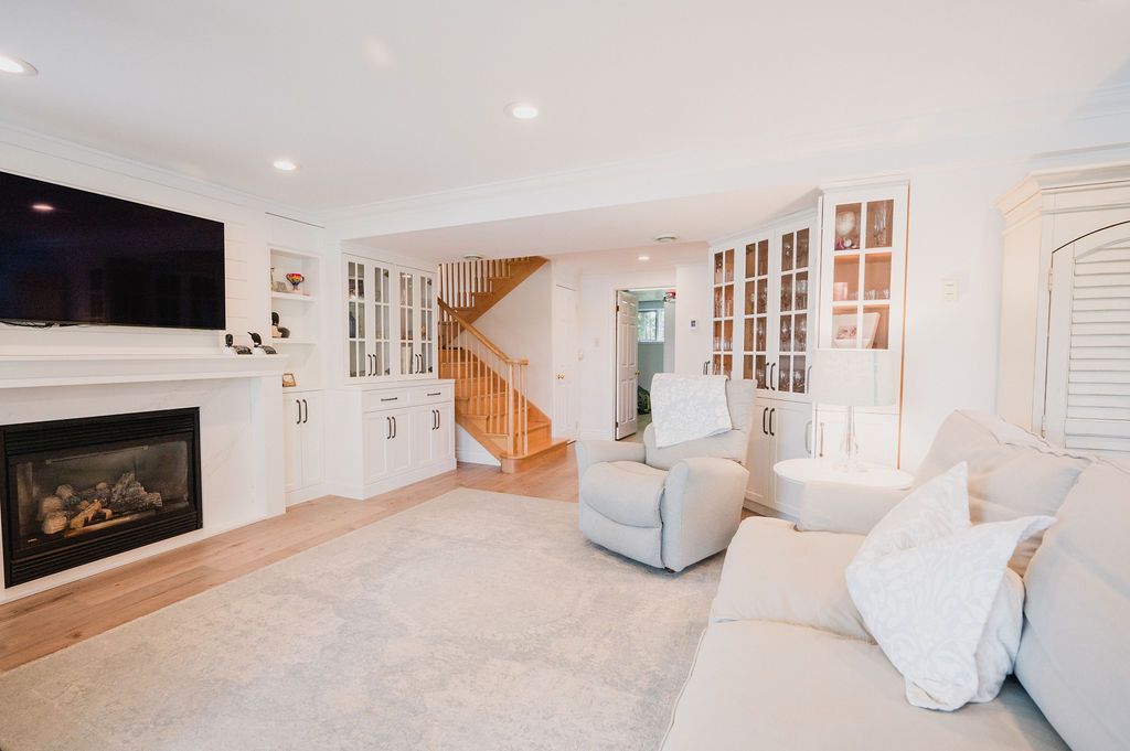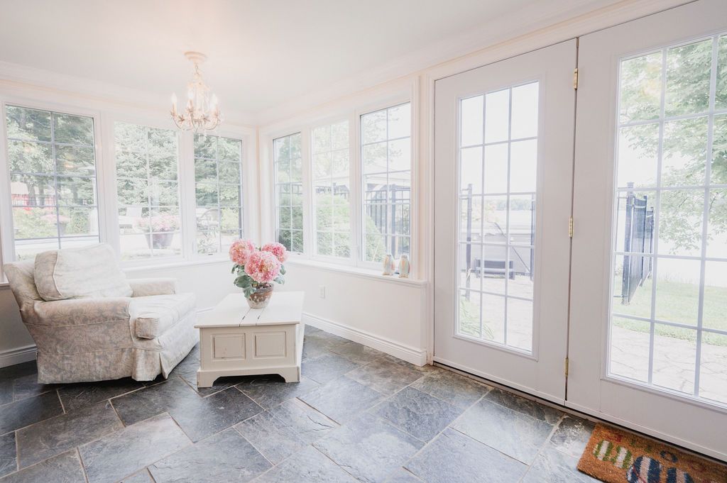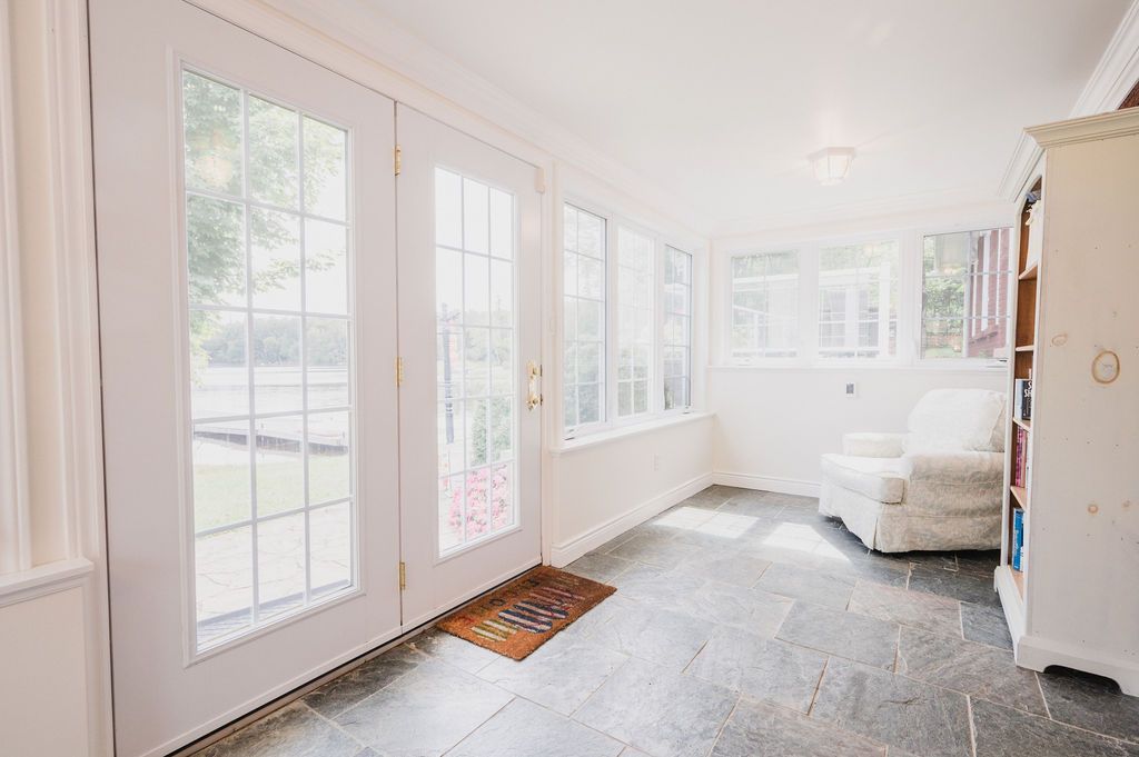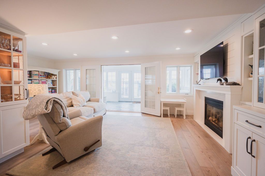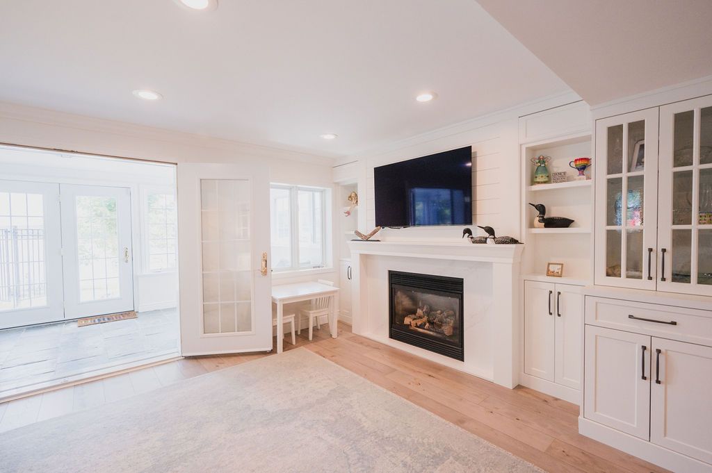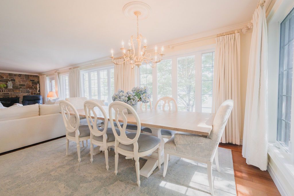 • Open concept design with stunning lake views and a cozy stone fireplace.
