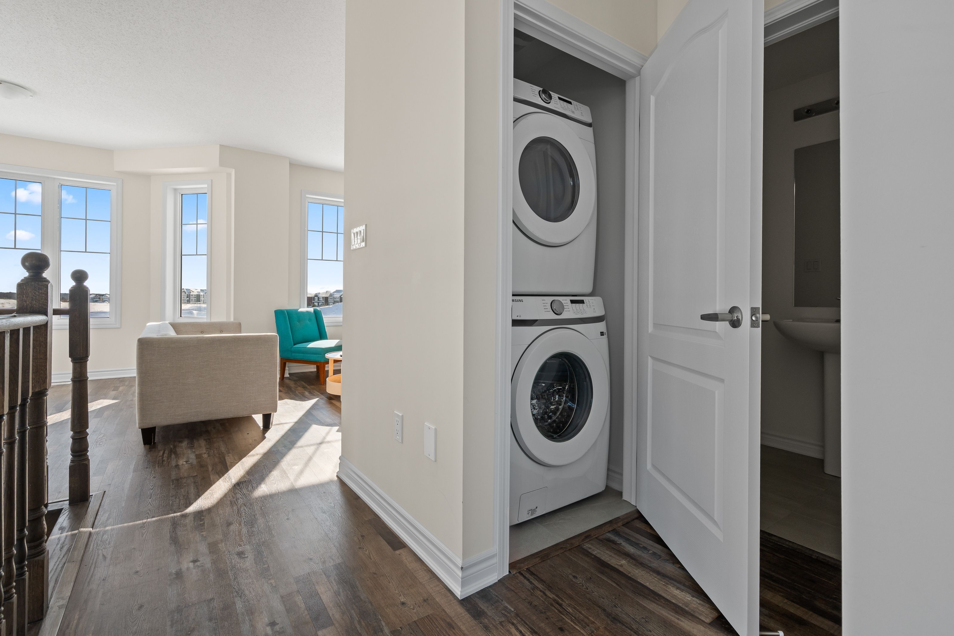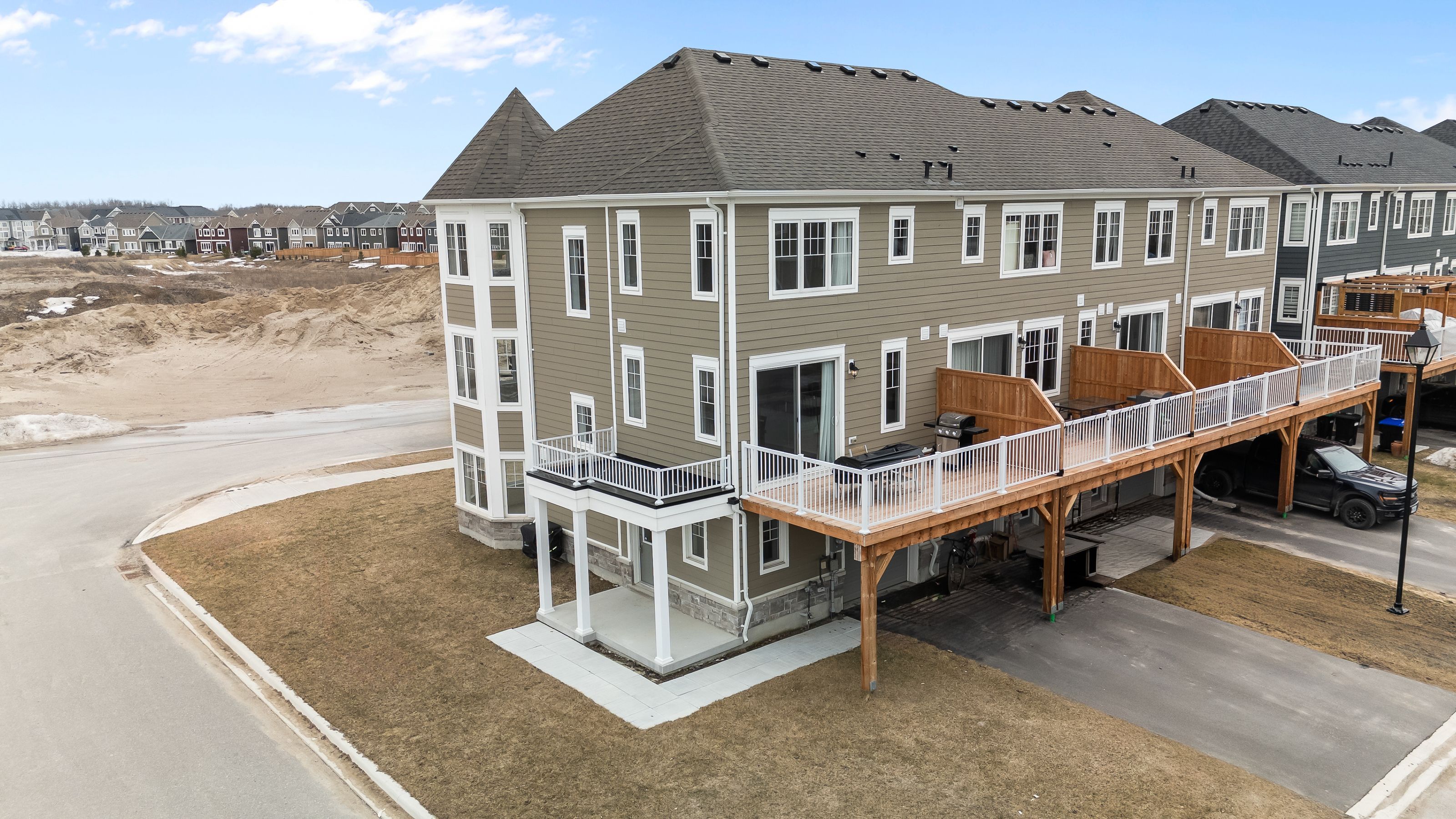 • Bright corner unit with three levels of stylish living space.