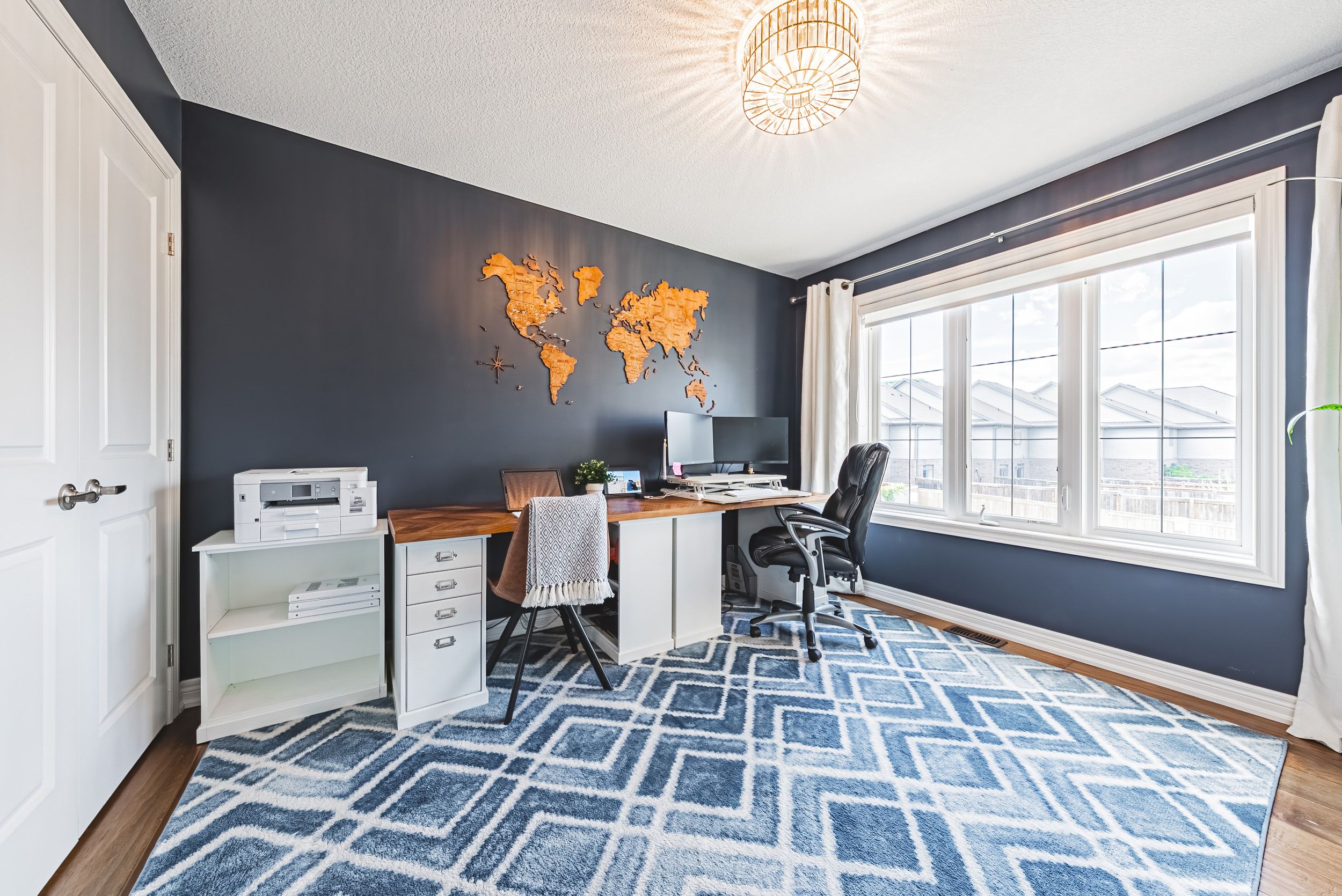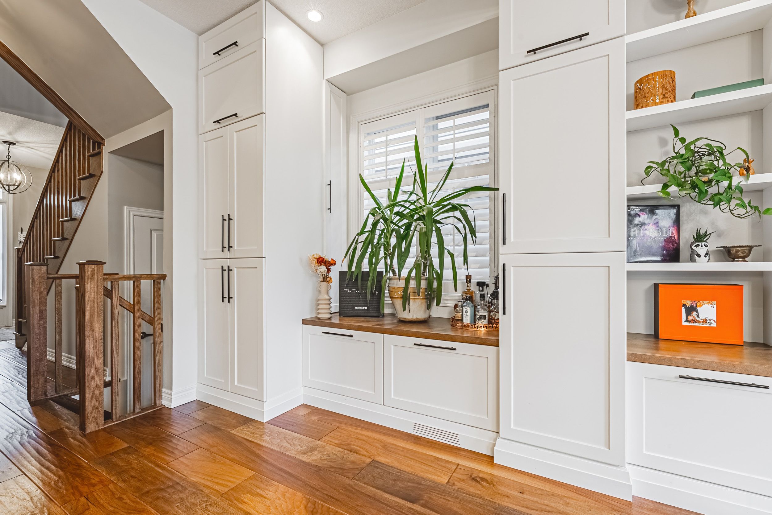 • Spacious living area with custom built-ins and no carpet anywhere.