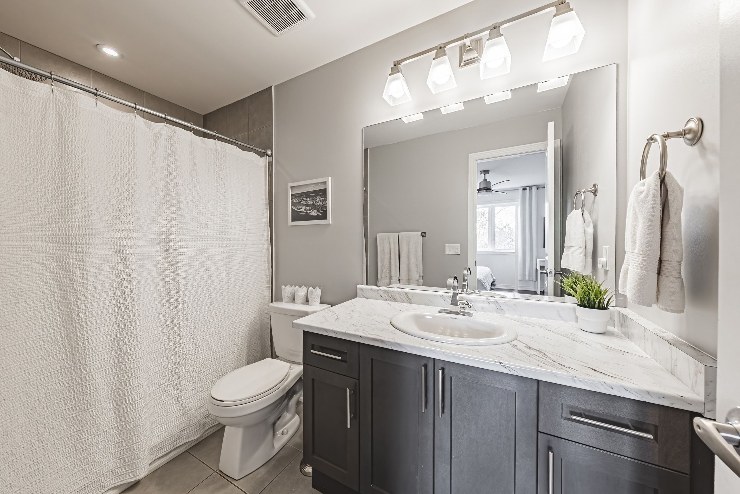 • Upgraded kitchen features quartz countertops and stainless steel appliances.