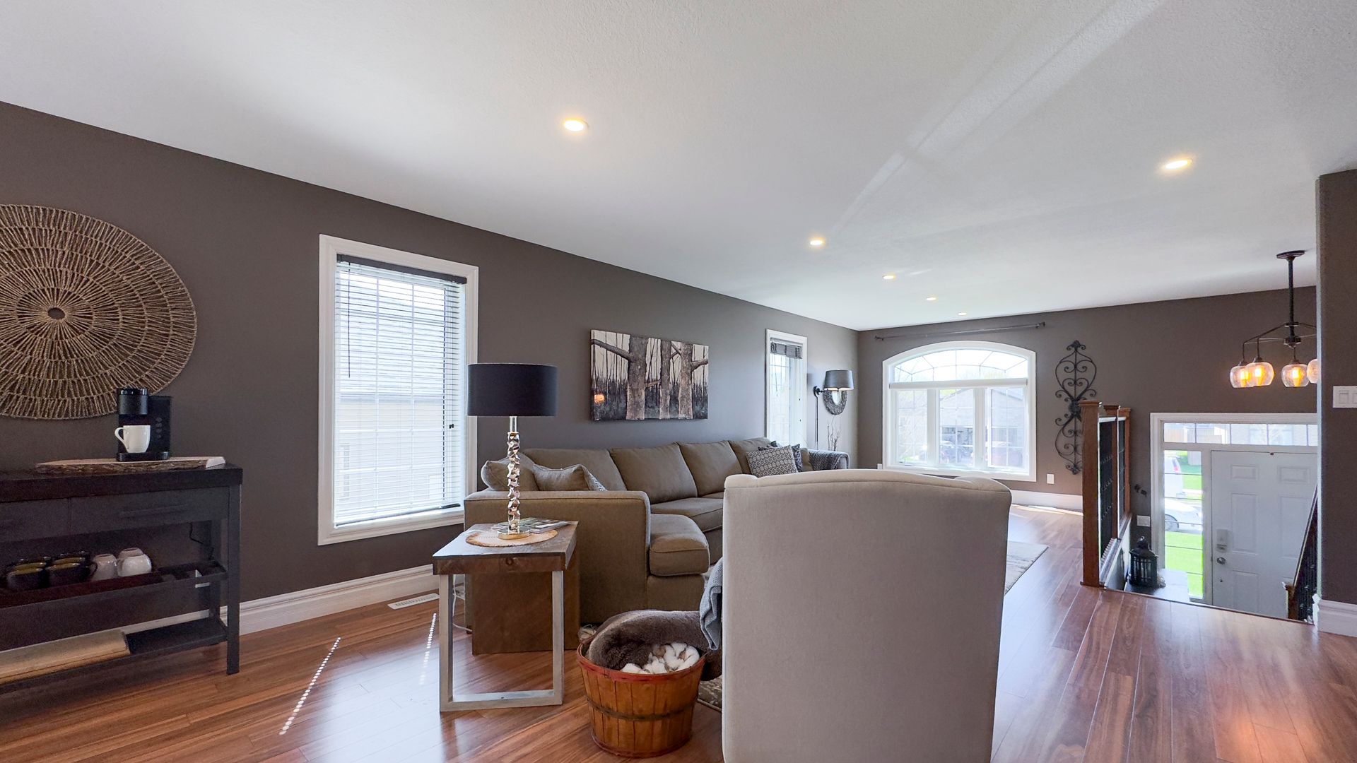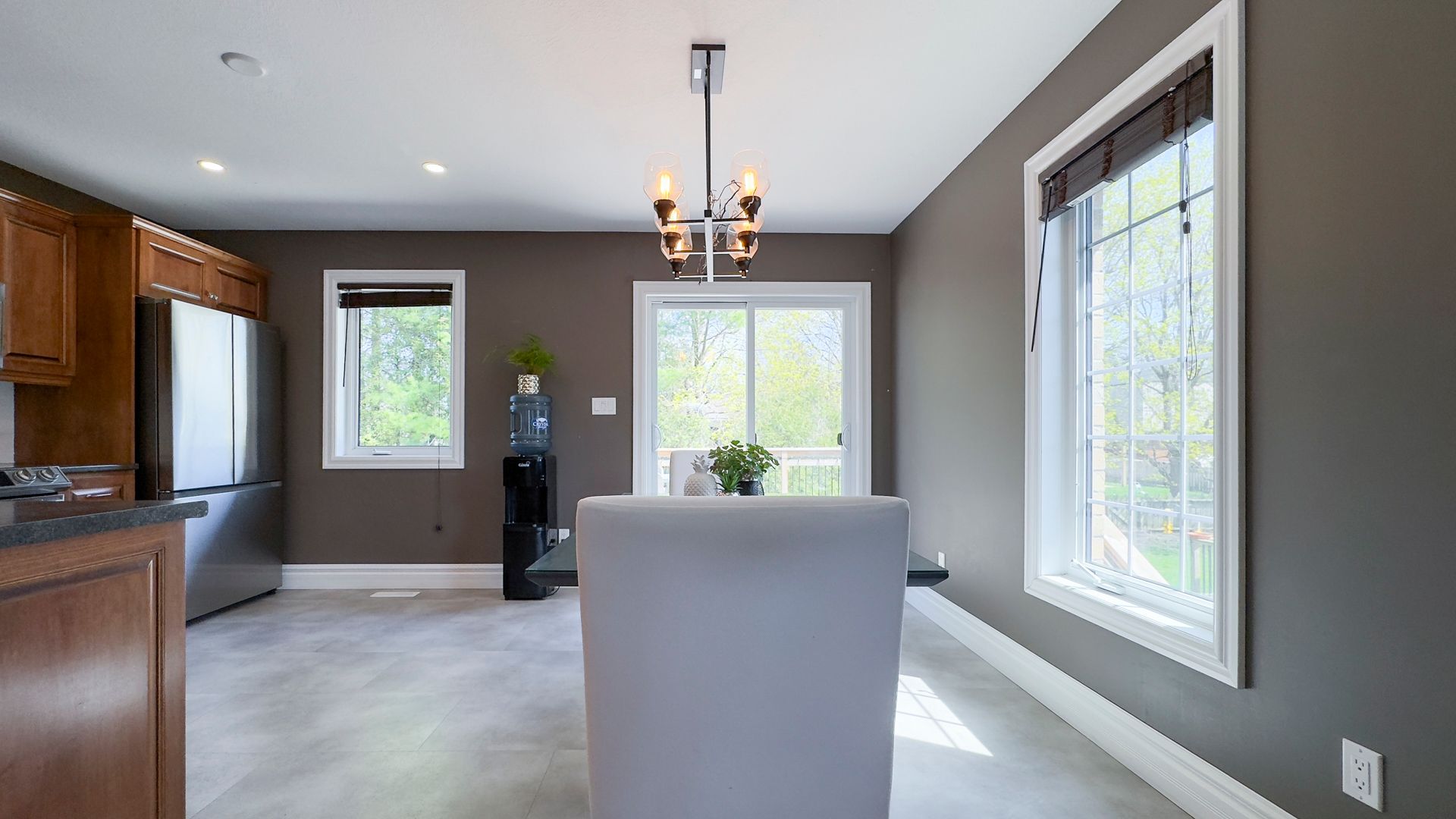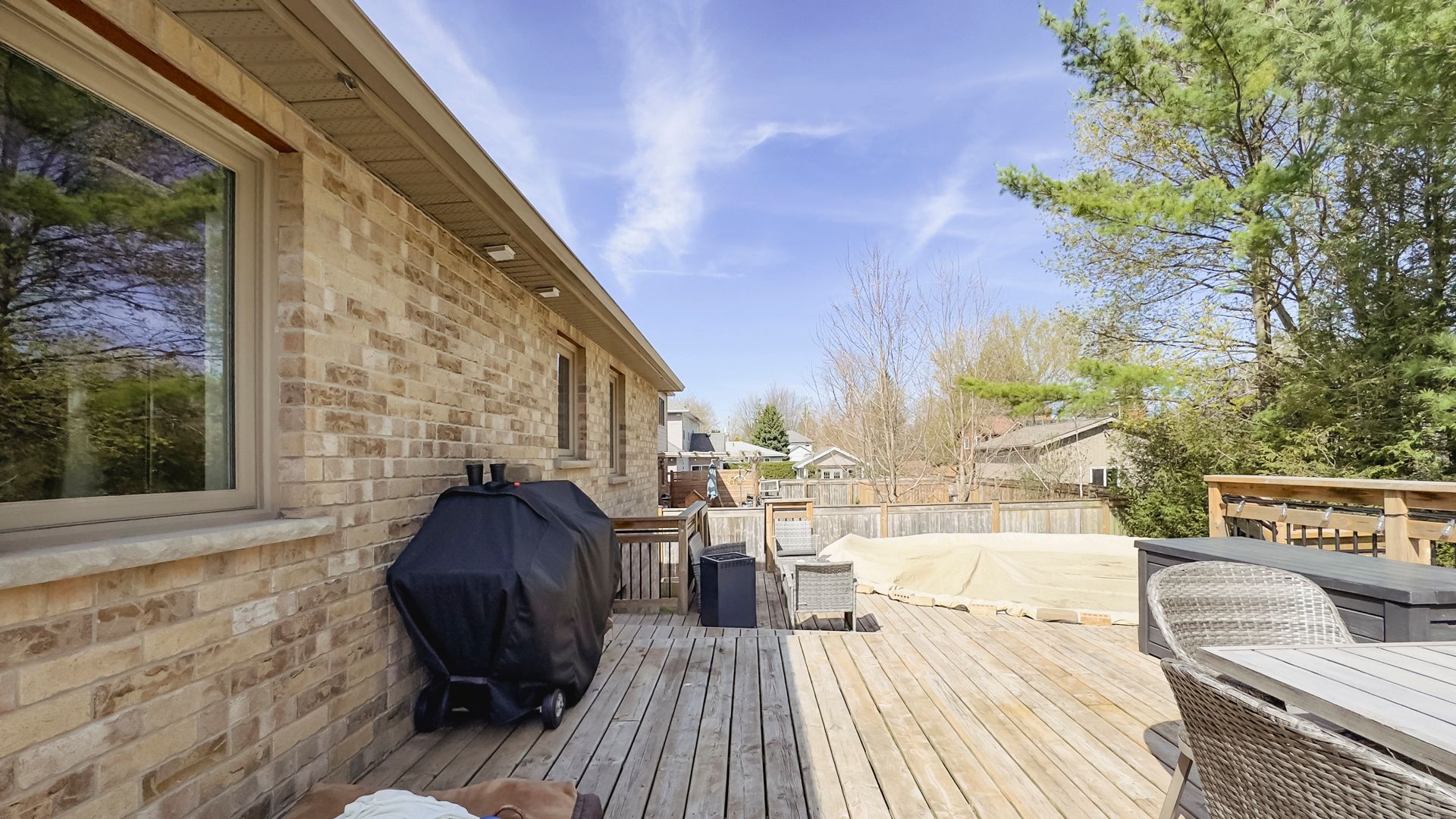 Welcome to this lovely raised bungalow where comfort meets style! With just under 2,400 square feet of living space, this home features 4 spacious bedrooms and 3 bathrooms, just what you need for everyday family life. Outside, the house catches your eye with a charming mix of stone and brick, accented by inviting columns and a stylish stamped concrete driveway. The professionally landscaped front yard and welcoming entrance set the tone right from the start. Step inside to the beautiful foyer that smoothly flows into a bright, open living area perfect for entertaining or dinner parties. The heart of the home, the kitchen, comes complete with a handy breakfast bar, attractive maple cabinetry, new stainless steel appliances, a stone backsplash, and fresh vinyl tile flooring. Right next to it is a dining area that's great for family meals or casual get-togethers. You'll find two good sized bedrooms on the main level, including a primary suite with a walk-in closet and a private 4 pc bath. Head down to the fully finished basement, where large windows let in plenty of natural light to create an inviting space that's ideal for teens or guests. This level also includes two extra bedrooms and another bathroom featuring in-floor heating for that extra cozy touch. Out back, your private retreat awaits a two-tiered deck surrounded by mature trees and a heated above-ground pool that promises endless summer fun and relaxation. Topping it off is an oversized two-car garage with a convenient loft for all your storage needs. This mitchell gem offers a smart layout, stylish finishes, and a friendly vibe you have to see to believe. Don't miss your chance to check it out schedule your tour today!