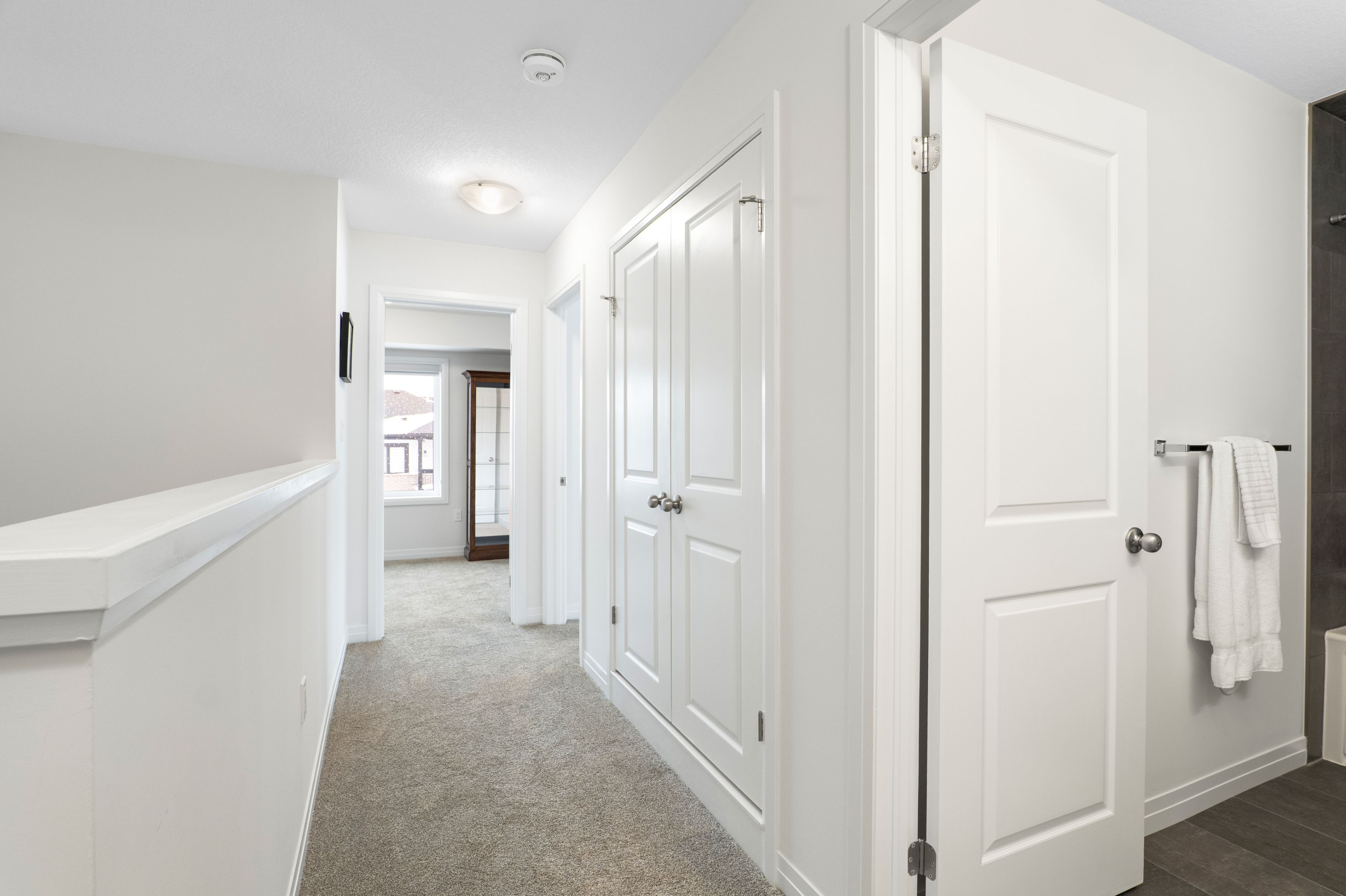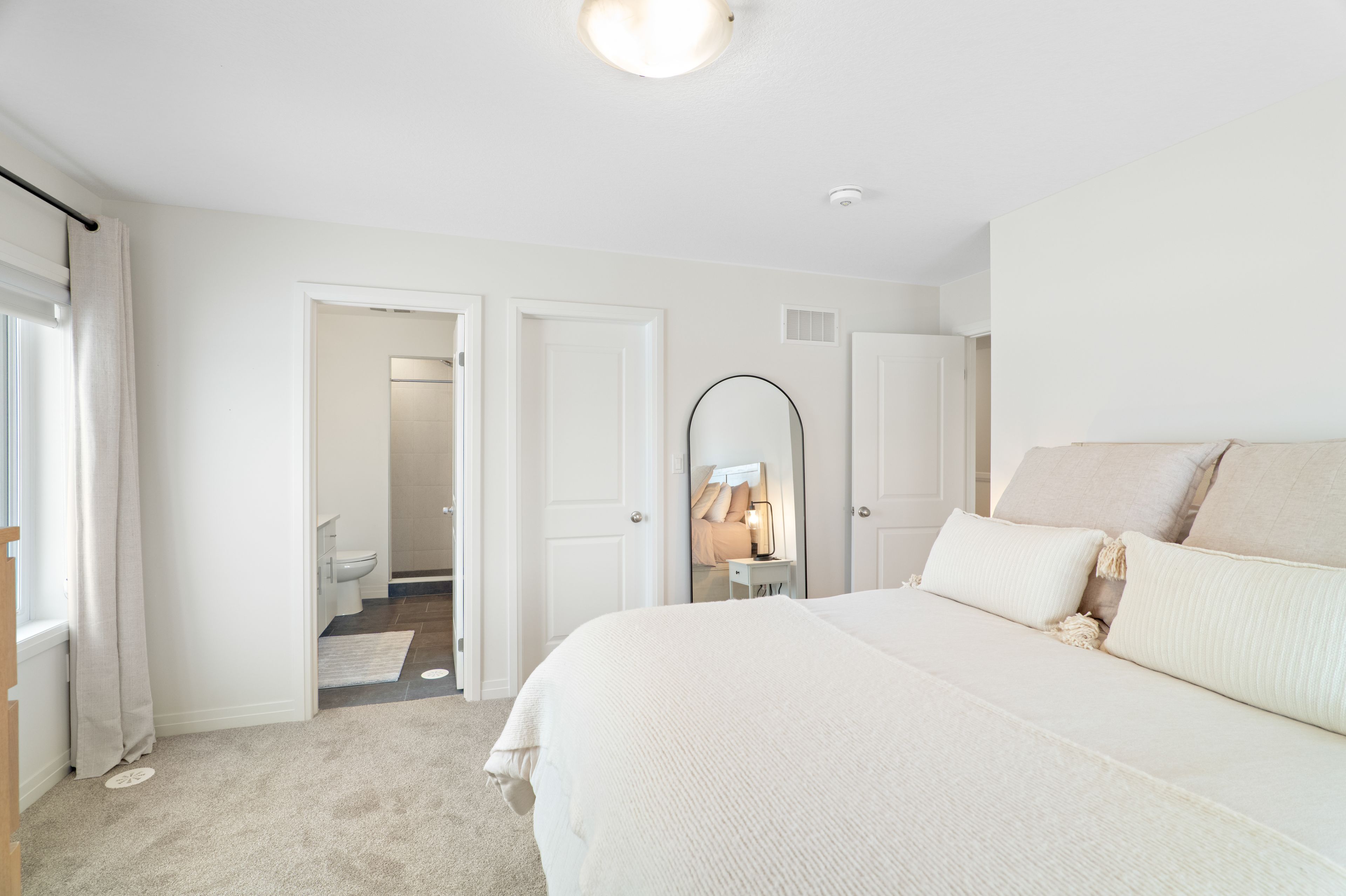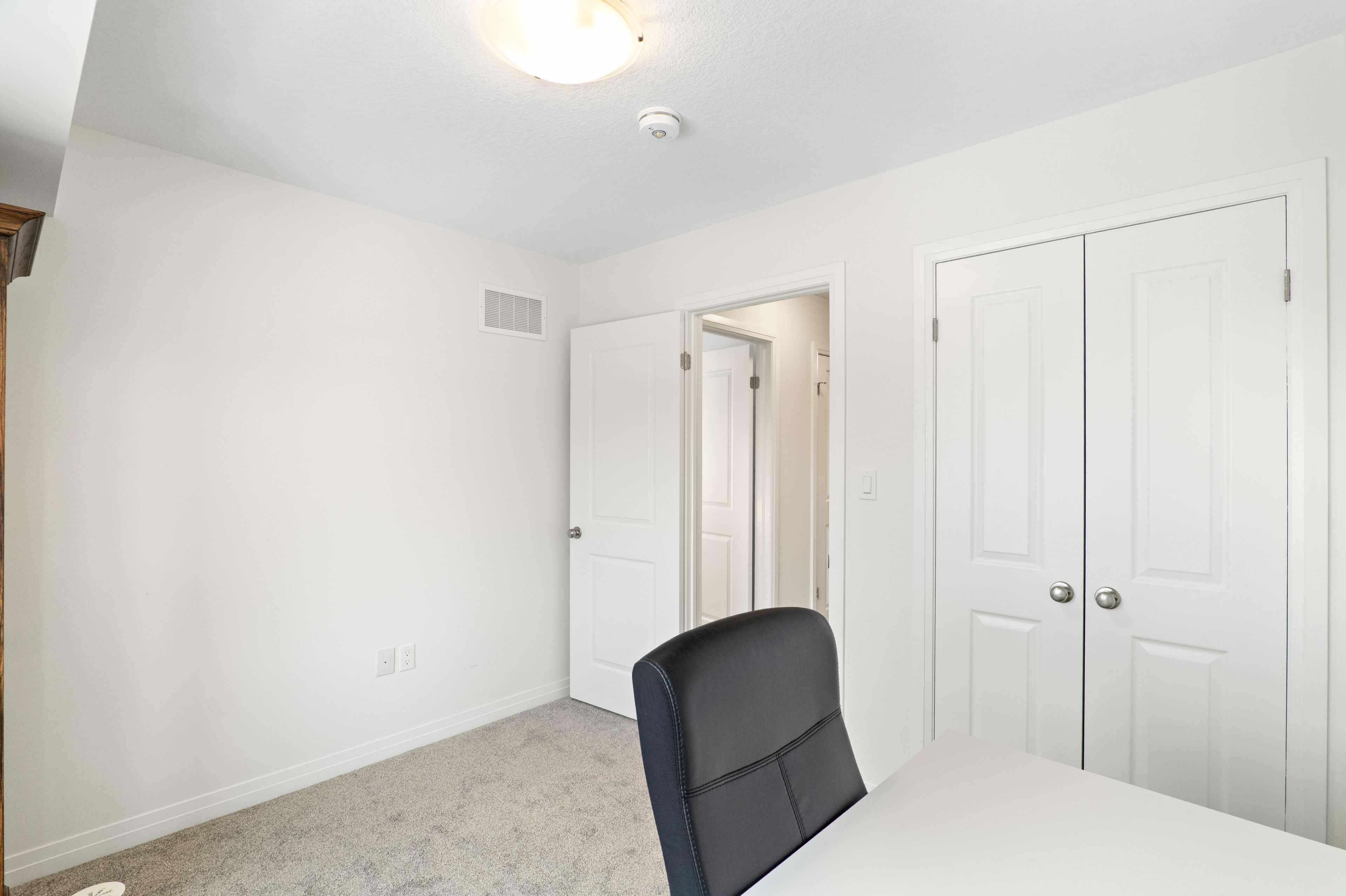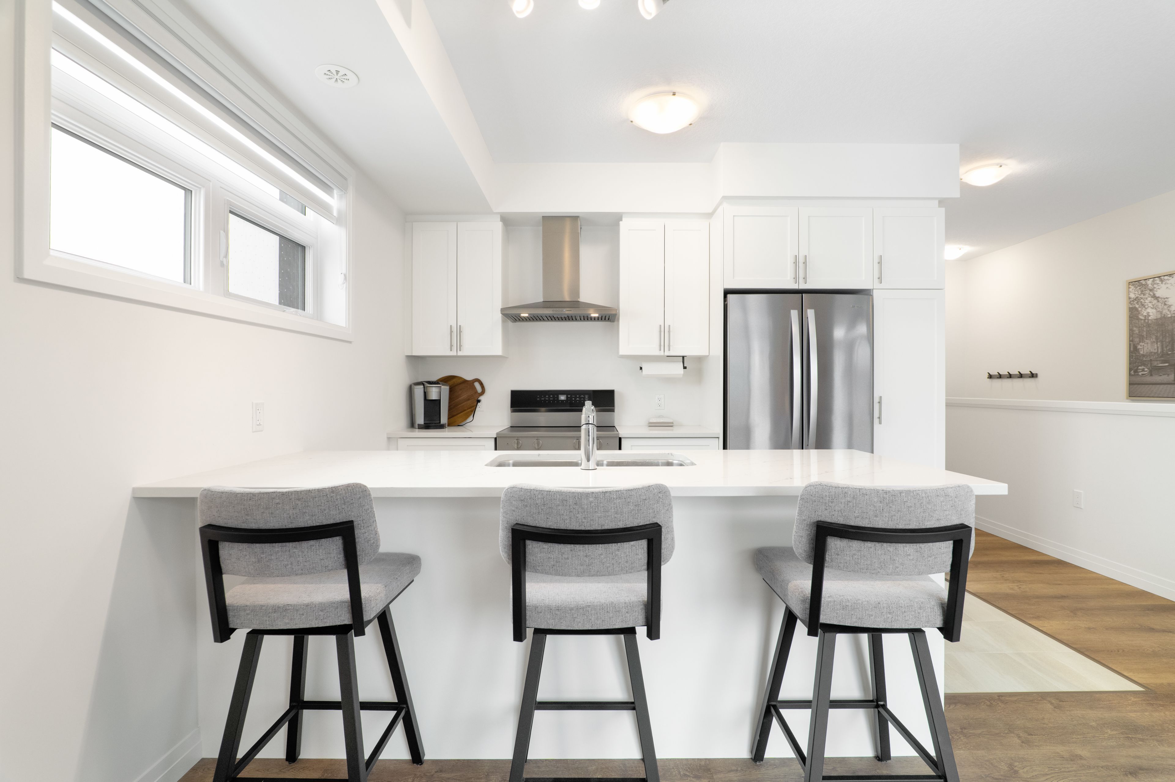 83 thatcher is a stunning end-unit townhome in fusion home's highly sought-after alister development. This prime location places you just minutes from the university of guelph, highway 401, and an abundance of shopping, dining, and everyday amenities. Upon entering, you are immediately welcomed by an abundance of natural light that fills the main floor, a defining feature of this end unit. Expansive windows and glass sliding doors leading to the private balcony create a bright, airy atmosphere throughout the main living space. The kitchen is thoughtfully designed, featuring a four-seat island, stainless steel appliances, sleek countertops, a dual sink, and ample cabinetry and prep space, perfect for both everyday living and entertaining. The living space is open concept to the kitchen, offering an ideal floor plan for entertaining or keeping an eye on young children. With main floor laundry, a convenient two-piece powder room for guests, and a spacious storage closet, this home is both practical and intention in its design. Upstairs, you will find a well-appointed four-piece bathroom and a versatile secondary bedroom, currently used as a home office. The primary bedroom serves as a bright and peaceful retreat, featuring its own private three-piece ensuite and a spacious walk-in closet. From its convenient location and the simplicity of a property with no outdoor maintenance, 83 thatcher invites you home.