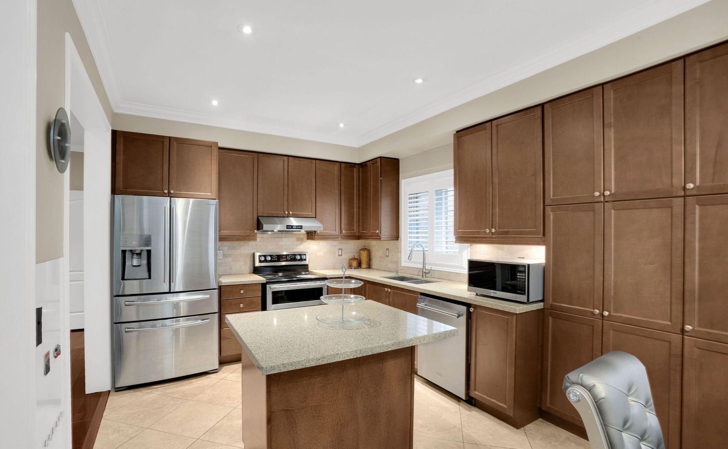 • Generous kitchen featuring stainless steel appliances and granite counters.