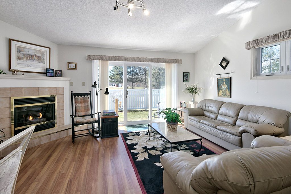 The best location in the complex! Beautiful end-unit offering over 1,400 sq ft of comfortable living space and a fantastic opportunity to make it your own. With a functional, open layout and generous principal rooms, this home provides a solid foundation for customization and added value. The bright living area features a cozy gas fireplace, perfect for cooler months, and large windows with sliding doors that lead to a private, spacious patio-ideal for enjoying sunset views. A welcoming covered front porch adds to the home's charm and curb appeal. Well-maintained mechanicals, including a gas furnace and central air, offer reliable year-round comfort. The spacious lower level family room features a second gas fireplace keeping the space warm and comfortable. Ideally located just a 7-minute walk to the bay, restaurants, and local amenities, and only a 20-minute drive to georgian peaks skiing. An excellent opportunity for buyers looking to enter the market or add their personal touch-offering great value and endless potential in a sought-after location.