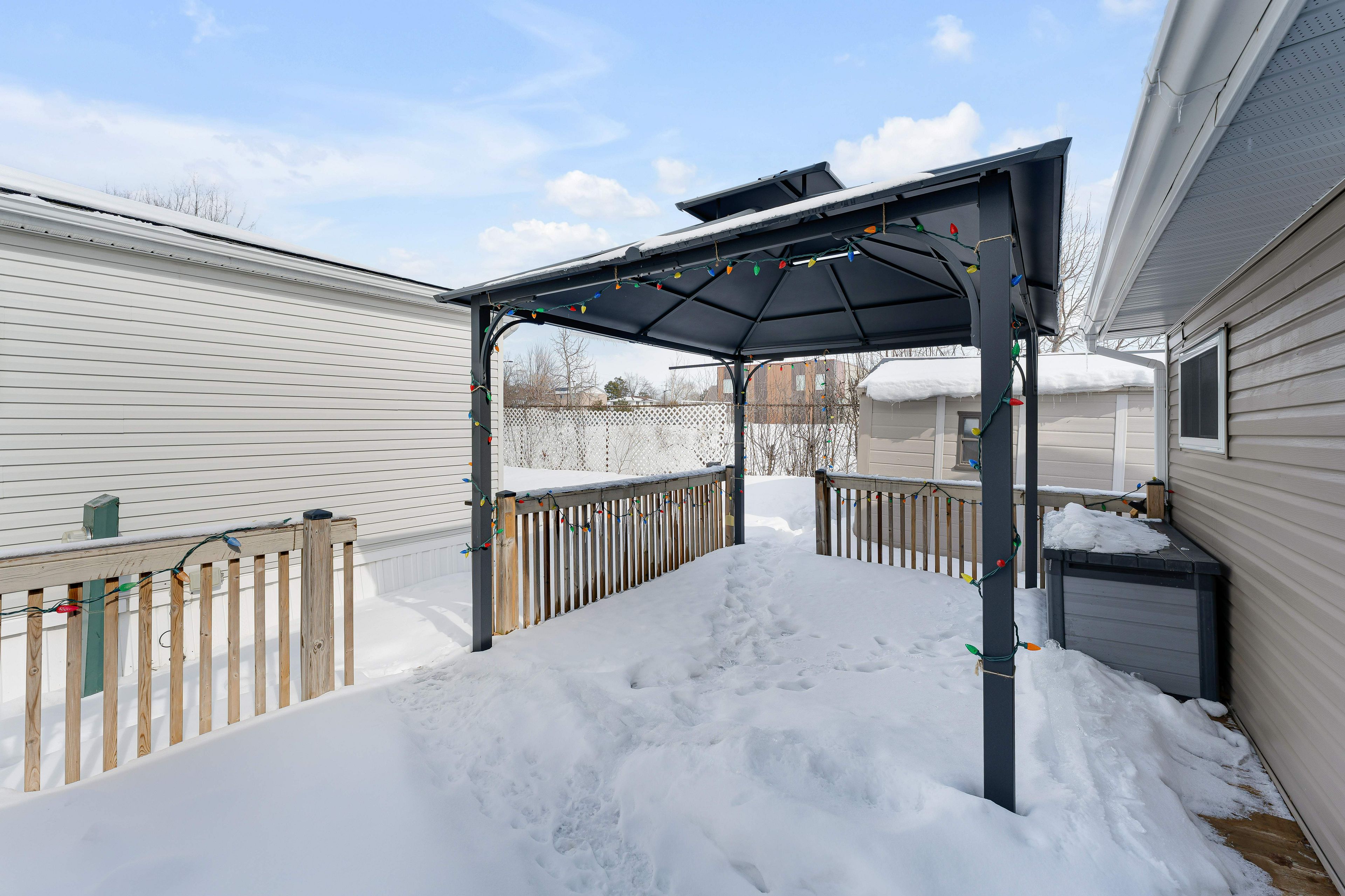 Welcome to this beautifully maintained two bedroom, one bath mobile home located in worthington park. One of kingston's affordable lifestyle communities. The home features a large and bright living room, eat-in kitchen plus bonus office, sitting space that leads out to a private deck with gazebo. The nicely updated bathroom with shower, laundry and heated floors complements the two bedrooms. Multiple sheds for storage and located steps to the community clubhouse. Close to public transit, shopping parks, cinema and restaurants. A perfect place to become part of a quiet community. A/c heat pump(6 years) furnace (6 years)