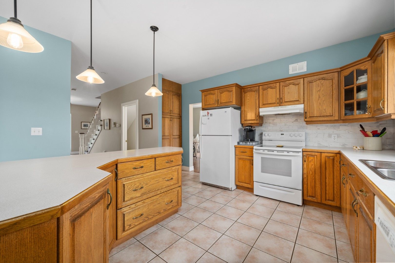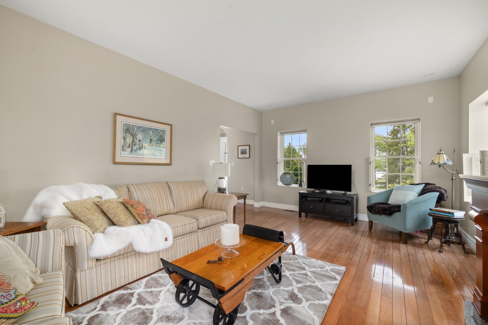 • 3 bedrooms and 3 bathrooms with hardwood floors throughout the main level.