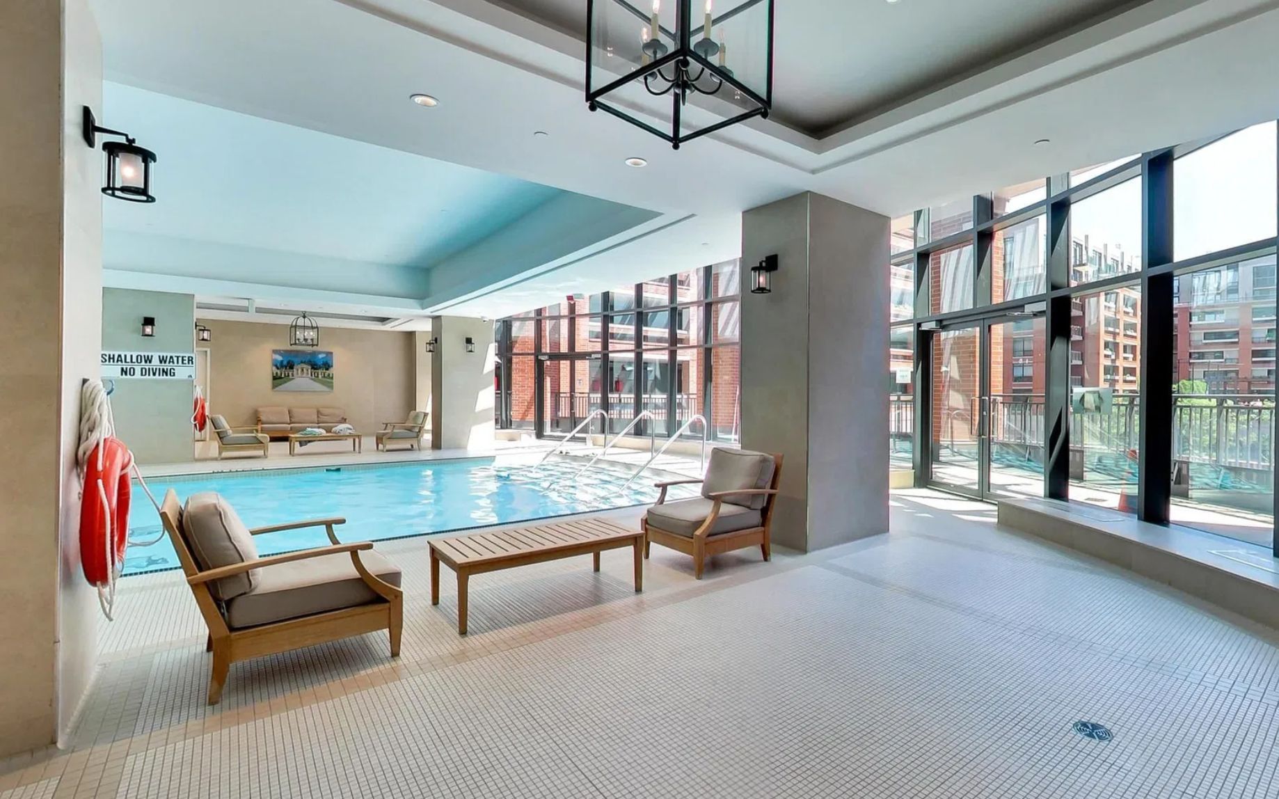 • Building offers great amenities like a fitness center and indoor pool.