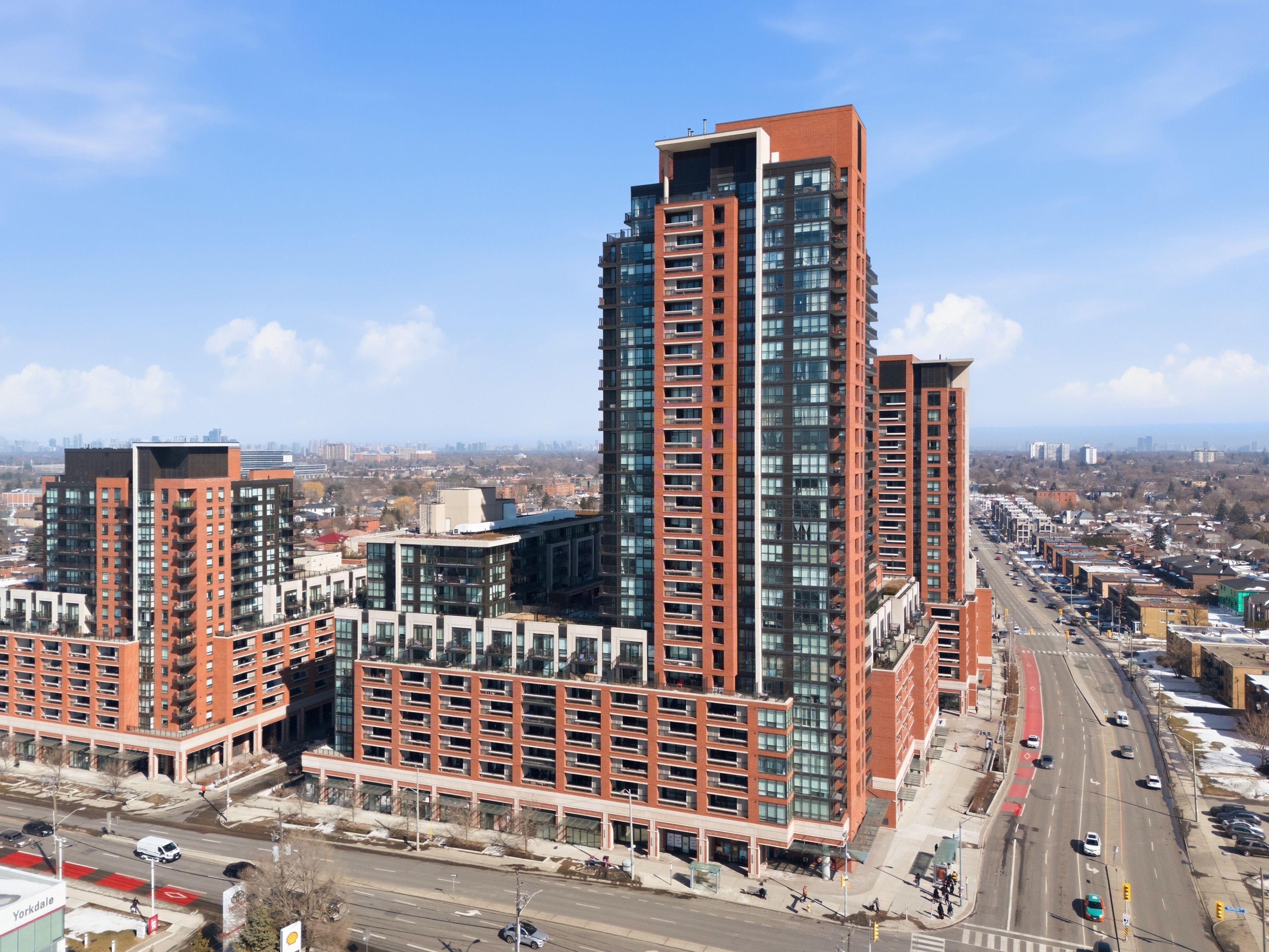 Bright and inviting 1 bedroom + den suite at treviso ii condos featuring a functional, well-designed layout and your very own 158-sqft private terrace! Freshly painted and move-in ready, this unit includes a spacious den ideal for a dedicated home office, study, or creative workspace. The open-concept living and dining area is filled with natural light and flows seamlessly into the kitchen, complete with stainless steel appliances and ample cabinetry offering plenty of storage. The expansive terrace provides an incredible extension of your living space, ideal for relaxing, entertaining guests, or enjoying outdoor dining. Conveniently located with transit at your doorstep, just a short walk to lawrence west subway station and lawrence allen centre. Nearby amenities include shoppers drug mart, parks, playgrounds, schools, churches, grocery stores, cafés, and restaurants. Only minutes to yorkdale mall, with quick subway access to downtown and easy connections to major highways. Residents enjoy a wide range of building amenities, including a 24-hour concierge, fully equipped fitness centre, indoor swimming pool, sauna, rooftop jacuzzi, party room, outdoor lounge with bbq area, and generous underground visitor parking. Includes 1 parking spot.
