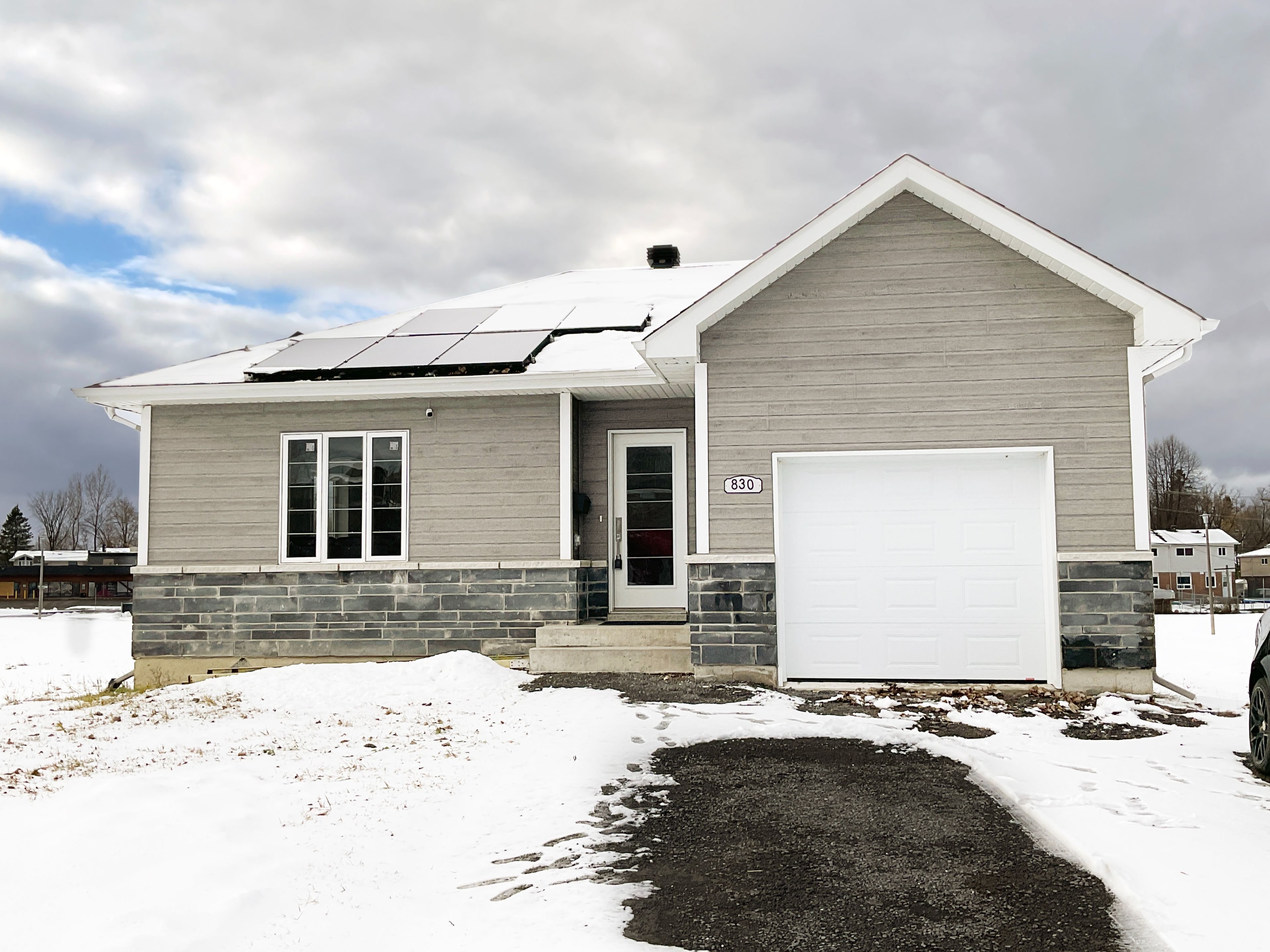 Modern 4-bed bungalow energy-independent living in the heart of hawkesbury. Welcome to a rare blend of urban convenience and off-grid efficiency. This 2022-built 4 bedroom, 3 bathroom bungalow delivers modern living without the monthly hydro bill drama. Yes - no hydro service. This home runs on intelligence, not wires. Step inside to warm wood and clean ceramic floors, an open, practical layout, and a cozy natural gas fireplace that anchors the living space. The kitchen is equipped with a natural gas stove, plus a natural gas dryer for efficient laundry days. The real star? Your very own owned photovoltaic solar panels with battery storage - giving you energy independence while living in the middle of town. No compromise. No reliance. Just freedom. The home offers 1,100 sq. Ft on the main floor. Add the same space for additional living in the semi-finished basement. All this on a smart 5,000 sq. Ft. Lot, with an attached garage for year-round comfort. Laundry is in the basement, keeping your main floor open and clutter-free. Located right in hawkesbury, you're minutes from shopping, services, schools, and parks and close to commute routes to ottawa, montréal, and the laurentians. Perfect for professionals, families, or anyone who wants modern comfort and energy autonomy.