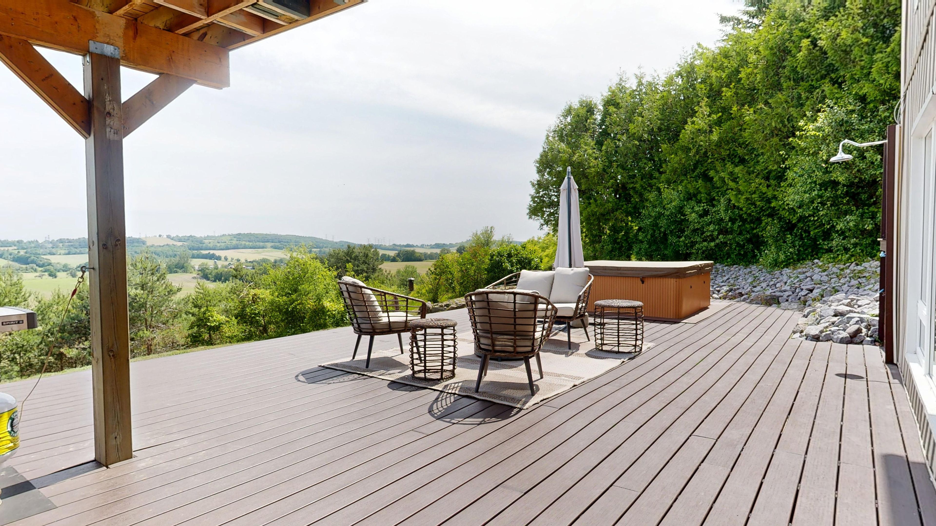 A stunning back split offering a billion-dollar view of the rolling northumberland hills and lake ontario! Set atop 8 acres of pristine land with 661. 36 feet of frontage, this property is the epitome of luxury living. If you've ever wondered what a 15/10 property looks like, now is your chance to find out. This exquisite home features 4 spacious bedrooms and 3 bath, all in an open-concept layout with soaring vaulted ceilings. The grand floor-to-ceiling gas fireplace is a showstopper, and the gourmet kitchen comes equipped with high-end g&e cafe appliances. A brand-new paved driveway completes the exterior. Imagine waking up to the sunrise and unwinding with breathtaking sunsets both will leave you in awe. With south-facing exposure, you'll enjoy sunshine all day long. Two walkouts lead to a massive composite deck, complete with a hot tub for ultimate relaxation. Conveniently located just 10 minutes from cobourg and 20 minutes to the 407 and peterborough. The harwood boat launch to rice lake is just 5 minutes away, and the property offers high-speed fiber, garbage collection, and school pick-up services.