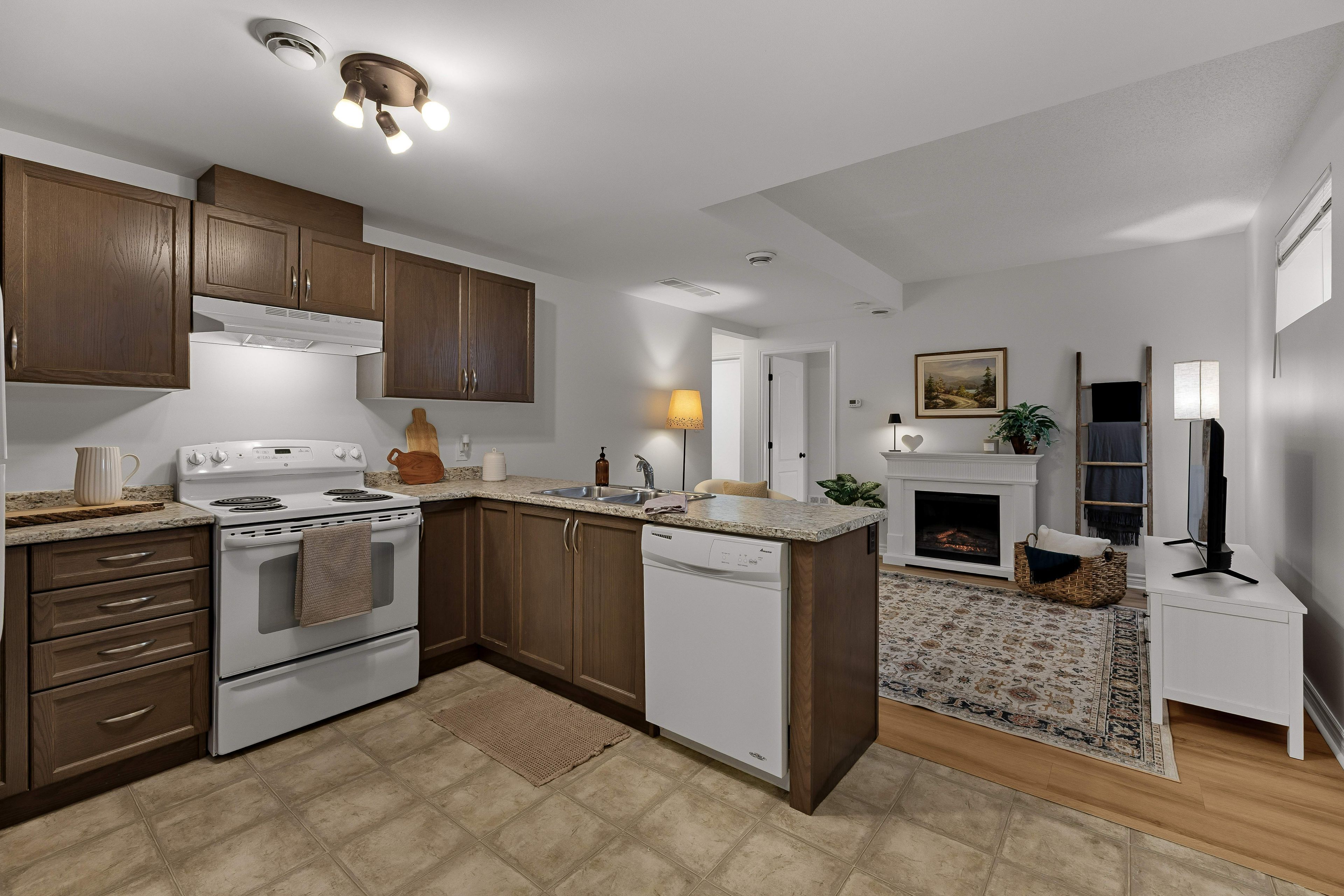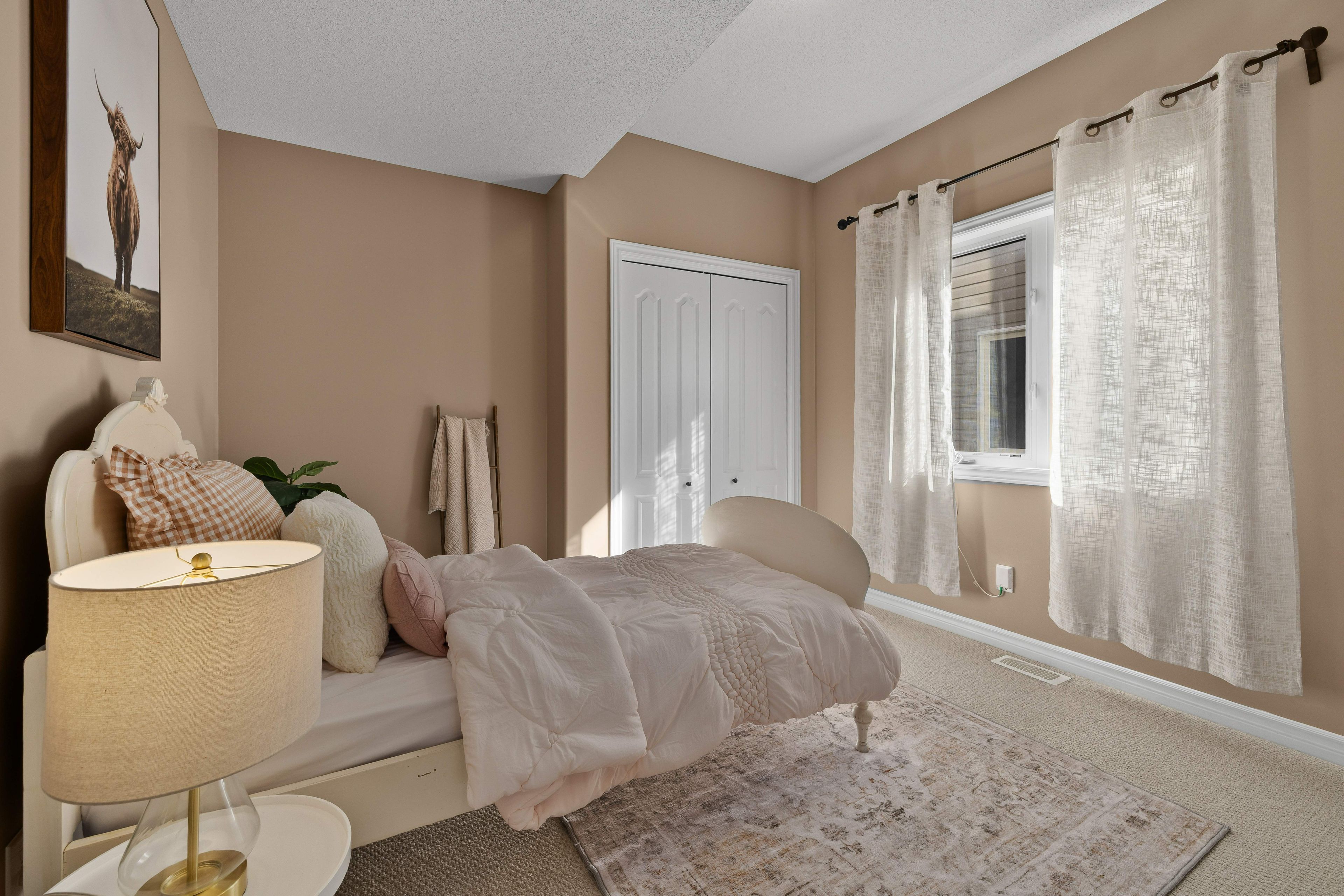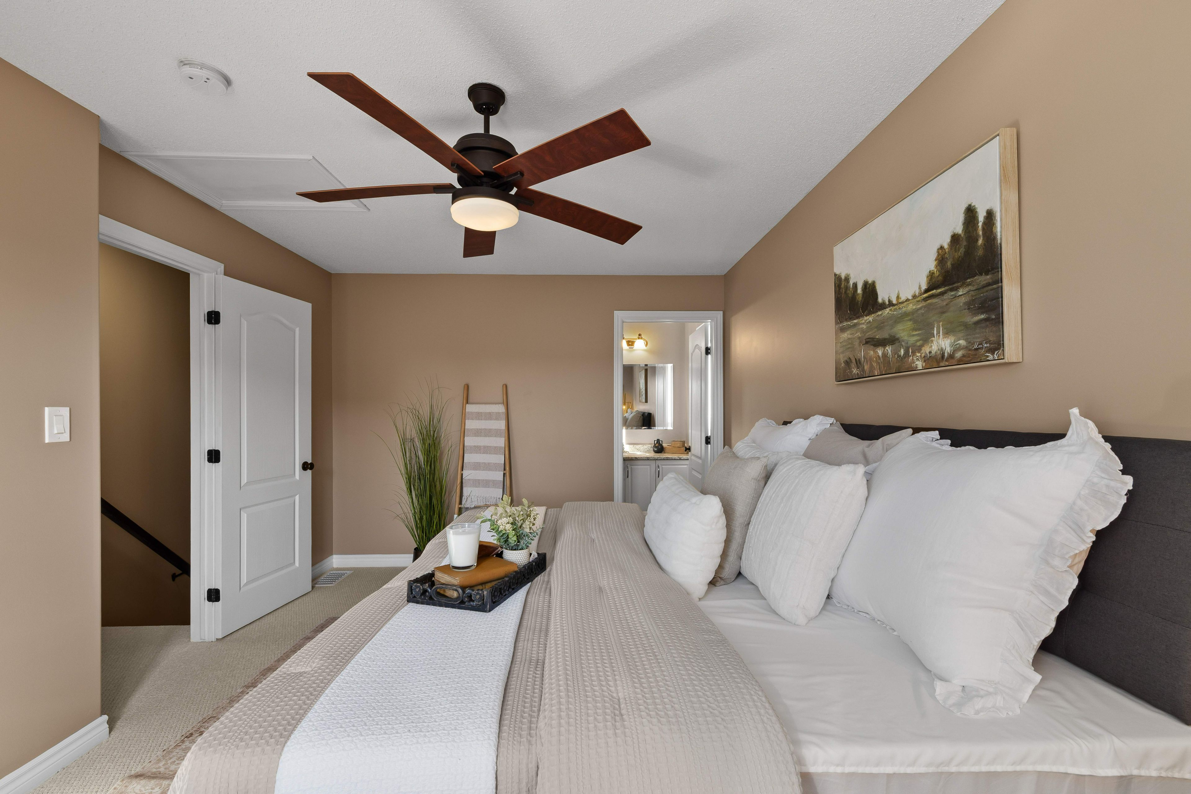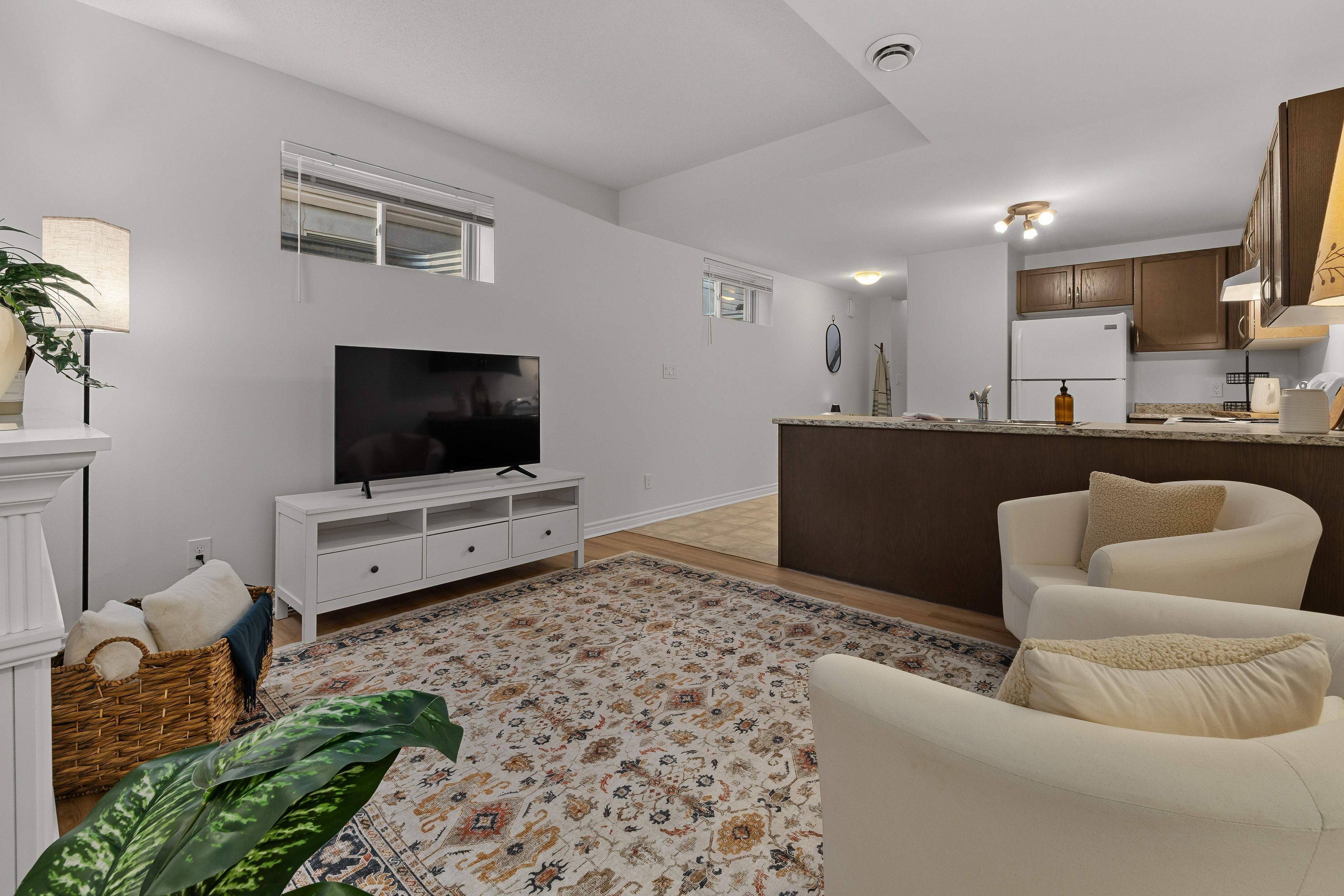 This exceptional one owner, detached bungaloft was built in 2014, offering flexibility, comfort, and income potential with a legal secondary suite in the lower level. Centrally located, close to shopping, transit, and with easy access to highway 401, this home is ideal for families or investors alike. The upper unit features a spacious and unique floor plan with 3 bedrooms and 2 full bathrooms, including a private primary suite on the second level complete with ensuite for added separation and tranquility. You'll also appreciate the new carpet on the stairs and in the primary suite, adding a fresh and cozy touch. The main floor offers an open-concept living and dining area, and a large upgraded kitchen with extended cabinetry to the ceiling, corner pantry, extra storage, and a large island perfect for gatherings and meal prep. Two additional bedrooms, a full bath, private laundry, and interior access to the double garage complete this level. An unfinished bonus room in the basement provides space for storage, a home gym, or future finishing. The lower-level apartment features its own separate entrance, 9-foot ceilings, two bedrooms, new flooring, fresh paint, and in-suite laundry. Each unit has its own furnace and full fire separation, ensuring comfort, safety, and independence for both occupants. The owner opted to add a fire door connecting the two units through the lower level so the option to connect the two spaces is optional. With flexible closing and all appliances included, this home is move-in ready and offers the perfect opportunity for multi-generational living or generating rental income.