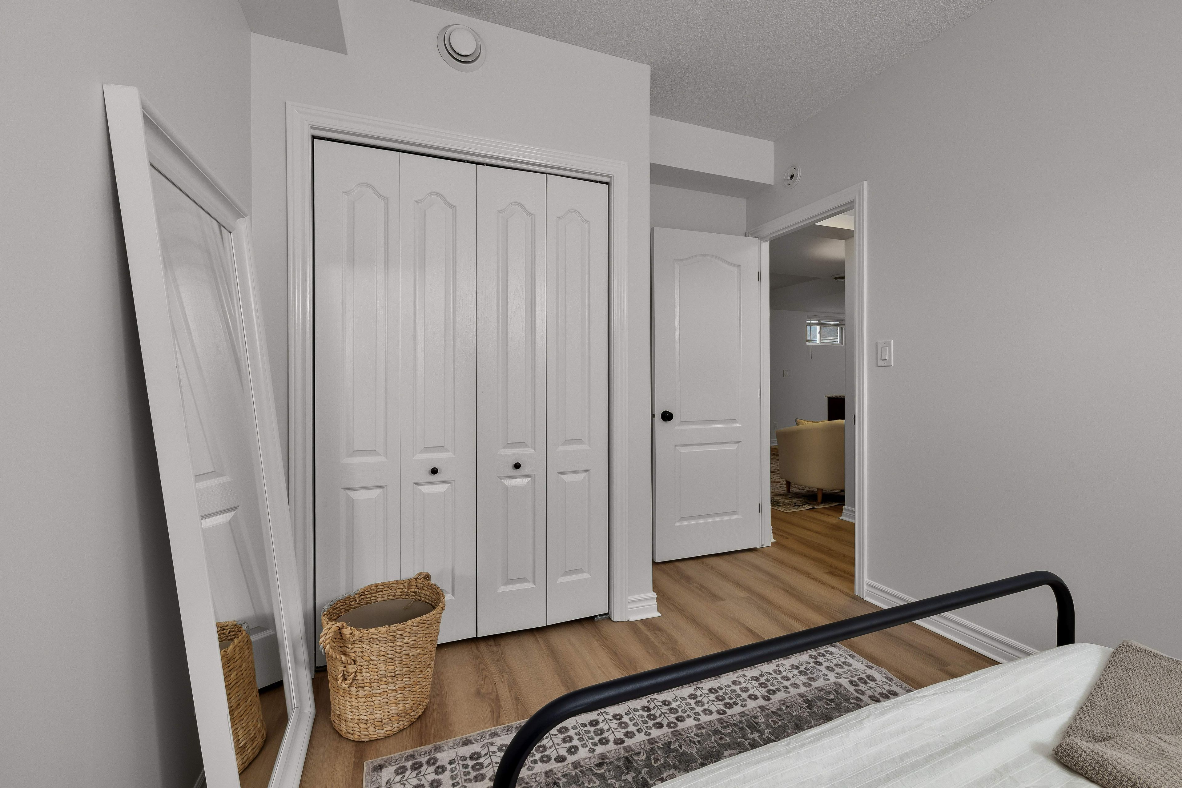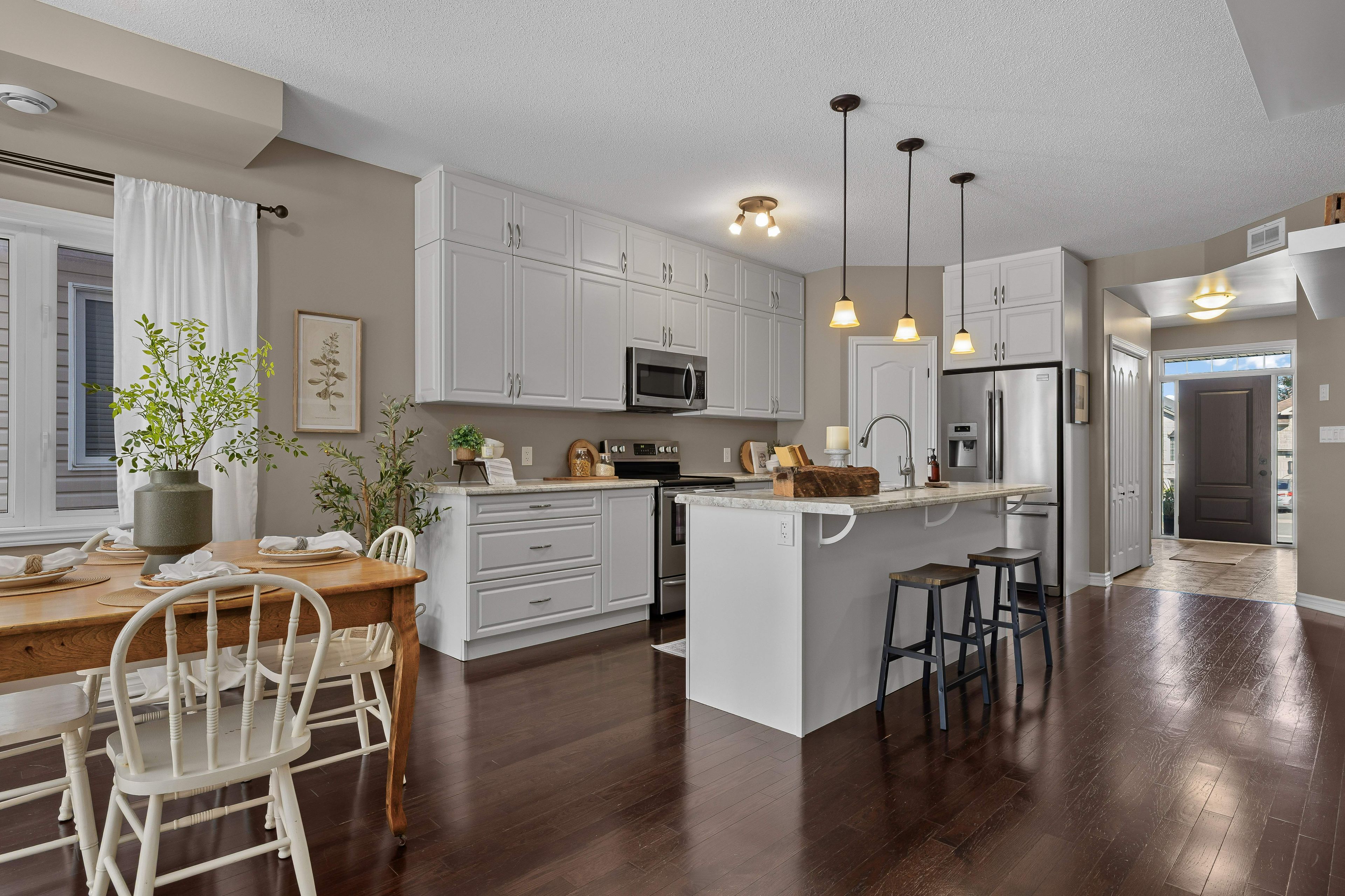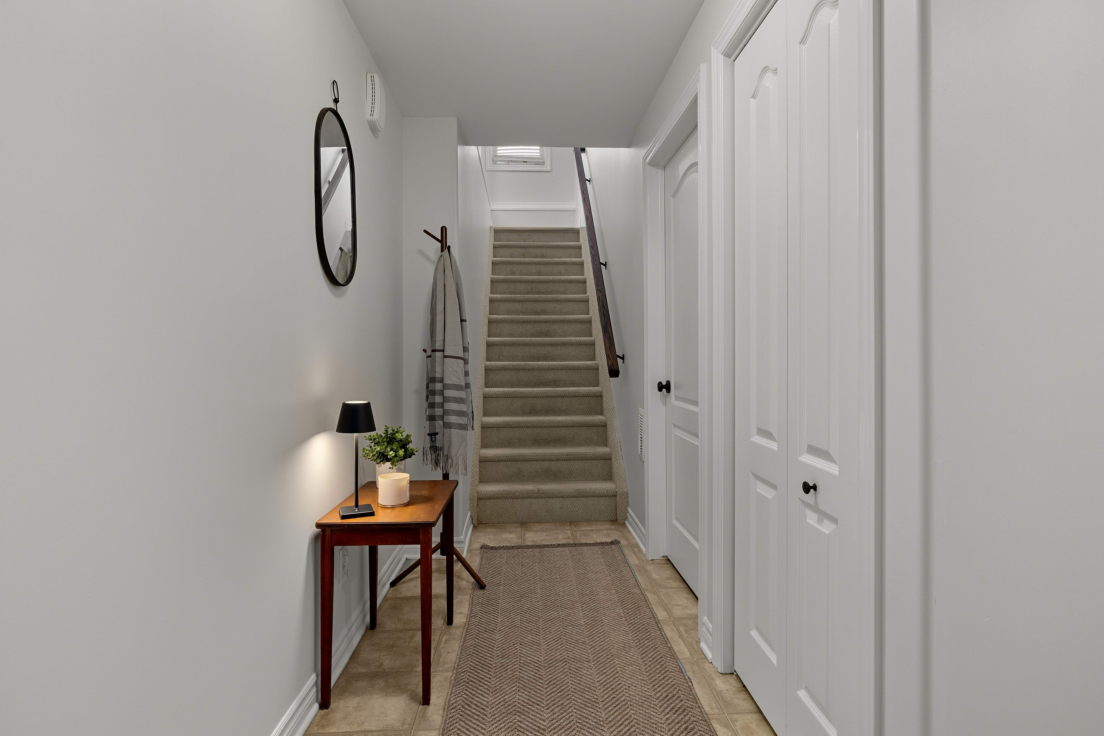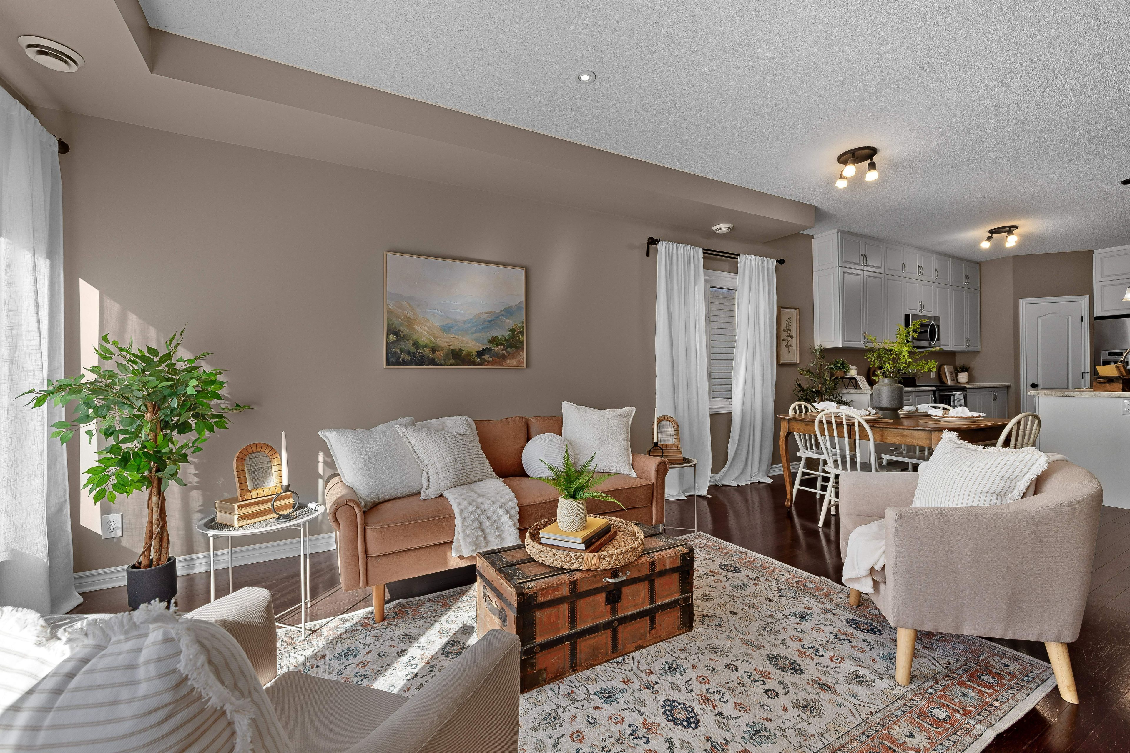 This exceptional one owner, detached bungaloft was built in 2014, offering flexibility, comfort, and income potential with a legal secondary suite in the lower level. Centrally located, close to shopping, transit, and with easy access to highway 401, this home is ideal for families or investors alike. The upper unit features a spacious and unique floor plan with 3 bedrooms and 2 full bathrooms, including a private primary suite on the second level complete with ensuite for added separation and tranquility. You'll also appreciate the new carpet on the stairs and in the primary suite, adding a fresh and cozy touch. The main floor offers an open-concept living and dining area, and a large upgraded kitchen with extended cabinetry to the ceiling, corner pantry, extra storage, and a large island perfect for gatherings and meal prep. Two additional bedrooms, a full bath, private laundry, and interior access to the double garage complete this level. An unfinished bonus room in the basement provides space for storage, a home gym, or future finishing. The lower-level apartment features its own separate entrance, 9-foot ceilings, two bedrooms, new flooring, fresh paint, and in-suite laundry. Each unit has its own furnace and full fire separation, ensuring comfort, safety, and independence for both occupants. The owner opted to add a fire door connecting the two units through the lower level so the option to connect the two spaces is optional. With flexible closing and all appliances included, this home is move-in ready and offers the perfect opportunity for multi-generational living or generating rental income.
