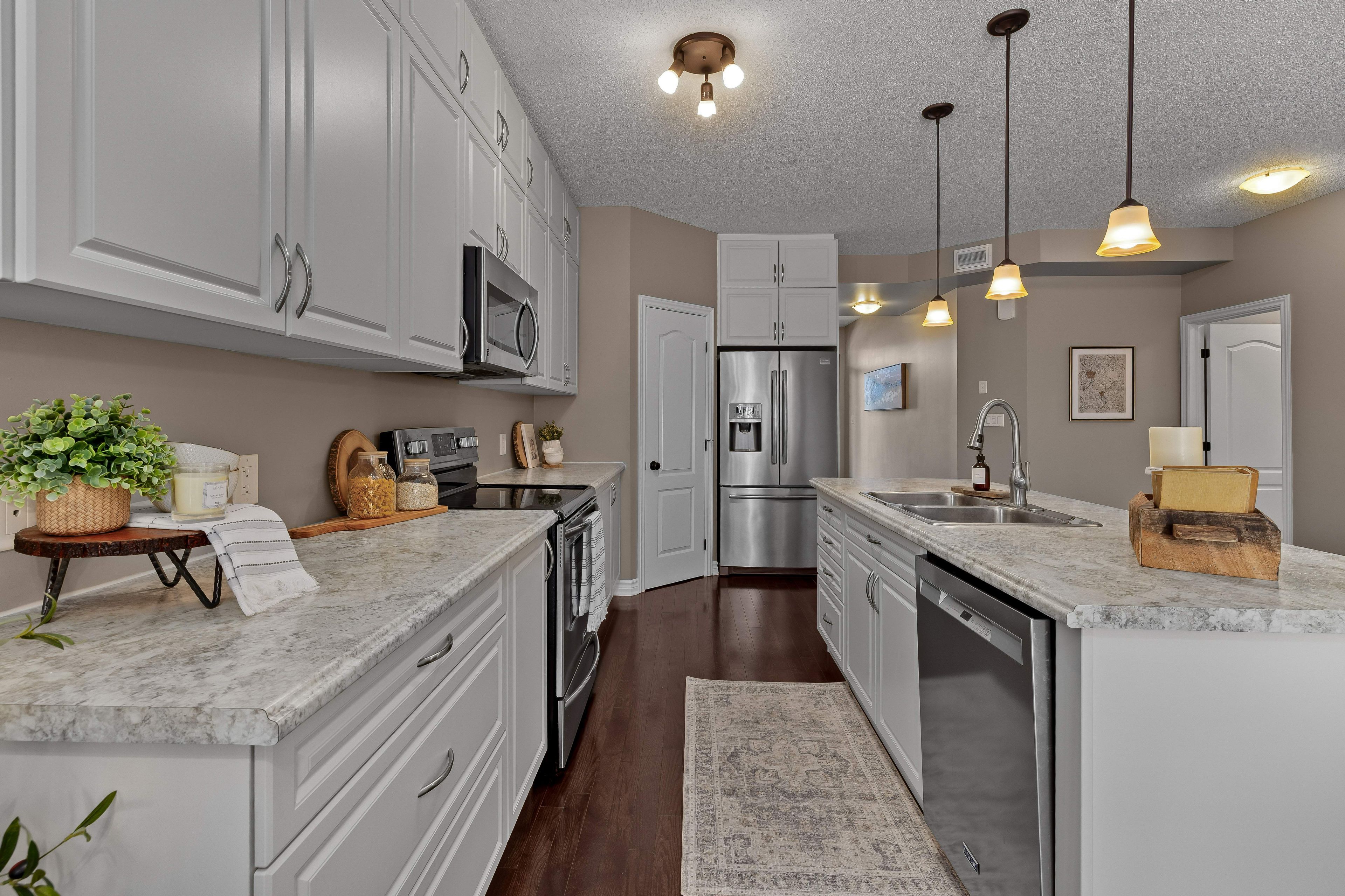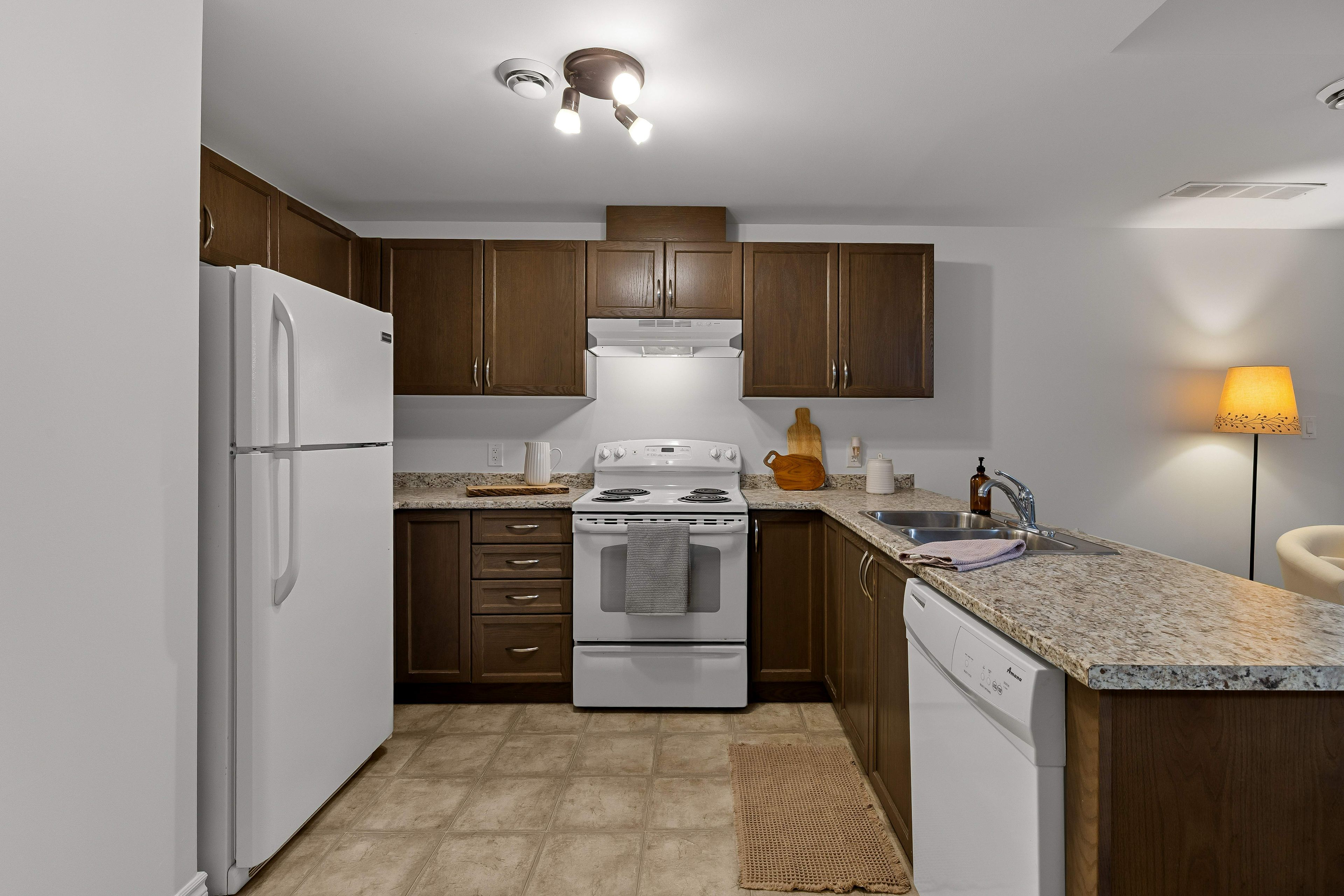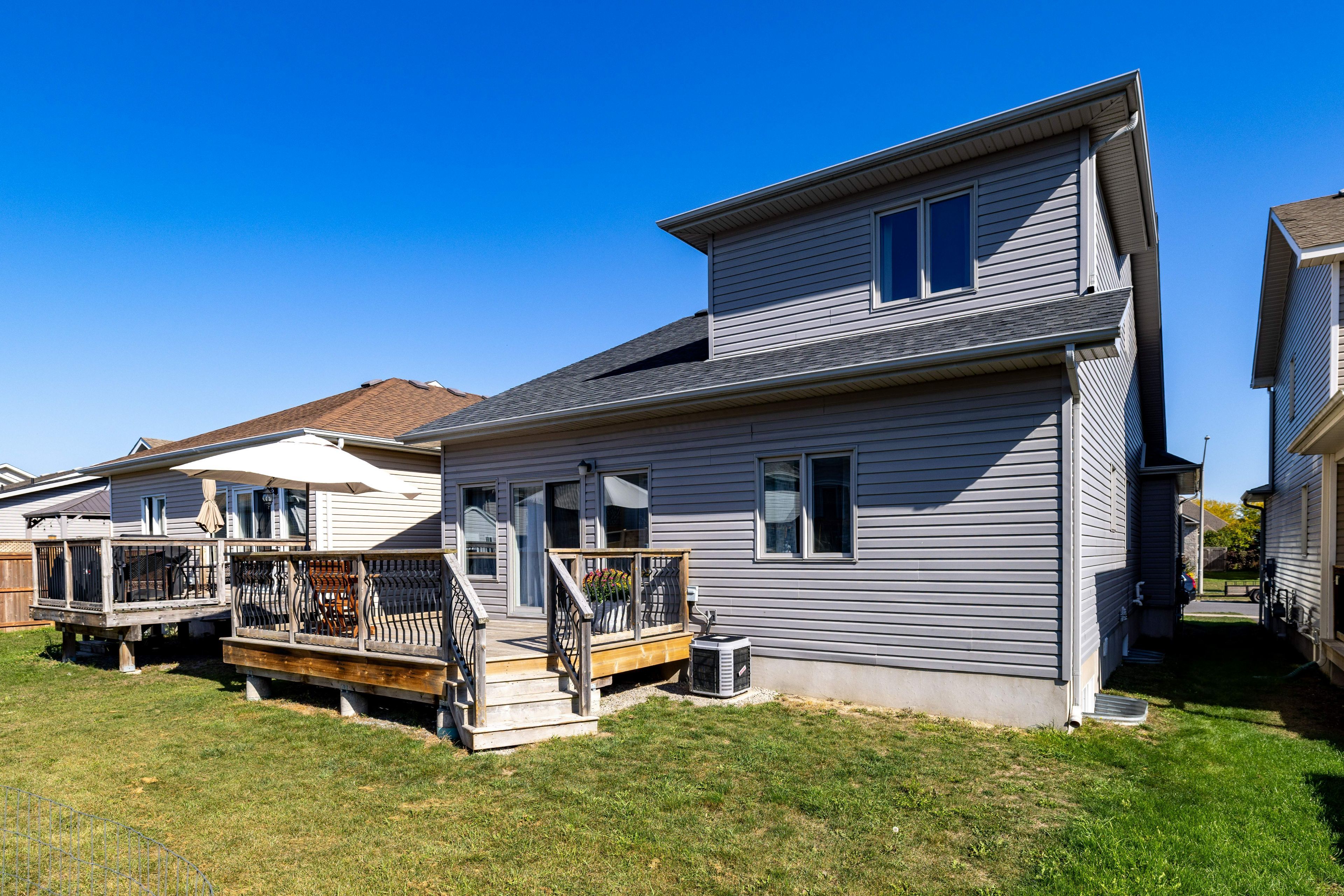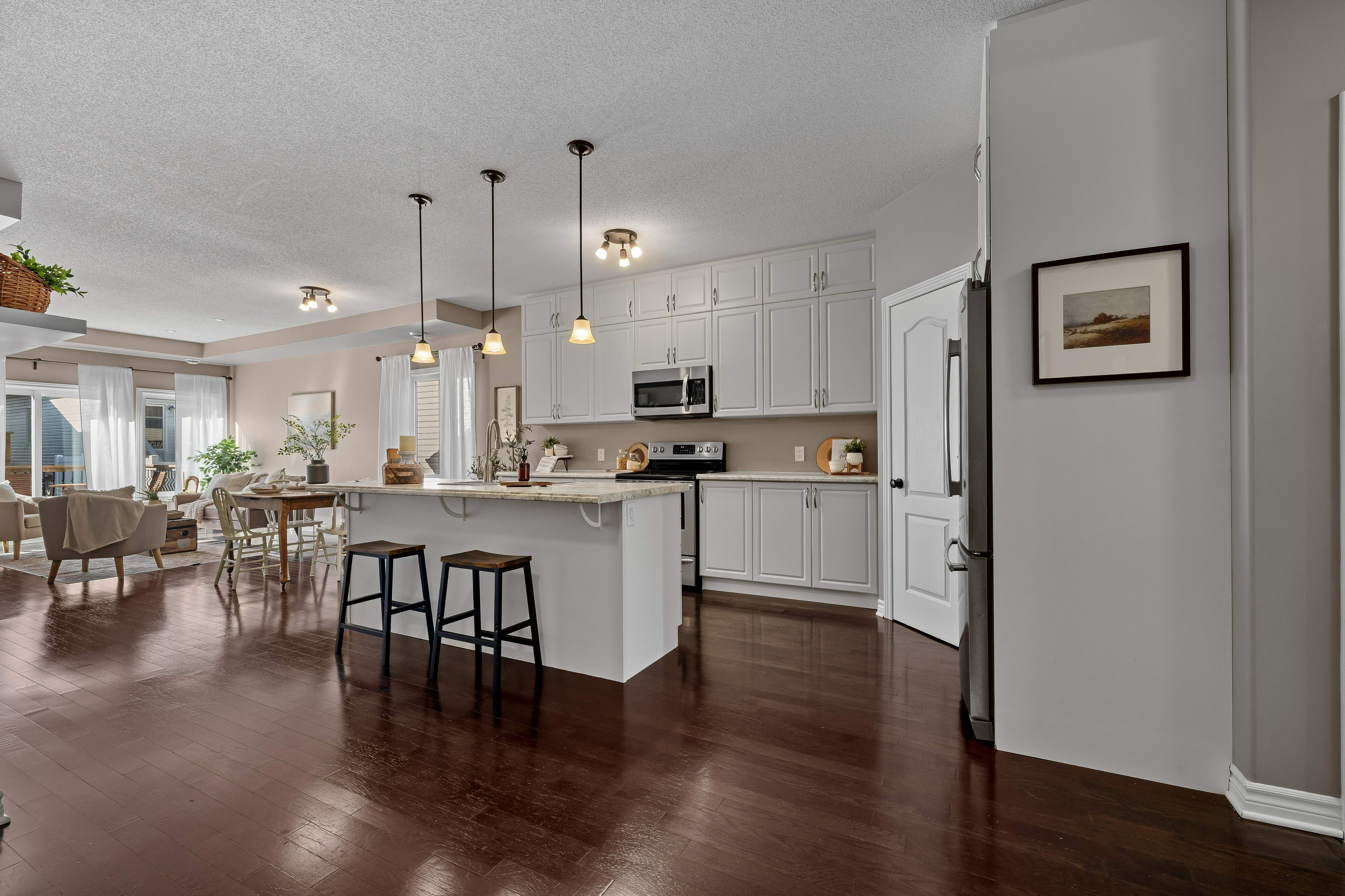 This exceptional one owner, detached bungaloft was built in 2014, offering flexibility, comfort, and income potential with a legal secondary suite in the lower level. Centrally located, close to shopping, transit, and with easy access to highway 401, this home is ideal for families or investors alike. The upper unit features a spacious and unique floor plan with 3 bedrooms and 2 full bathrooms, including a private primary suite on the second level complete with ensuite for added separation and tranquility. You'll also appreciate the new carpet on the stairs and in the primary suite, adding a fresh and cozy touch. The main floor offers an open-concept living and dining area, and a large upgraded kitchen with extended cabinetry to the ceiling, corner pantry, extra storage, and a large island perfect for gatherings and meal prep. Two additional bedrooms, a full bath, private laundry, and interior access to the double garage complete this level. An unfinished bonus room in the basement provides space for storage, a home gym, or future finishing. The lower-level apartment features its own separate entrance, 9-foot ceilings, two bedrooms, new flooring, fresh paint, and in-suite laundry. Each unit has its own furnace and full fire separation, ensuring comfort, safety, and independence for both occupants. The owner opted to add a fire door connecting the two units through the lower level so the option to connect the two spaces is optional. With flexible closing and all appliances included, this home is move-in ready and offers the perfect opportunity for multi-generational living or generating rental income.