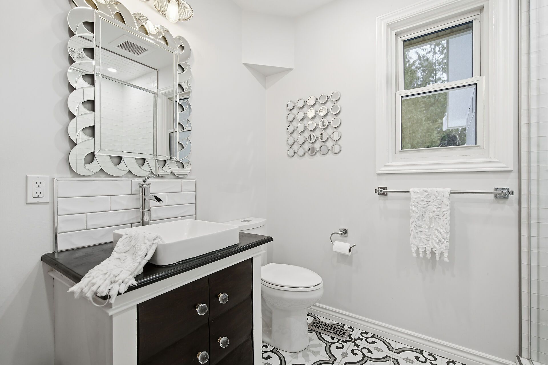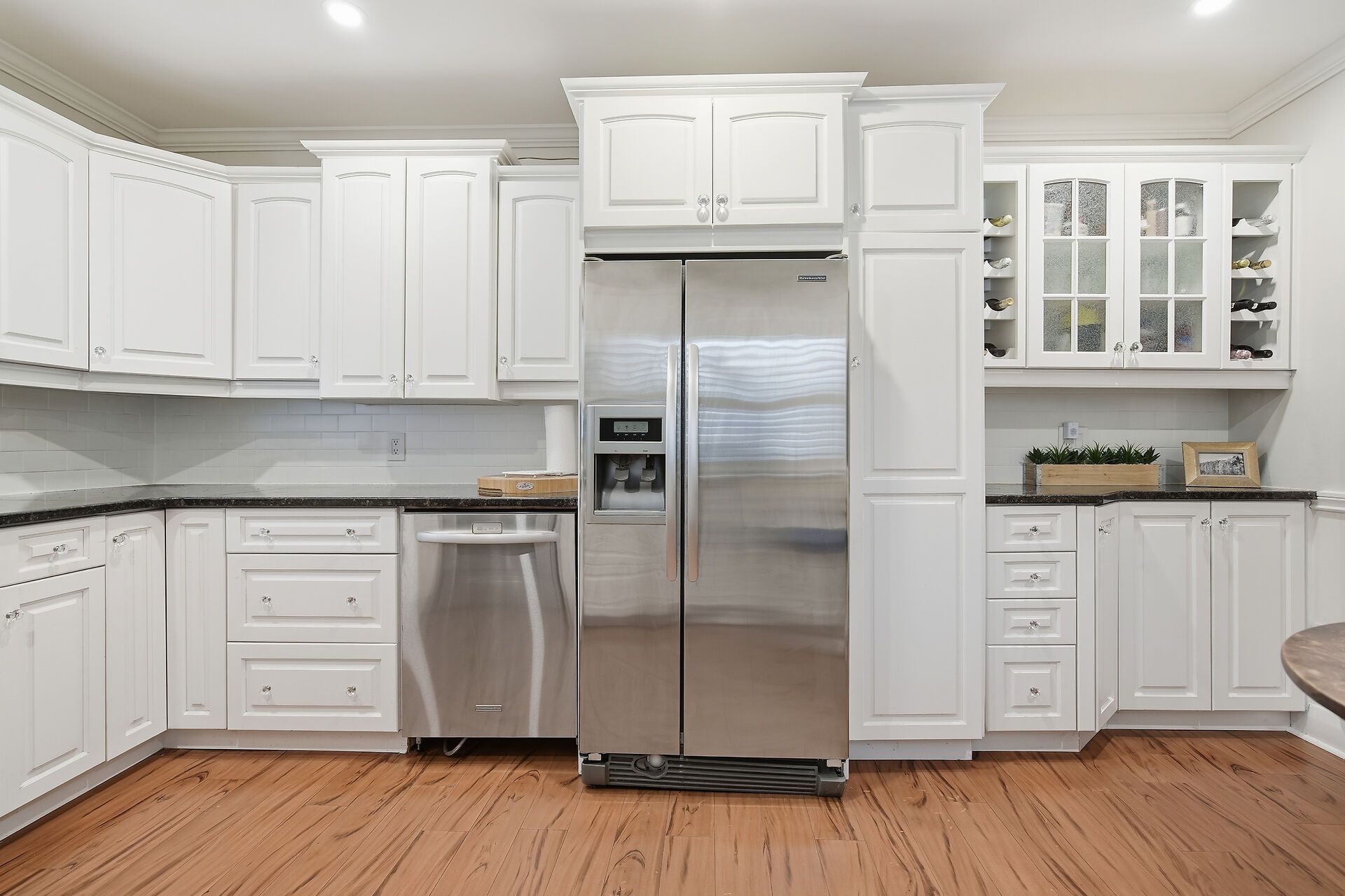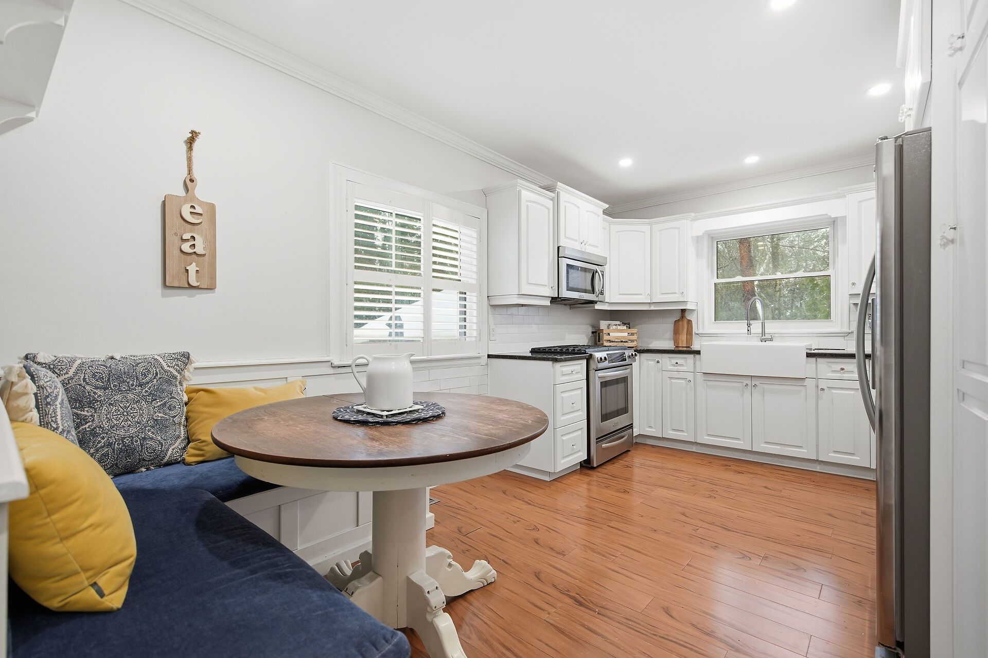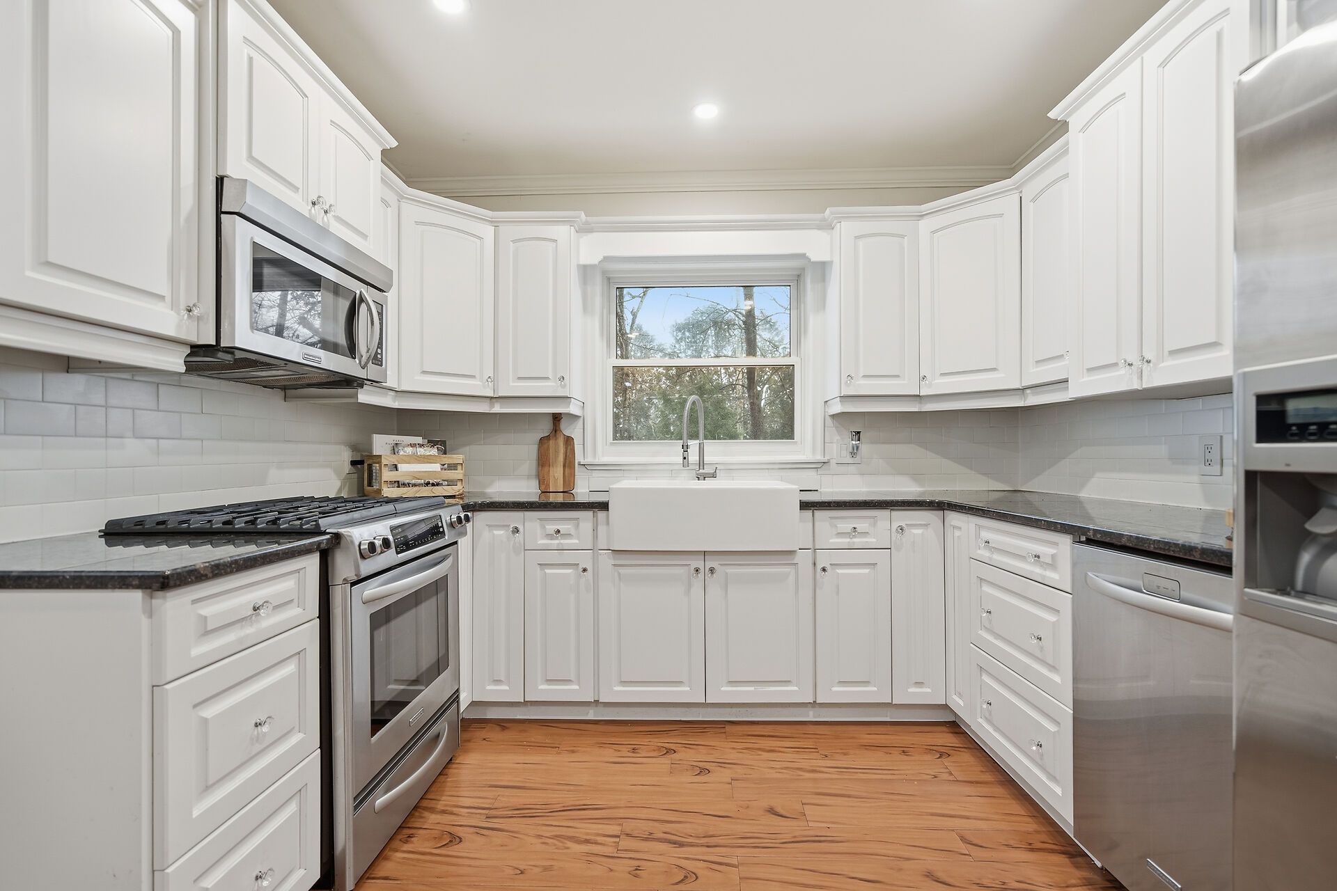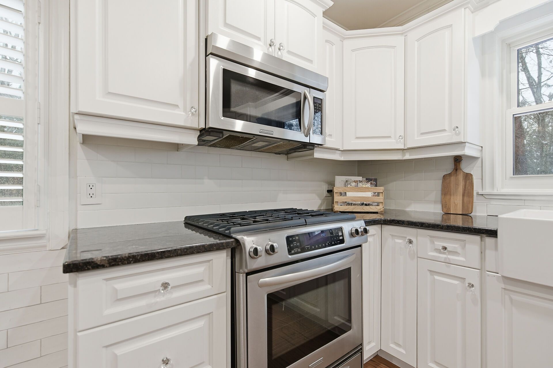 • Updated kitchen with granite counters and ample workspace.