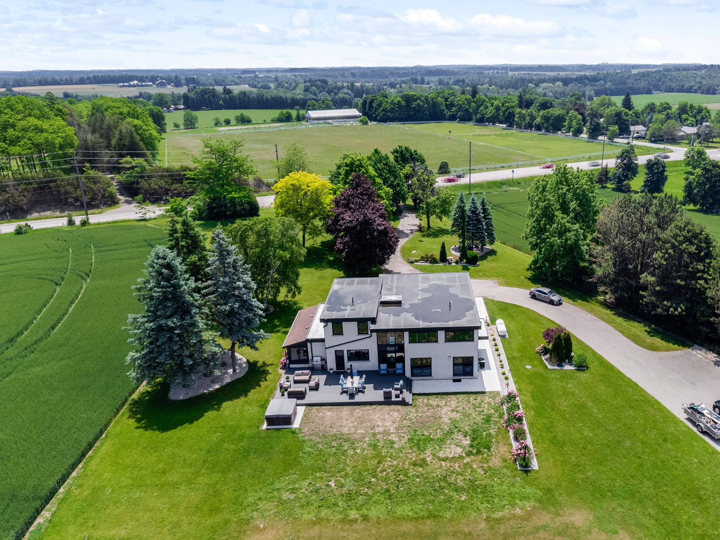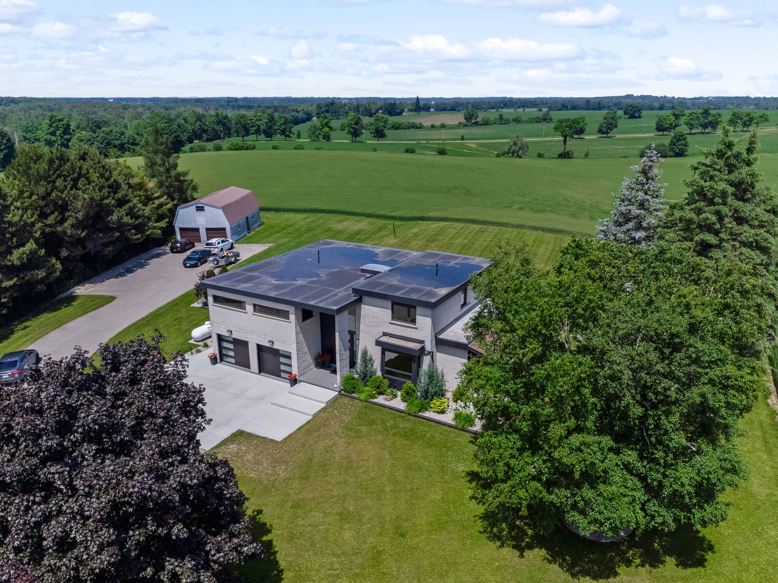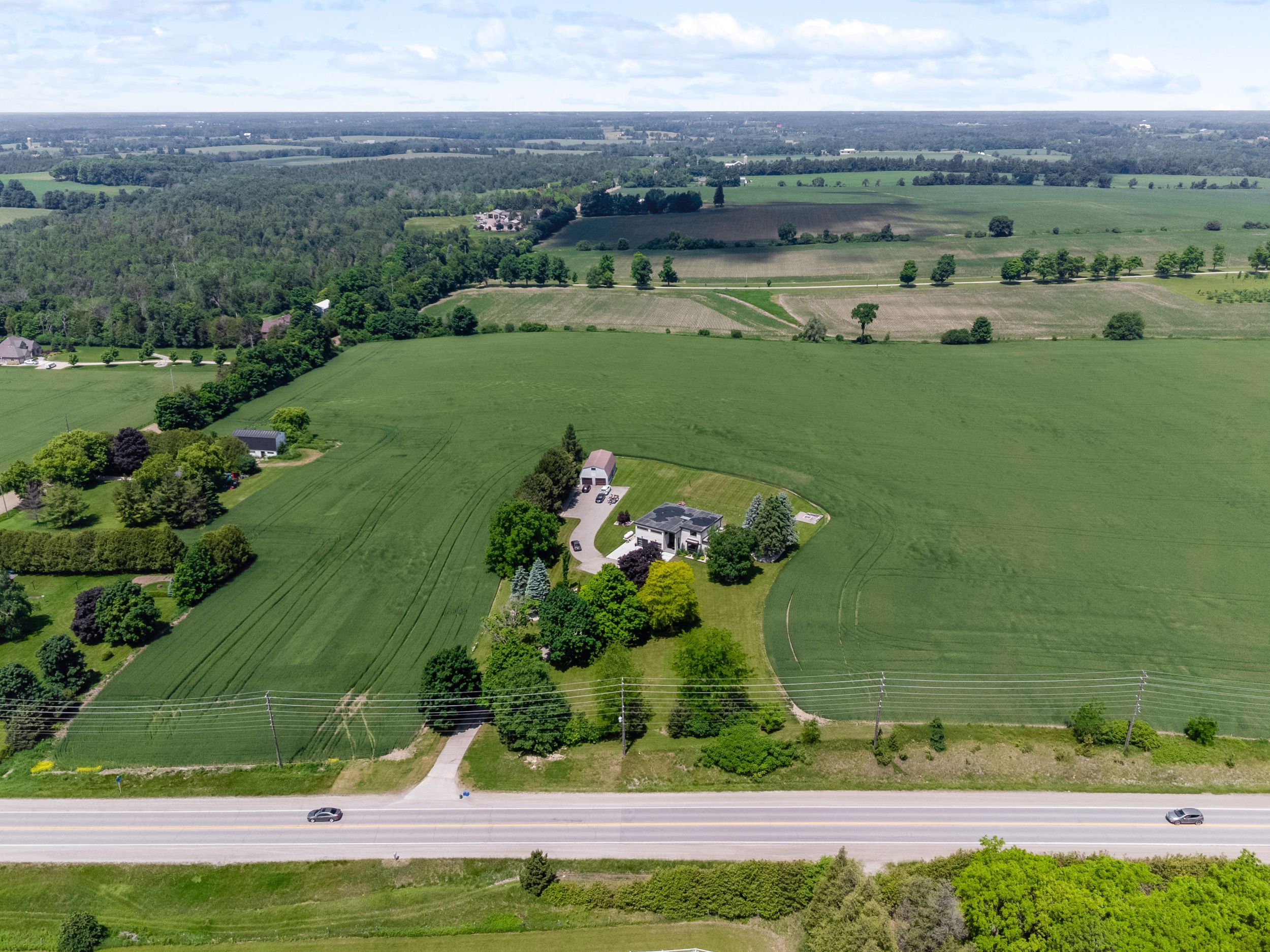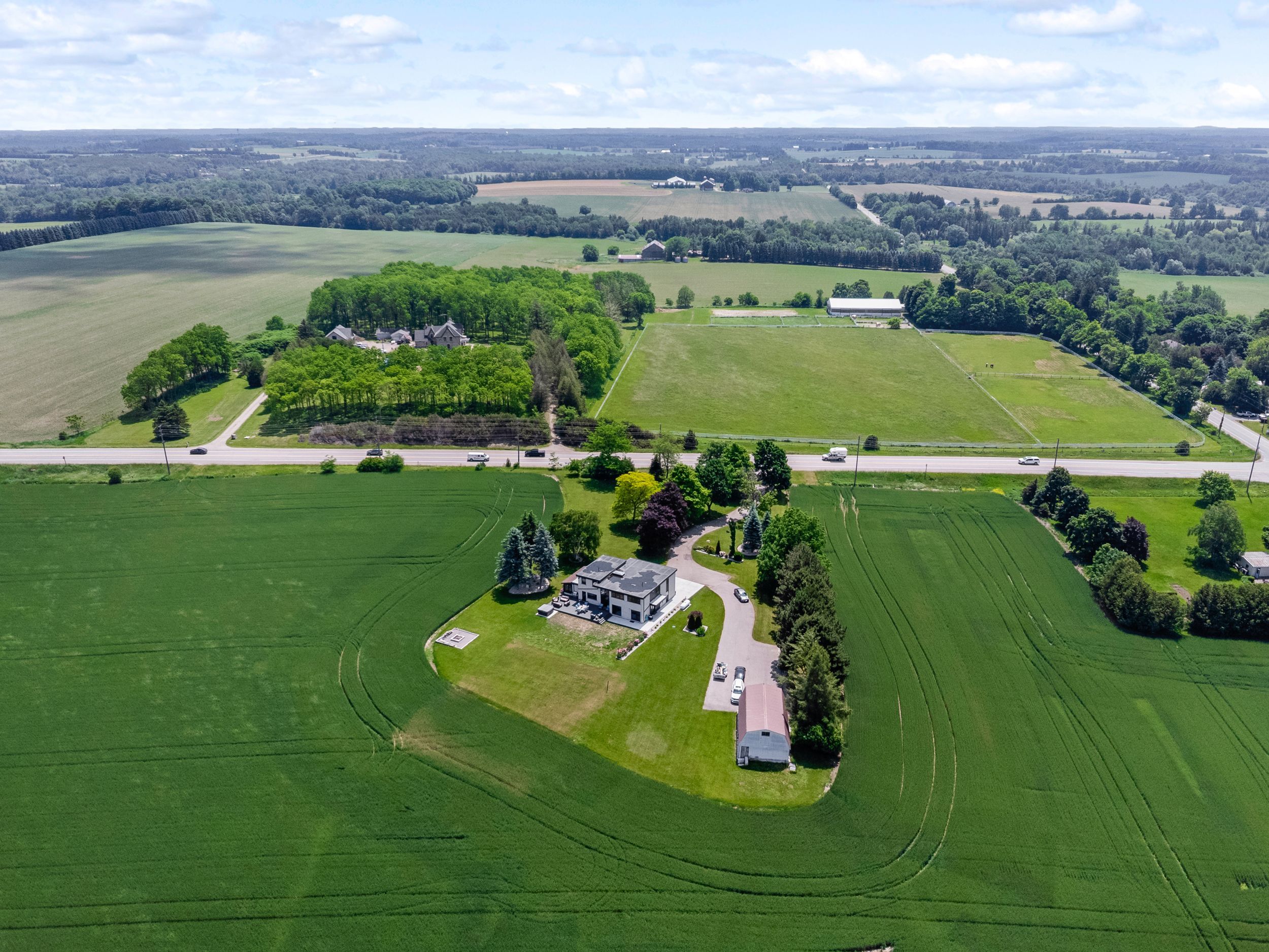 Welcome to 8312 wellington road 124 - not your average country property! Nestled on approximately 9. 75 acres stands this impressive 3600 sq. Ft completely renovated and updated family home. Split floor plan on the upper level - 3 large bedrooms with custom closets, large main bathroom and laundry room on one half and a primary retreat covers the rest with a fabulous ensuite - no storage issues here and a spacious custom walk-in closet. The main floor has fabulous space to spread out and entertain family and friends. Spacious dining room with plentiful windows and wide open views to host all your large gatherings. Prepare your feasts in the magnificent custom kitchen with high end bosch appliances, a 71/2 ft wide island, quartz countertops and storage for days! Relax in the cosy family room next to the fireplace which also contains a large walk-in coat closet and powder room. Need a home office - this home has that too! So many amazing things to enjoy living here. Everyday day you get to enjoy the calming expansive views, nature and privacy with so much room to entertain and plenty of space for the kids to run around. Enjoy happy hour on the oversized trex deck while taking in the spectacular sunset views . Big plus is you get to enjoy the peace, privacy and tranquility of country living yet your only 10 minutes to the city of guelph and all the conveniences of shopping, restaurants, nightlife and entertainment. Make your move to the fresh country air today!