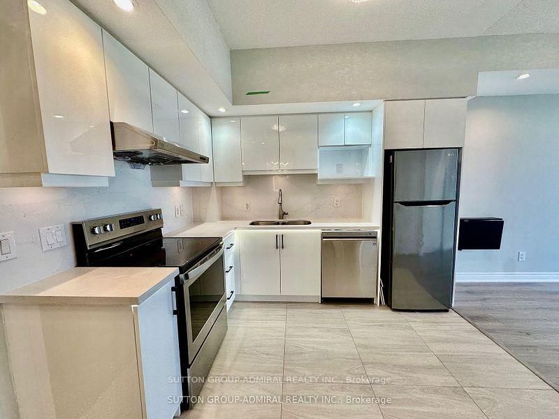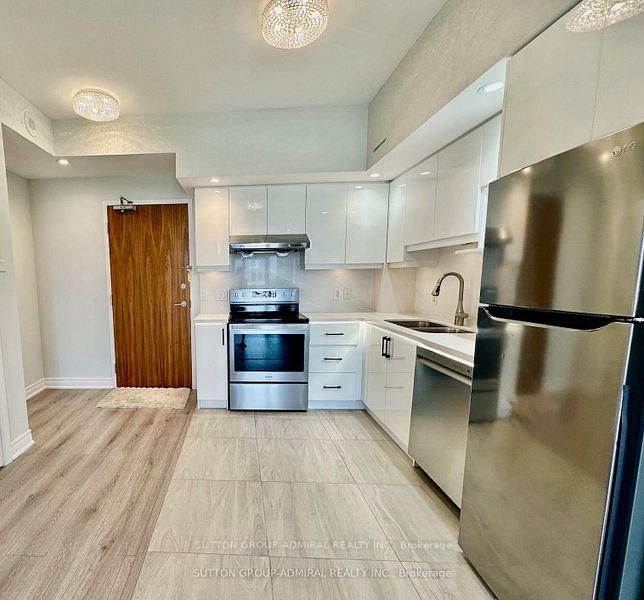 Welcome to this beautifully updated 1-bedroom condo at the residences of south unionville square, ideally located at the sought-after intersection of kennedy between highway 7 and 407. At lust under 600sgft, this unit offers the perfect combination of convenience and comfort, featuring a sleek kitchen with new contemporary cabinets, stainless steel appliances, and a stunning stone backsplash that seamlessly integrates with the countertops. The open concept living and dining area boasts brand new laminate flooring, creating a warm and inviting atmosphere throughout. Step out onto your private balcony and enjoy tranquil views of the terrace-perfect for morning coffee or evening relaxation. The renovated bathroom showcases modern finishes. Newer washer and dryer. With its updated features, prime location (easy access to major highways, public transit, and nearby business hubs), the mixed-use complex features residential, office, and retail spaces, makes it ideal for both living and working. It's in a family-friendly area with top schools, parks, amenities like shopping, dining, and recreational options, and serene balcony view, this condo is an ideal opportunity for first-time buyers, downsizers, or anyone seeking a move-in-ready home. Don't miss out on this gem.