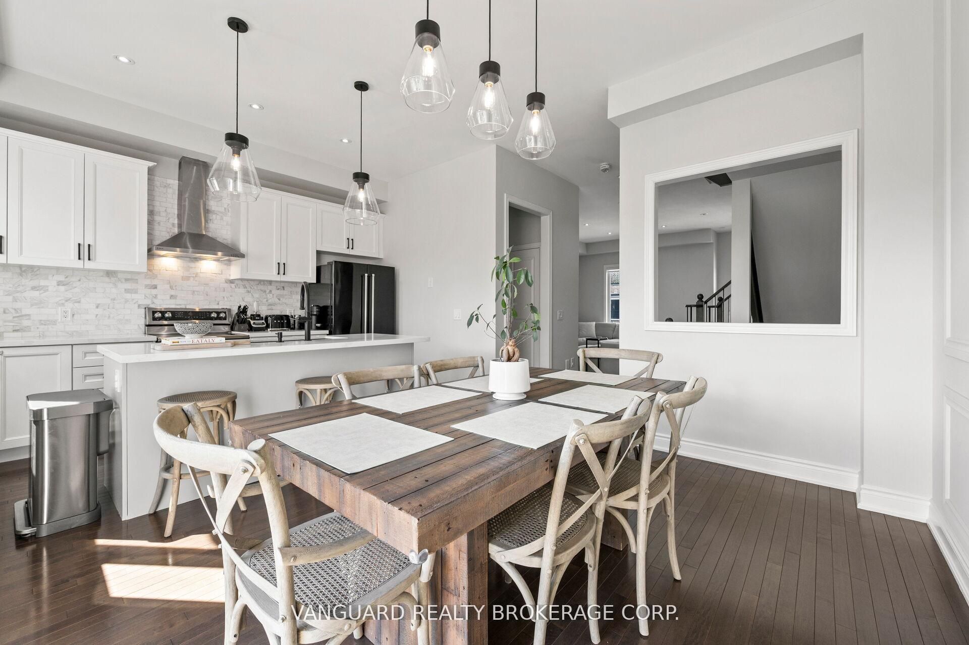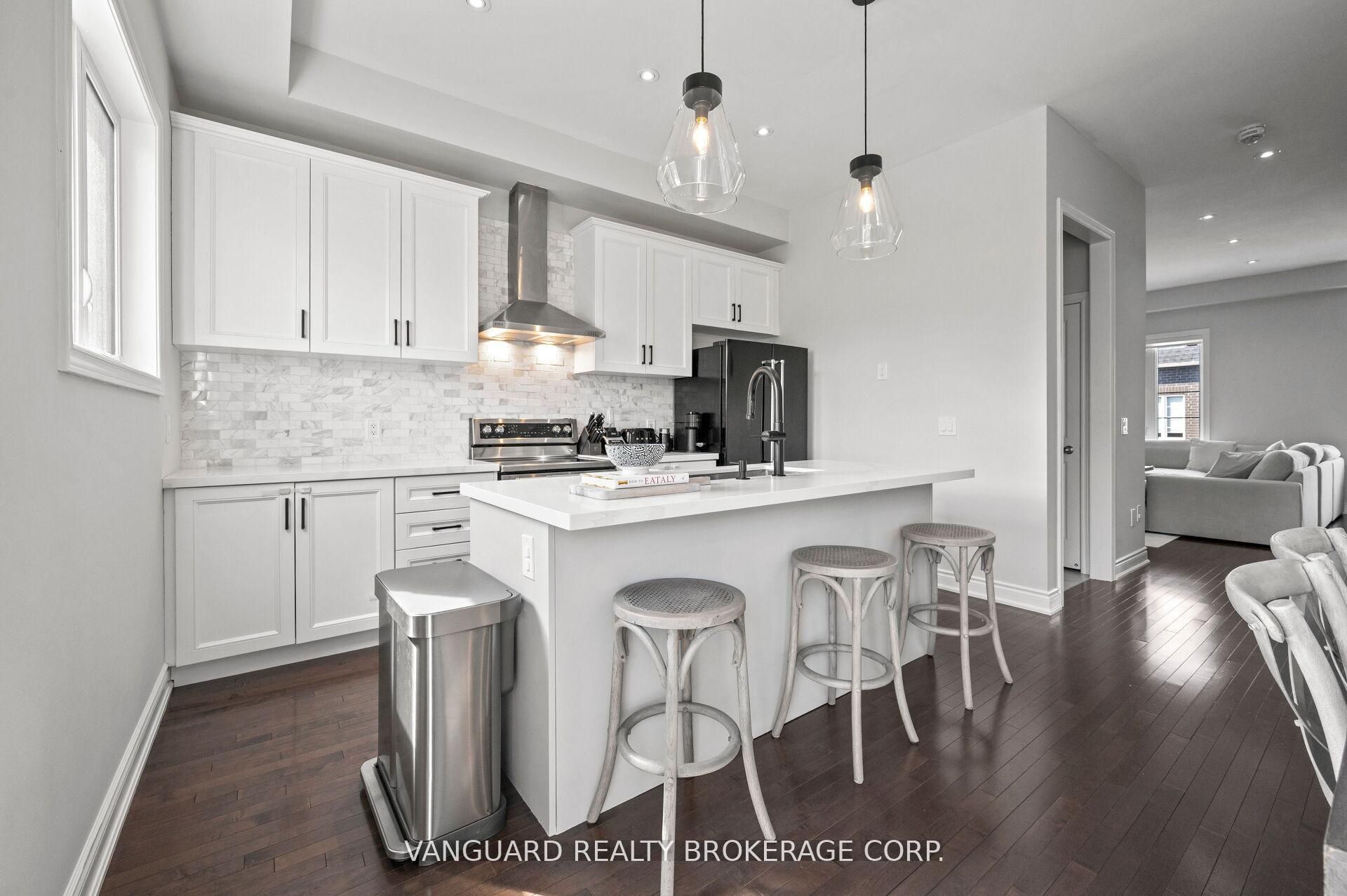 Welcome to 8331 islington ave, located in sought-after islington woods. Situated on a rare ravine lot, this beautifully maintained 3-bedroom, 5-bathroom townhome offers elegant living space with impressive 10-ft ceilings on the main floor and 9-ft ceilings on the second. The gourmet kitchen features quartz countertops, a marble backsplash, extended upper cabinetry, and stainless steel appliances, seamlessly flowing into the open-concept dining area with a walk-out to a private balcony. Hardwood flooring, pot lights, and custom millwork add warmth and sophistication throughout. The spacious primary bedroom offers hardwood floors, a 4-piece ensuite, and its own walk-out balcony. Additional bedrooms are bright and generously sized. The walk-out basement provides added living space and flexibility, leading to a fully fenced yard, with convenient access to the garage from inside the home. Ideally located just minutes from the amenities of vaughan downtown, this exceptional home is perfect for buyers seeking style, comfort, and location.