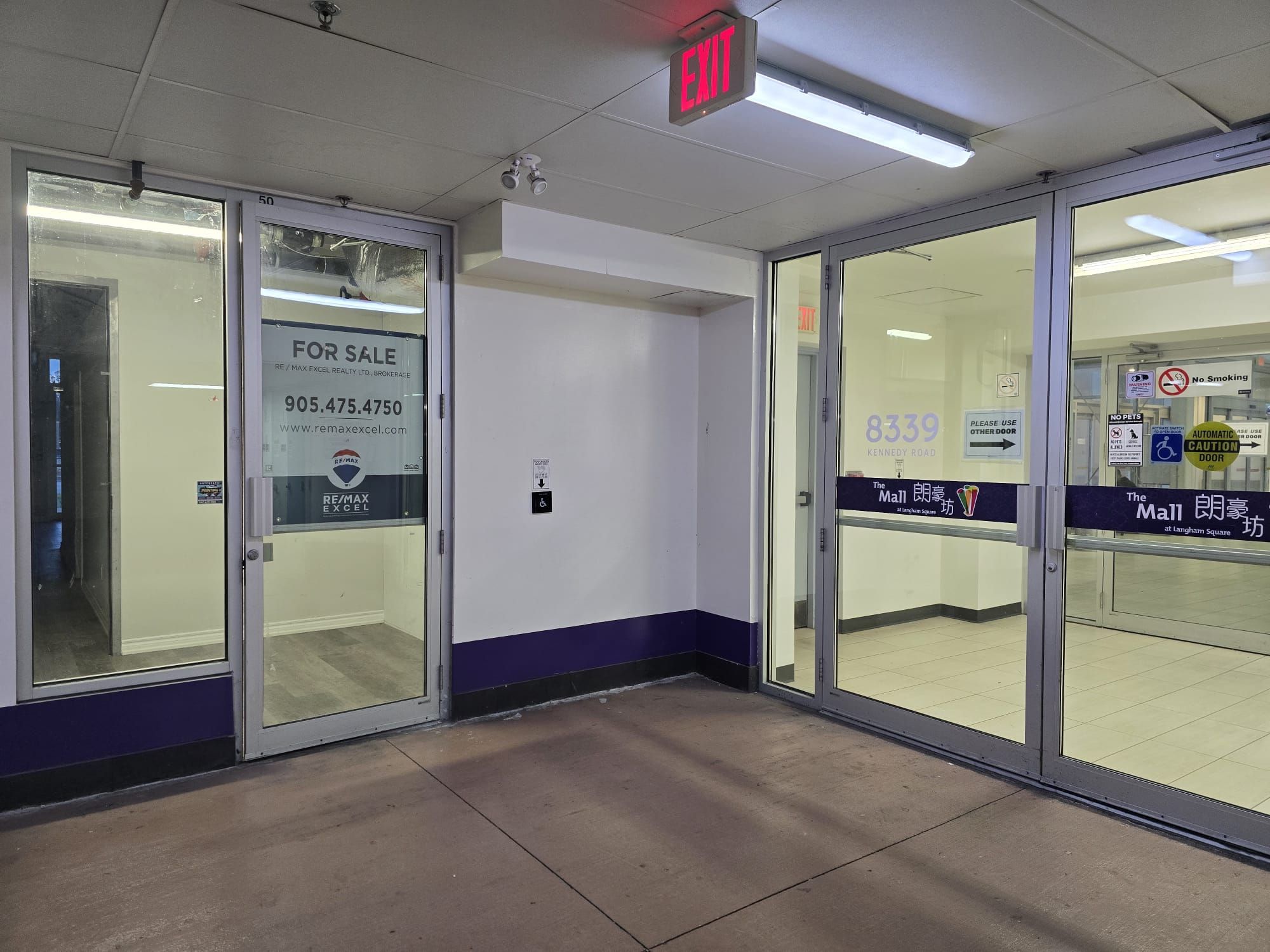 Prime ground-floor commercial units at langham square - unionville (facing kennedy rd). Exceptional opportunity to own two combined ground-floor units located by the main mall entrance at langham square. Total gross area: 698 + 264 sq ft, net area: approx. 867 sq ft. Steps from t&t supermarket, close to public transit, across new kennedy square, surrounded by strong residential and commercial demand. Ideal uses for food or café, dental, medical office, spa, travel agency, insurance office, courier service & pick-up, student/internet lounge, and many other retail or professional uses.