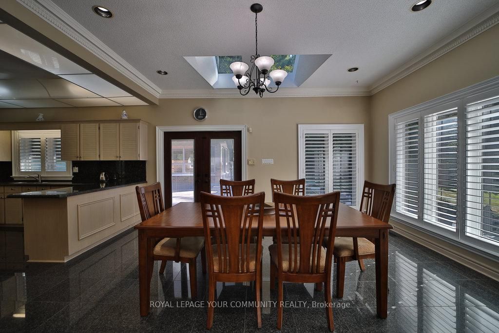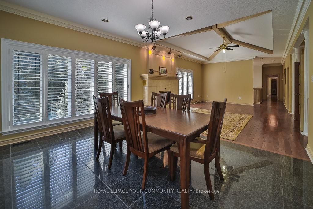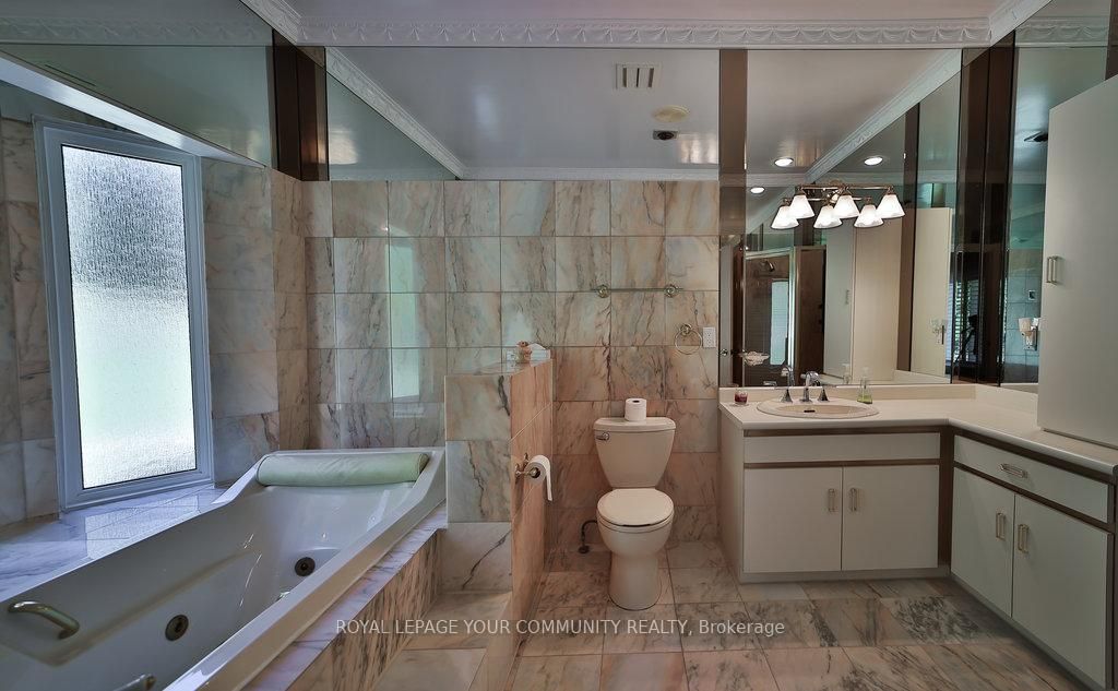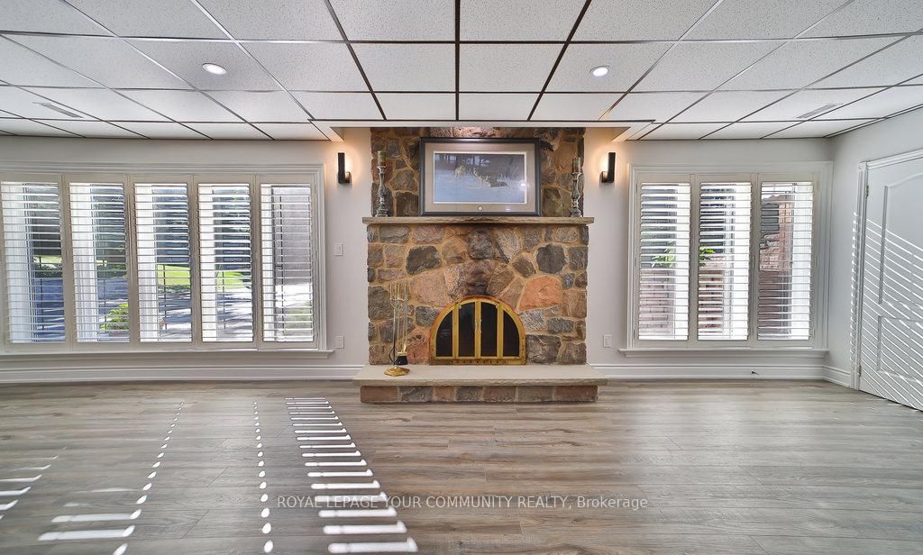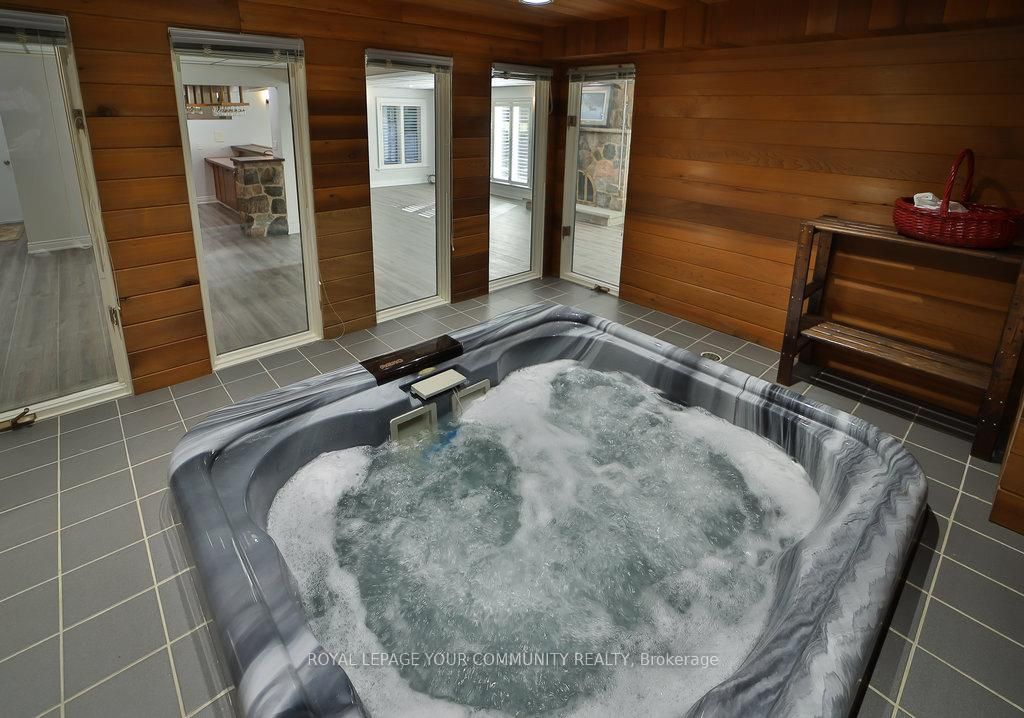 Gorgeous spacious raised bungalow nestled amongst towering trees on beautiful private & peaceful 25 acres backing onto conservation area. Over 5800 sq. Ft. Of living space. Lovely home with large living room with wood burning marble fireplace, cathedral ceilings, open to separate dining room and to entertainers sized kitchen with island, granite floor and walk-out to an oversized deck 33x35 ft. And a gaxebo 21. 5 x 12 ft. With 2 end doors, all thermal windows and ceramic floor. Full ensuite with jacuzzi marble floors and walls. High-quality thermal windows with spectacular views of the amazingly beautiful property. Hardwood throughout. Large foyer with marble floors. 4 large bedrooms 2 in lower. Lower level features a beautiful flagstone wet bar/kitchen open to large family room 39. 6x31 ft. Above grade family room w/marble fireplace. Entertainers delight spa room, sauna, his & hers change rooms & shower. An entertainer's dream and fantastic in-law setup. Cold/storage & electrical rooms.