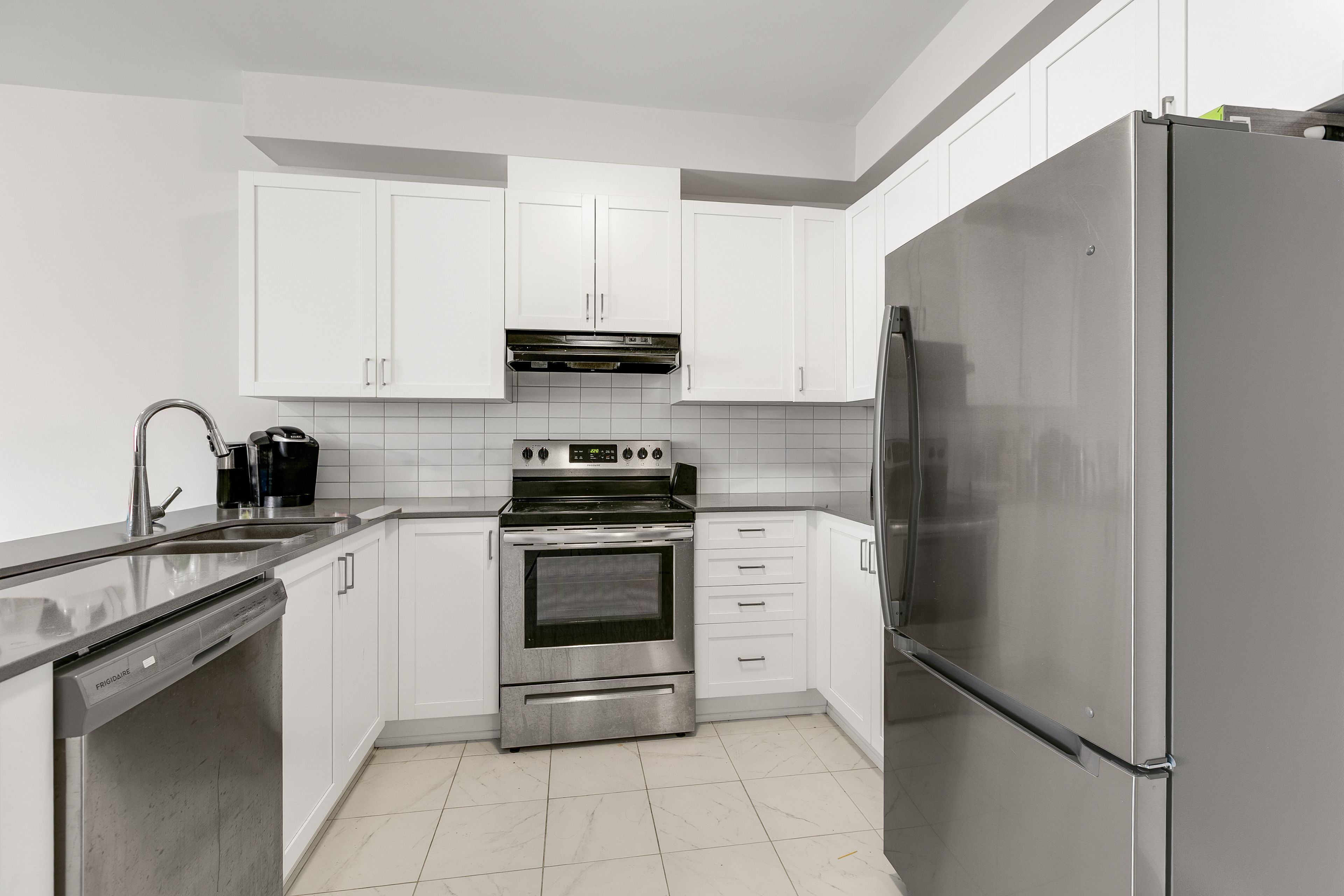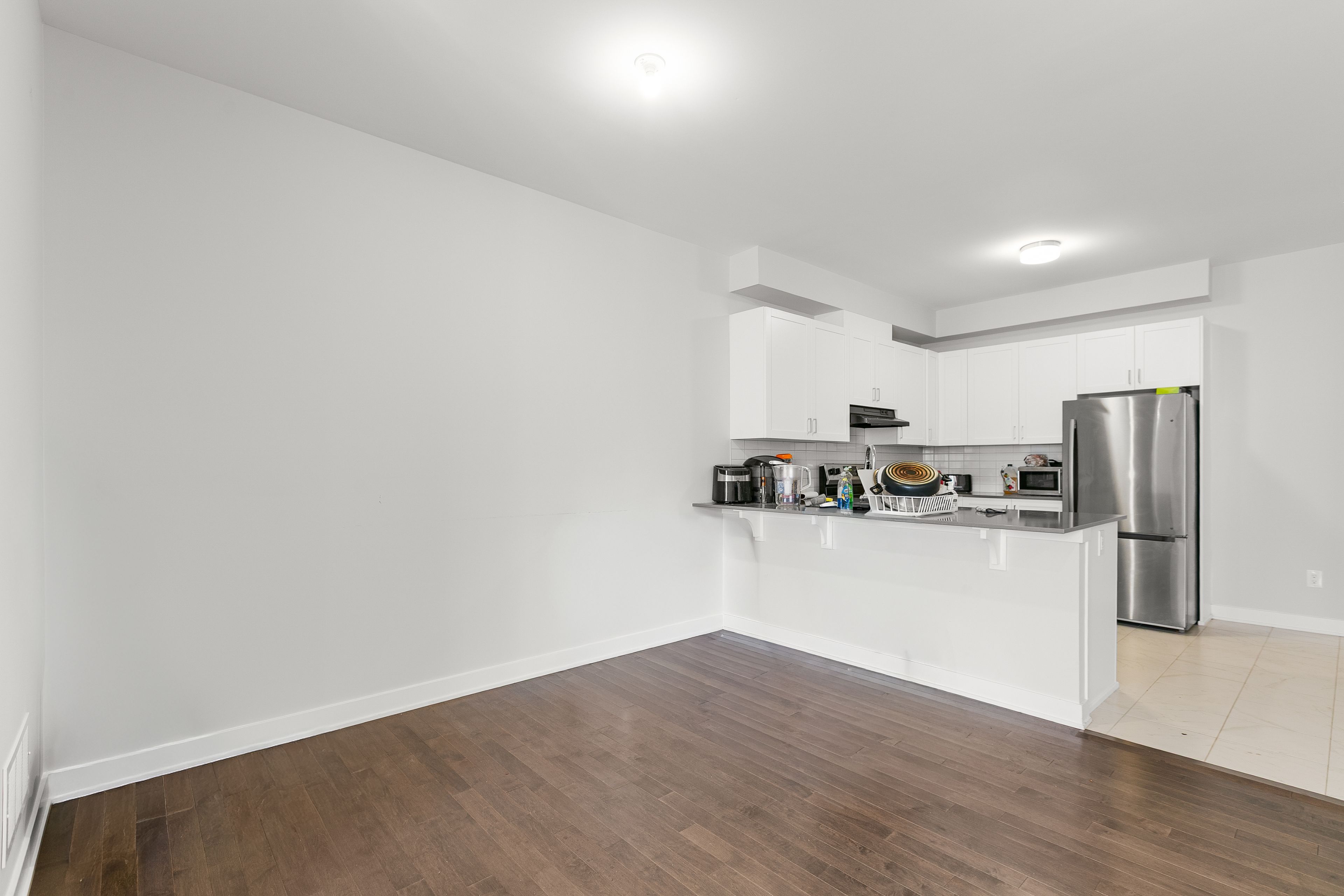• Elegant hardwood floors and modern kitchen with quartz countertops.