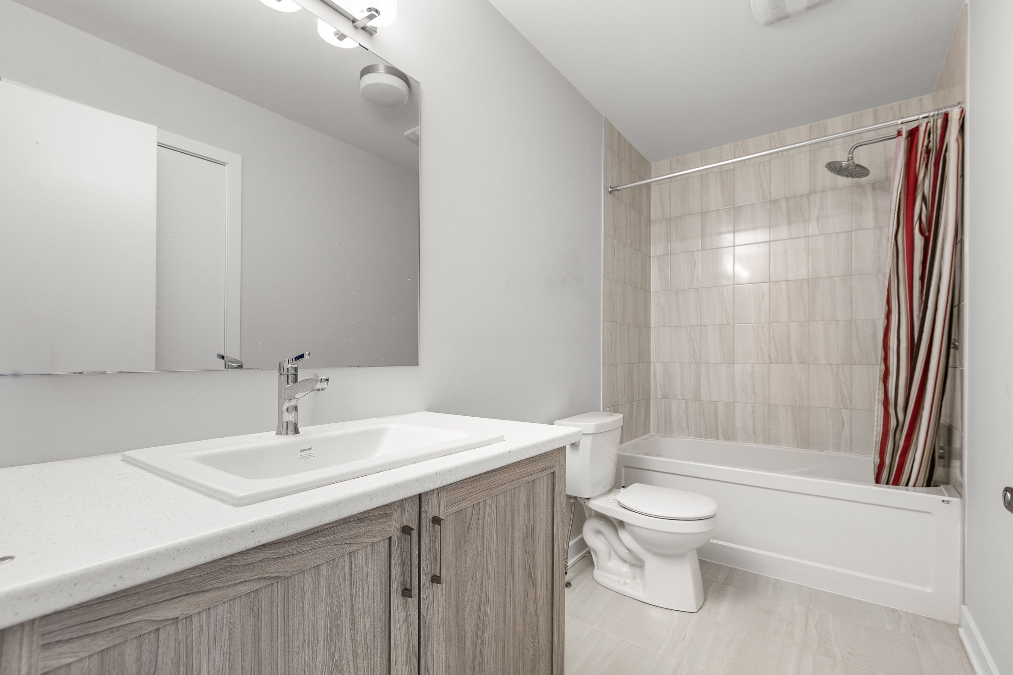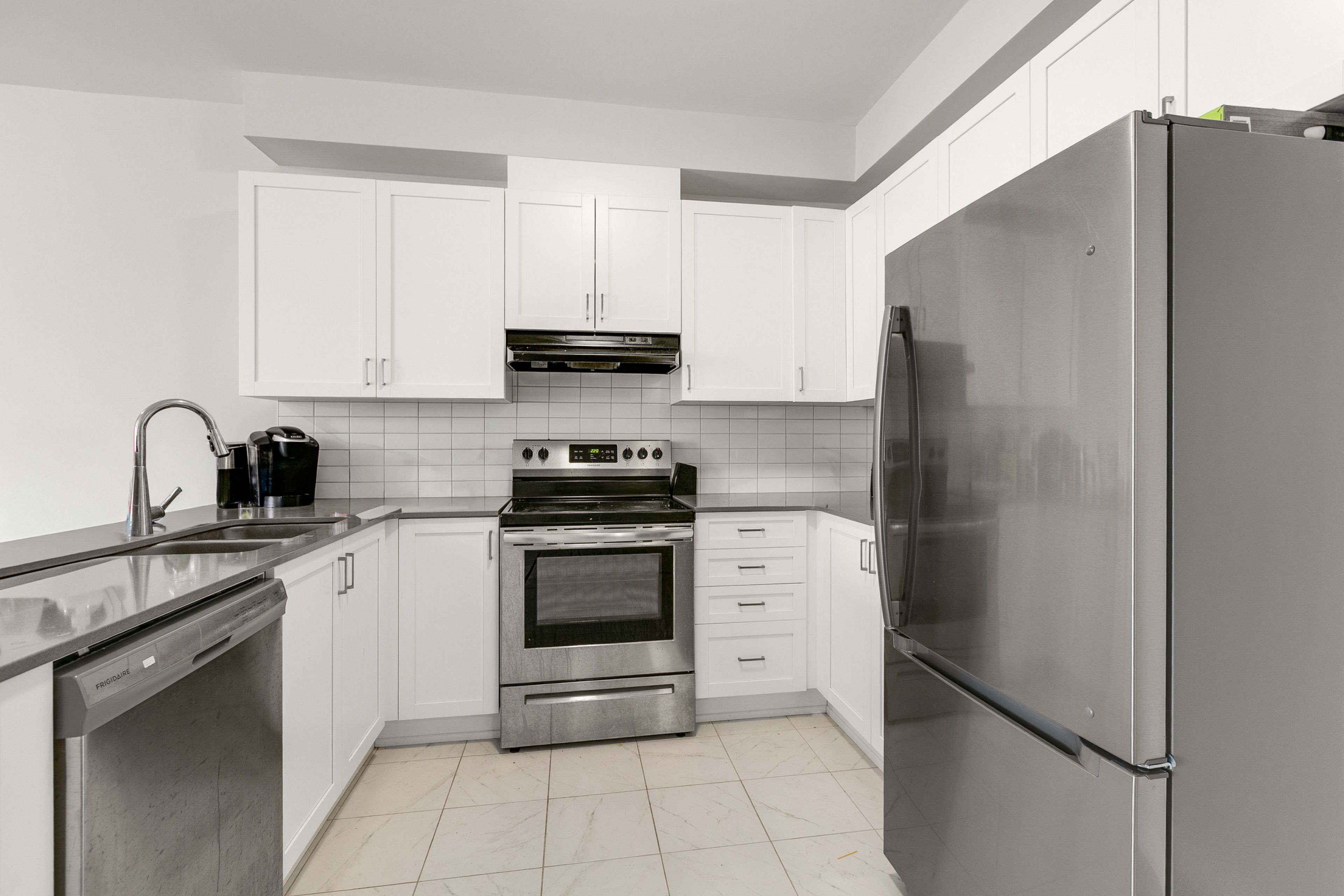 • Stylish hardwood floors and modern kitchen with quartz countertops and stainless steel appliances.