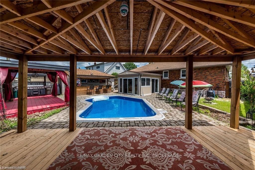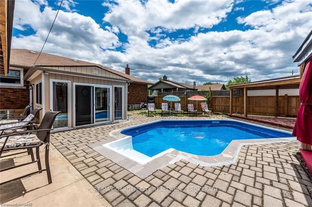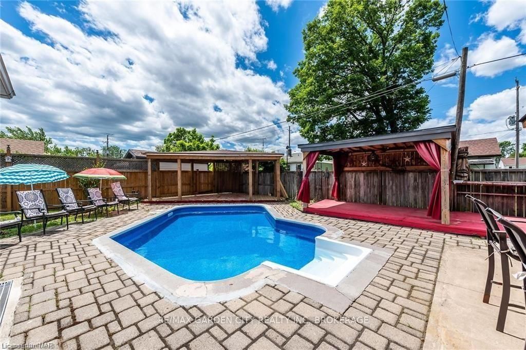 Welcome home to 834 david street, 3 bedroom/1 bathroom bungalow upper unit in welland. The upper unit home is located within a quiet family-friendly neighborhood. This adorable solid brick bungalow has been modernized & renovated and it sits on large lot, with a newer kitchen, laundry, engineered hardwood flooring, ceramic flooring, pot lights and more. As you enter, you are immediately welcomed by the bright living room & kitchen, with large windows allowing for an abundance of natural light. The spacious living room, with a floor to ceiling feature wall complete with an opening for your electric fireplace, is a perfect home for hosting every occasion. The bright beautiful eat in kitchen has plenty of space & storage, complete with a dishwasher. Laundry; included is a stackable washer & dryer conveniently tucked away in a laundry closet, within the 4pc bathroom. There are three sizeable bedrooms, two of the bedrooms have large picture windows, the third bedroom has dbl windows, all bringing in an abundance of bright natural lighting. Step out to your large fully fenced, backyard oasis. Featuring a patio, 2 gazebos, grass area and plenty of room to stretch out oh did i mention the in-ground pool!! Yes, an in-ground pool for the upper unit to enjoy exclusively, set up your chairs & book your staycation asap! The utilities are split with the lower unit. There is driveway parking for 2 cars, along with plenty of street parking. This home is situated in the perfect location of town. Short walk/drive, close to all needed amenities, including; variety of great schools, public library, playgrounds, local shopping plazas, hospital, restaurants, parks, hiking trails, welland canals (both old & new), public transportation, 8 minute drive to hwy. 406. This home is waiting for you... Book an appt to view today!
