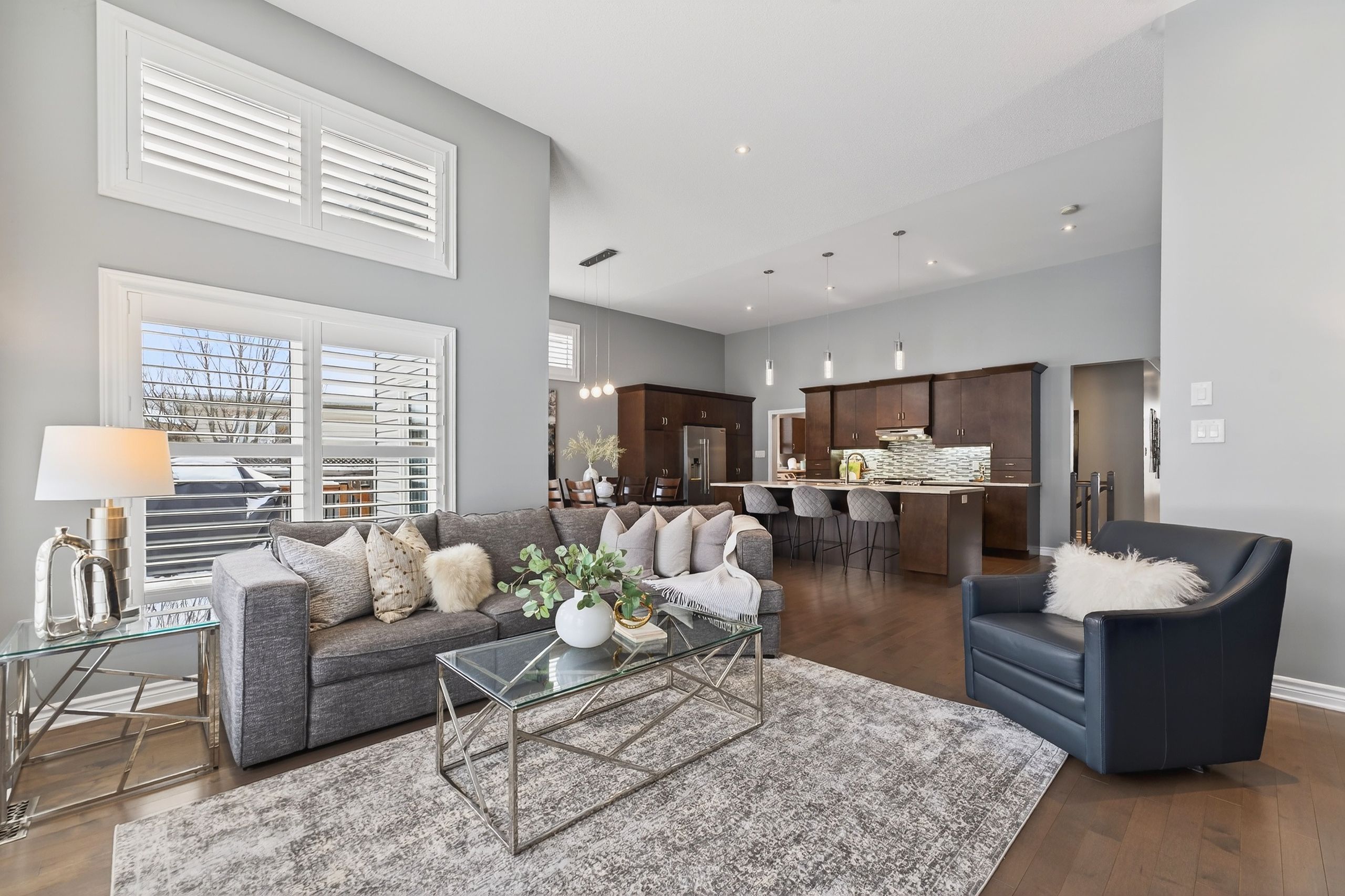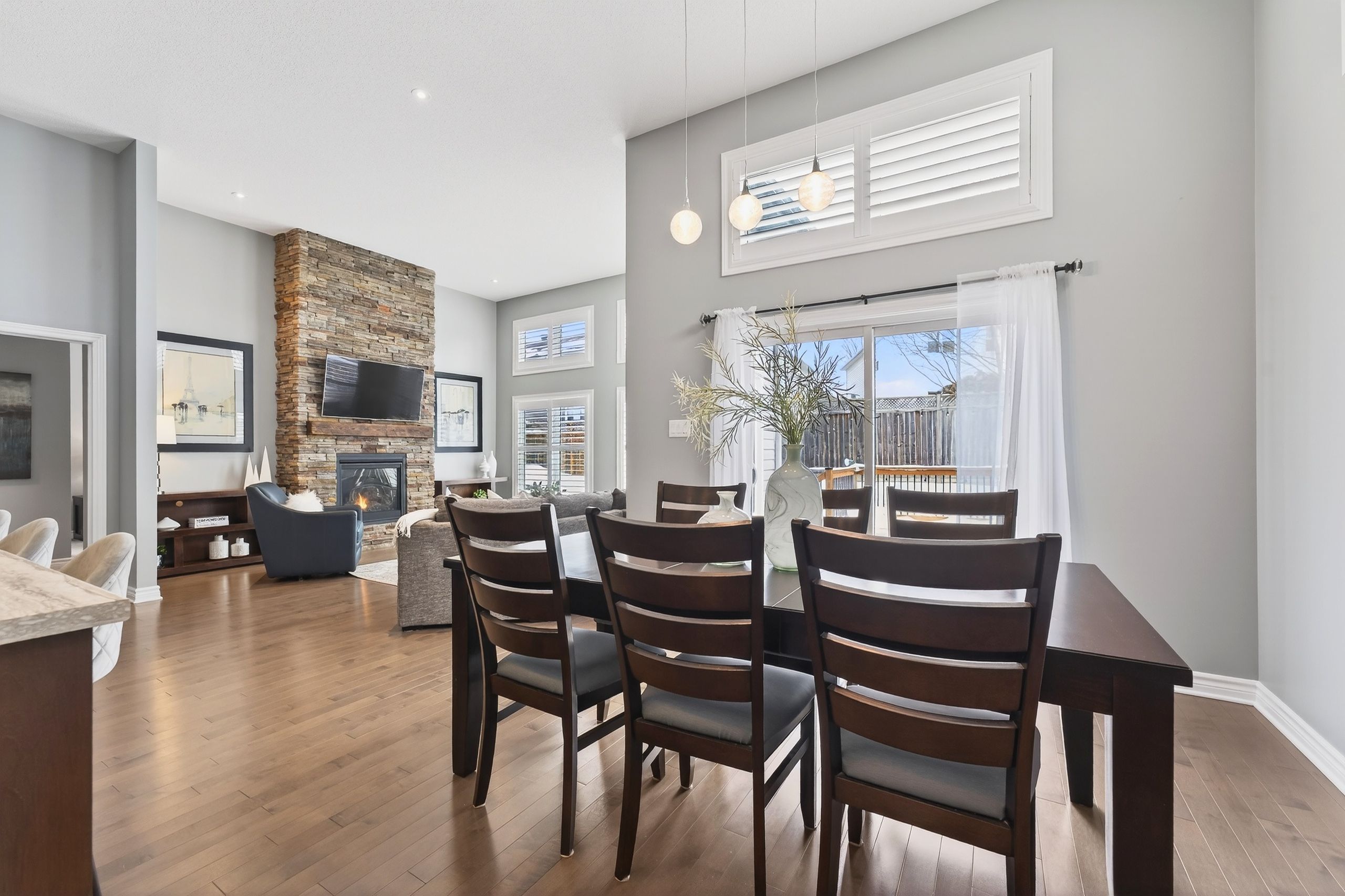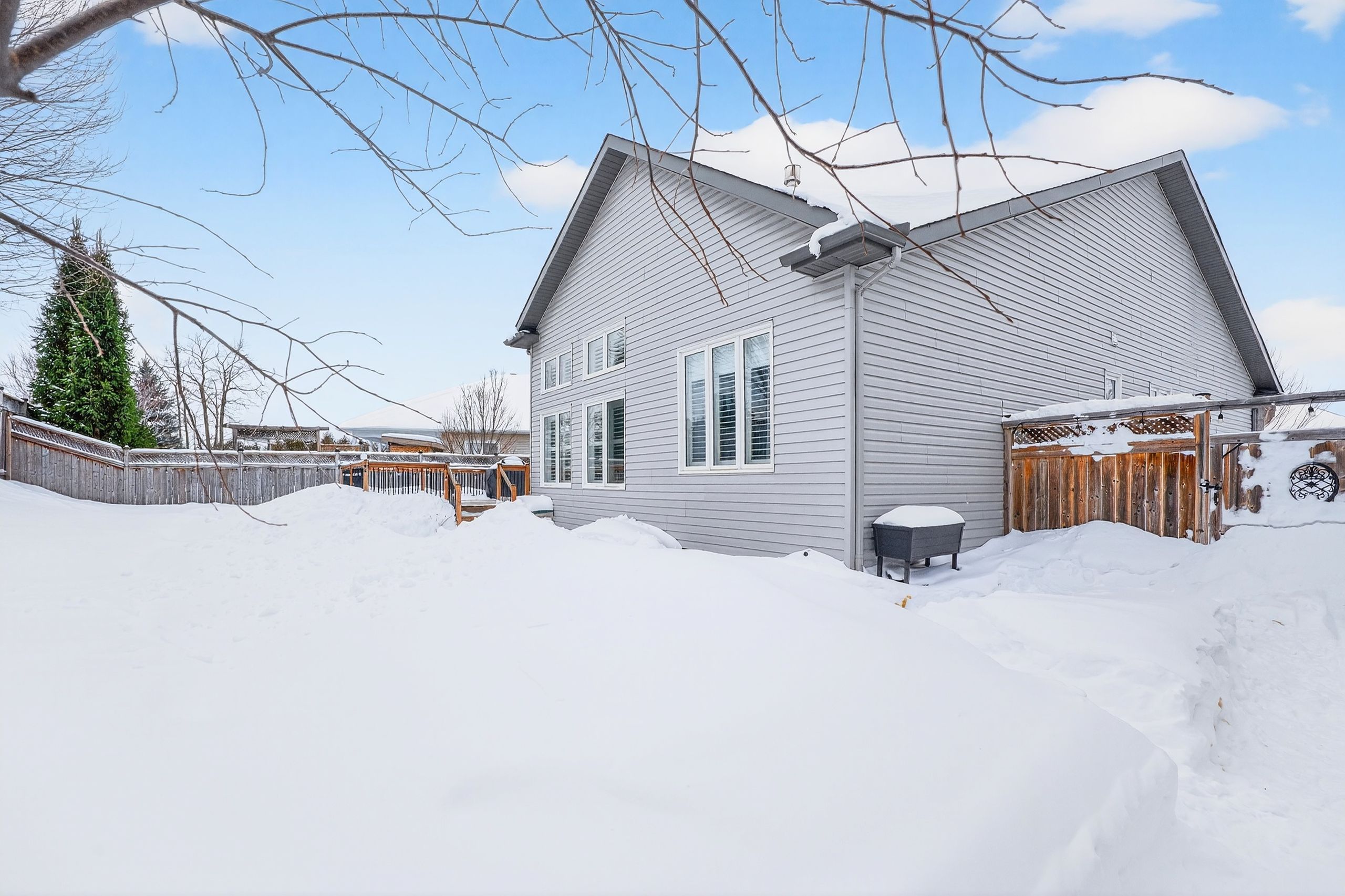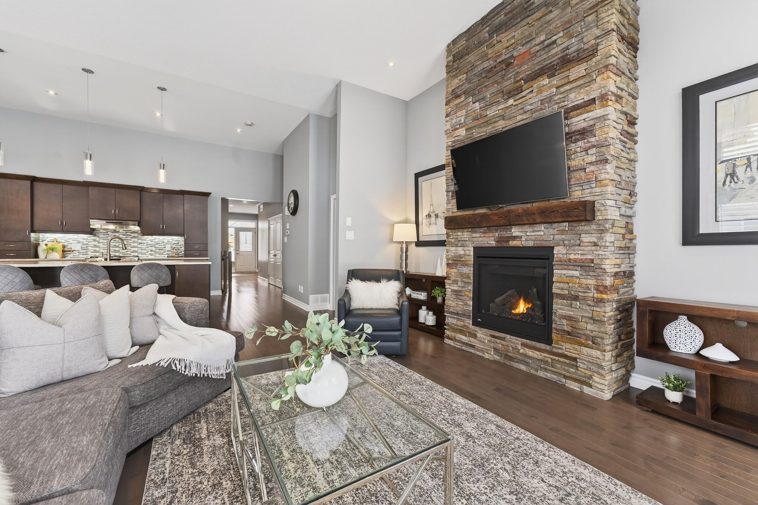 Welcome to 834 rockson crescent - a highly sought-after custom-built metric home offering 3+1 bedrooms and 3 full bathrooms, thoughtfully designed for both comfort and style. From the moment you enter, you're greeted by a bright and inviting foyer with tiled flooring that transitions seamlessly into rich hardwood throughout the main living space. Soaring 12-foot cathedral ceilings create an airy, open atmosphere that enhances the home's natural light and architectural presence. The open-concept kitchen and living area is beautifully appointed with elegant window shutters, a striking natural gas stone fireplace, and a functional island with abundant counter space. A rare oversized walk-in pantry provides exceptional storage and everyday convenience. The main level also features convenient laundry, inside access to the garage, neutral tones throughout, two linen closets, and three generously sized bedrooms. The serene primary retreat offers 9-foot ceilings, a walk-in closet, and a spa-inspired ensuite complete with double sinks, a spacious walk-in shower, and slate-colored ceramic flooring. Upgrades include 33" doors for mobility (with exception of 2 front bedrooms). Enhanced soundproof insulation in select main-floor walls and the lower level adds an extra layer of comfort and privacy. The finished lower level, complete with berber carpeting, includes a fourth bedroom with a generous closet, a full 3-piece bathroom, and a large recreation room ideal for a home gym, media space, or flexible family living. Lower level has rough-in for wet bar or kitchenette. Step outside to an expansive back deck perfect for summer entertaining, along with a functional patio area and fully fenced backyard for added privacy. This property offers a seamless blend of functionality, warmth, and timeless appeal in a desirable neighborhood of stittsville on a private crescent.