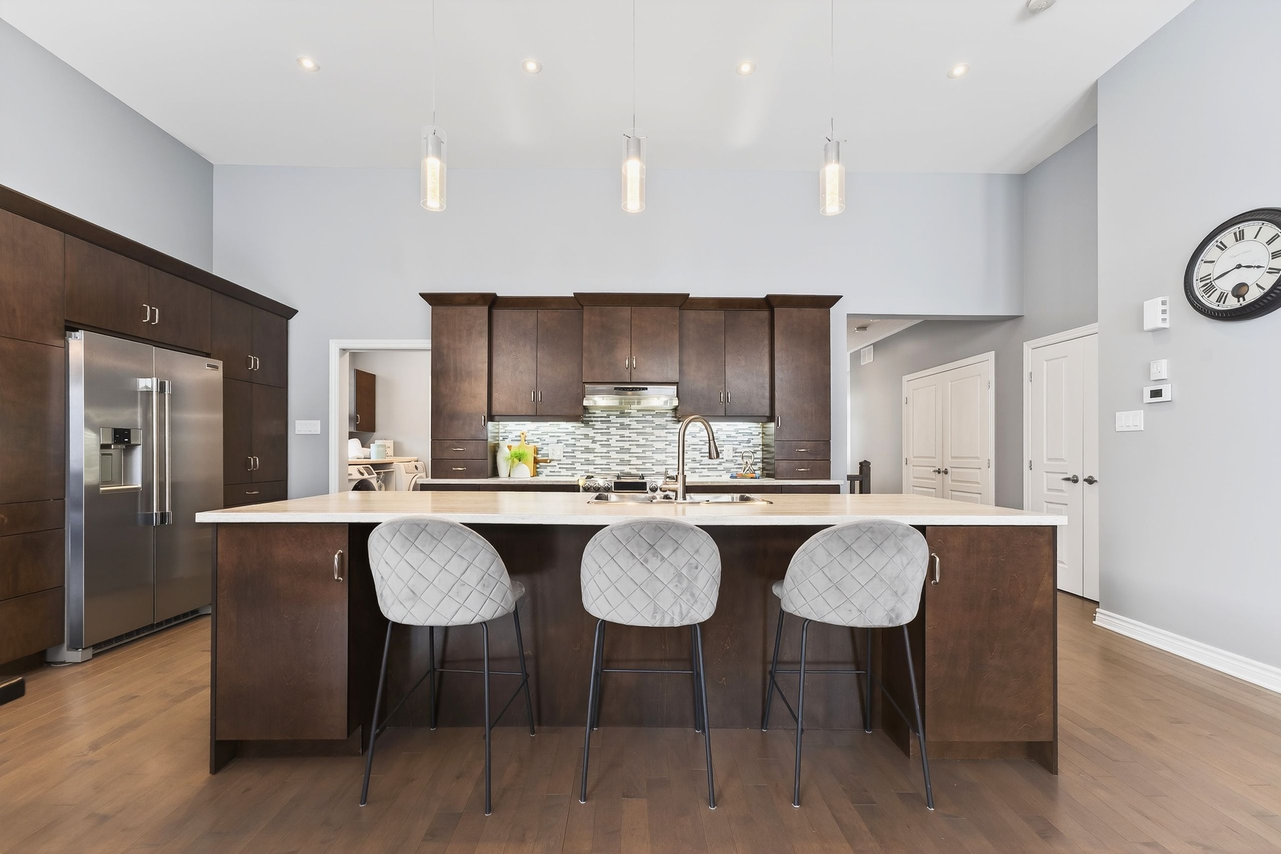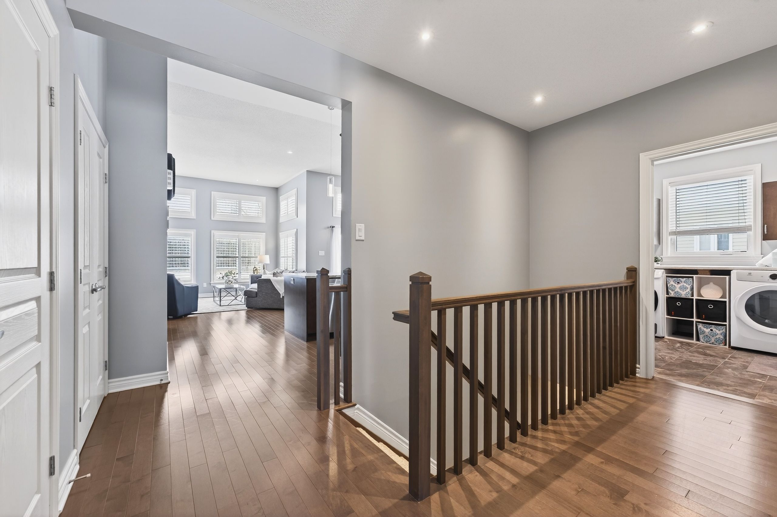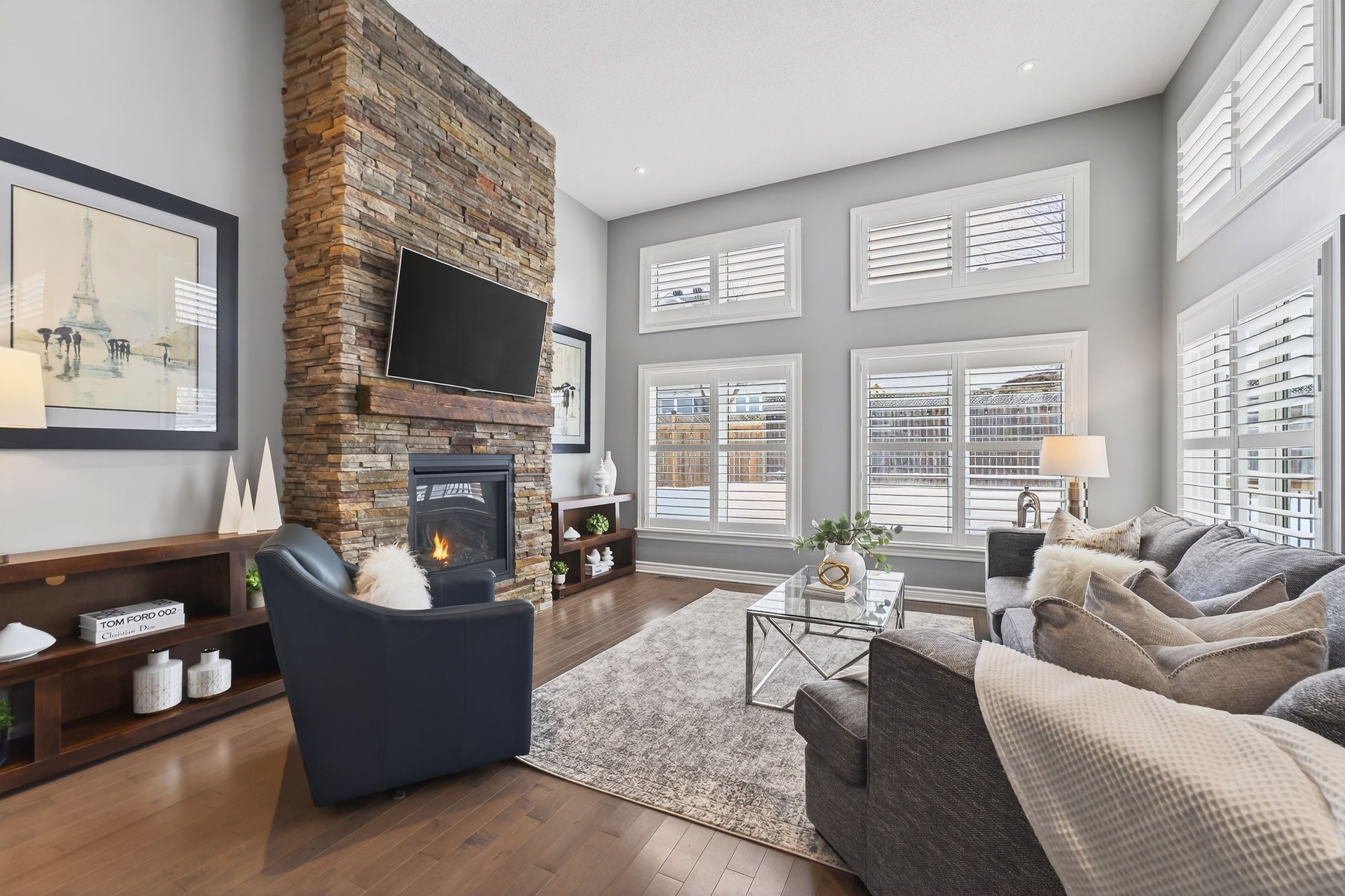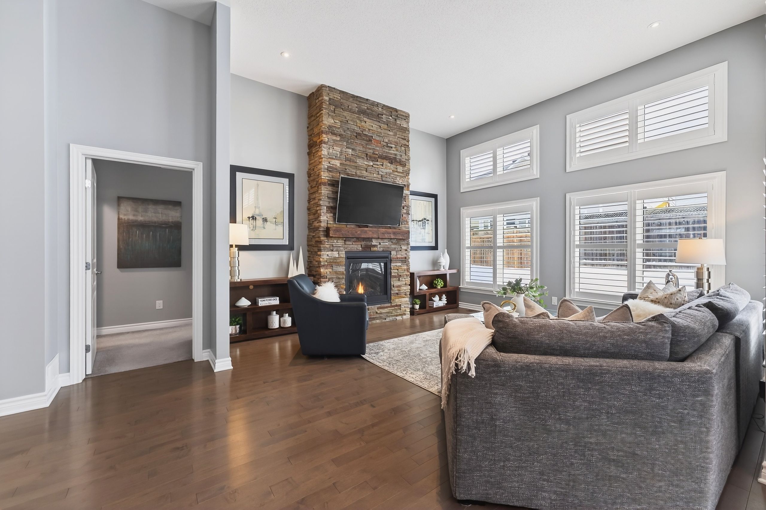 Welcome to 834 rockson crescent - a highly sought-after custom-built metric home offering 3+1 bedrooms and 3 full bathrooms, thoughtfully designed for both comfort and style. From the moment you enter, you're greeted by a bright and inviting foyer with tiled flooring that transitions seamlessly into rich hardwood throughout the main living space. Soaring 12-foot cathedral ceilings create an airy, open atmosphere that enhances the home's natural light and architectural presence. The open-concept kitchen and living area is beautifully appointed with elegant window shutters, a striking natural gas stone fireplace, and a functional island with abundant counter space. A rare oversized walk-in pantry provides exceptional storage and everyday convenience. The main level also features convenient laundry, inside access to the garage, neutral tones throughout, two linen closets, and three generously sized bedrooms. The serene primary retreat offers 9-foot ceilings, a walk-in closet, and a spa-inspired ensuite complete with double sinks, a spacious walk-in shower, and slate-colored ceramic flooring. Upgrades include 33" doors for mobility (with exception of 2 front bedrooms). Enhanced soundproof insulation in select main-floor walls and the lower level adds an extra layer of comfort and privacy. The finished lower level, complete with berber carpeting, includes a fourth bedroom with a generous closet, a full 3-piece bathroom, and a large recreation room ideal for a home gym, media space, or flexible family living. Lower level has rough-in for wet bar or kitchenette. Step outside to an expansive back deck perfect for summer entertaining, along with a functional patio area and fully fenced backyard for added privacy. This property offers a seamless blend of functionality, warmth, and timeless appeal in a desirable neighborhood of stittsville on a private crescent.