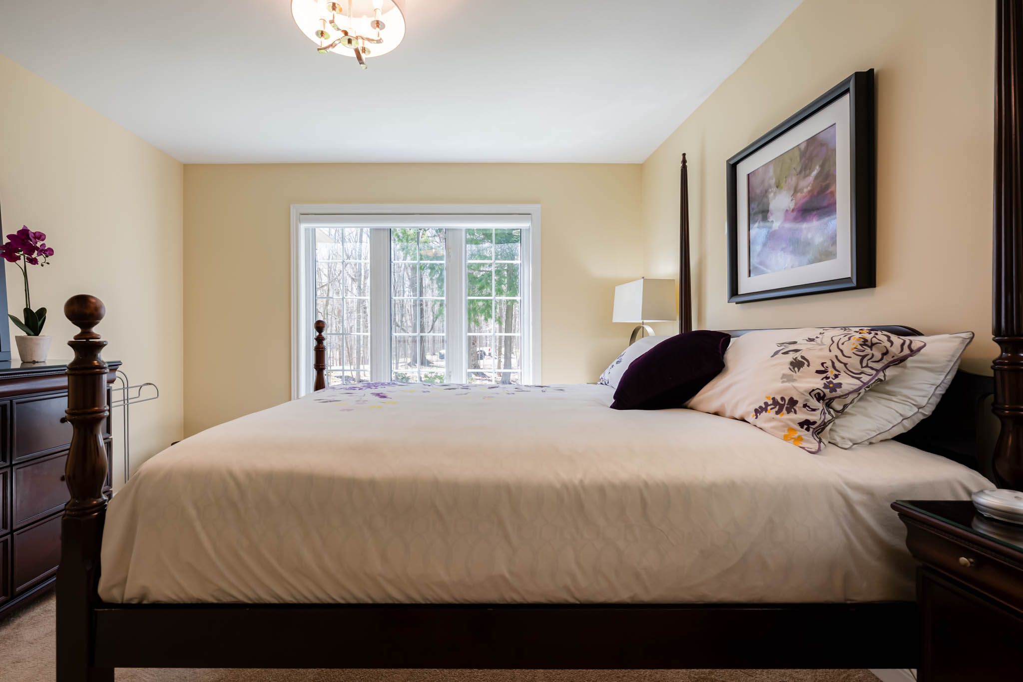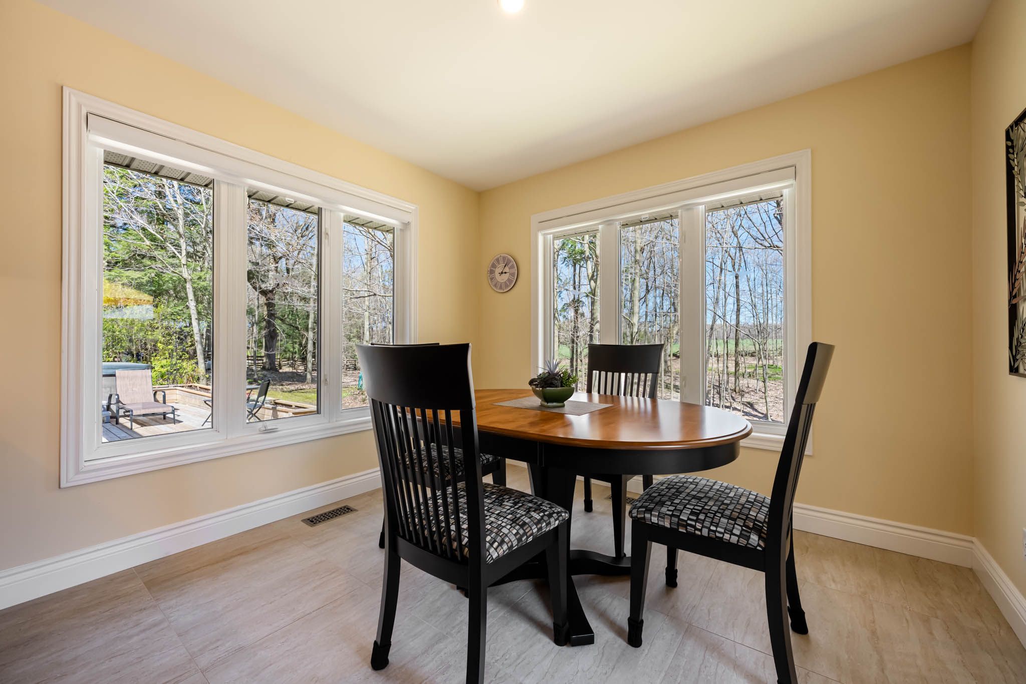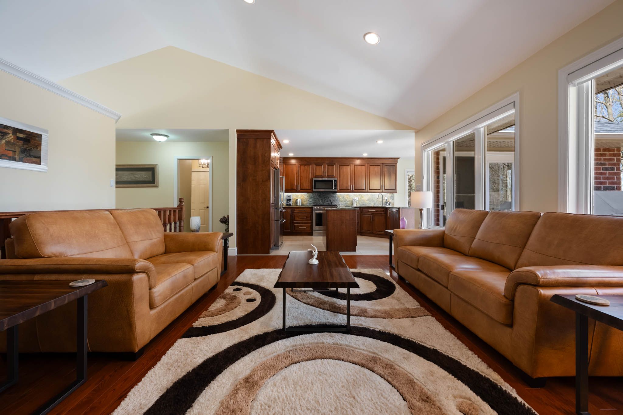 • Spacious open concept layout with cathedral ceilings and large windows.