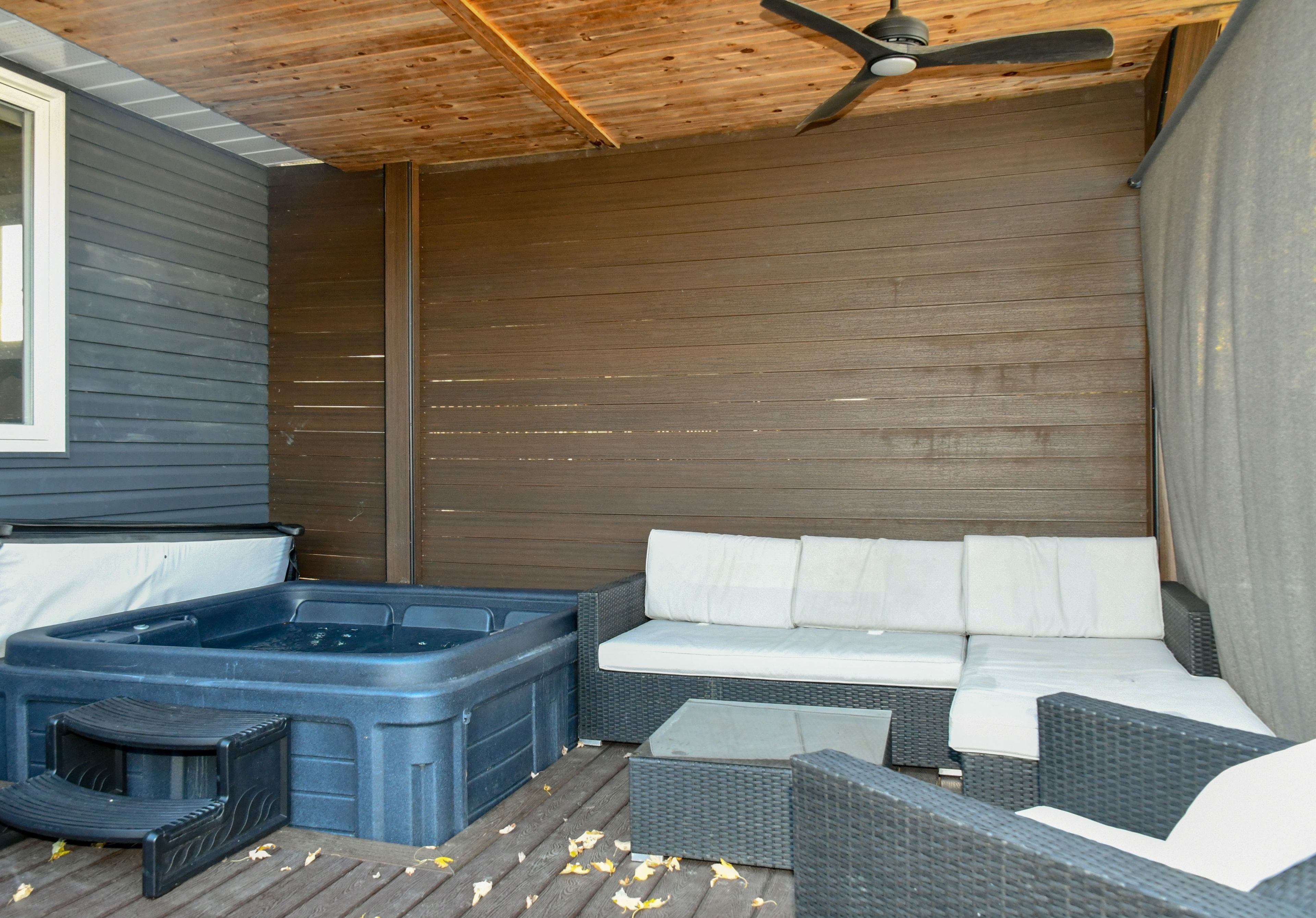 • Expansive deck and built-in hot tub for year-round relaxation and gatherings.