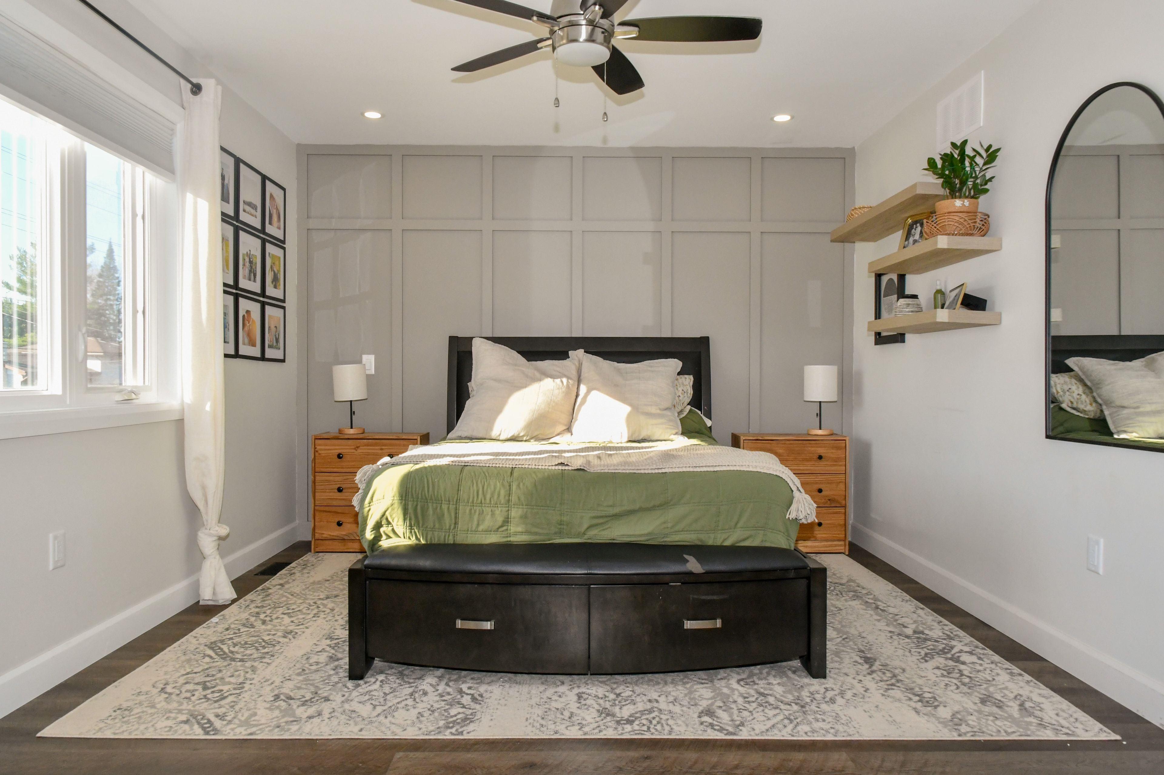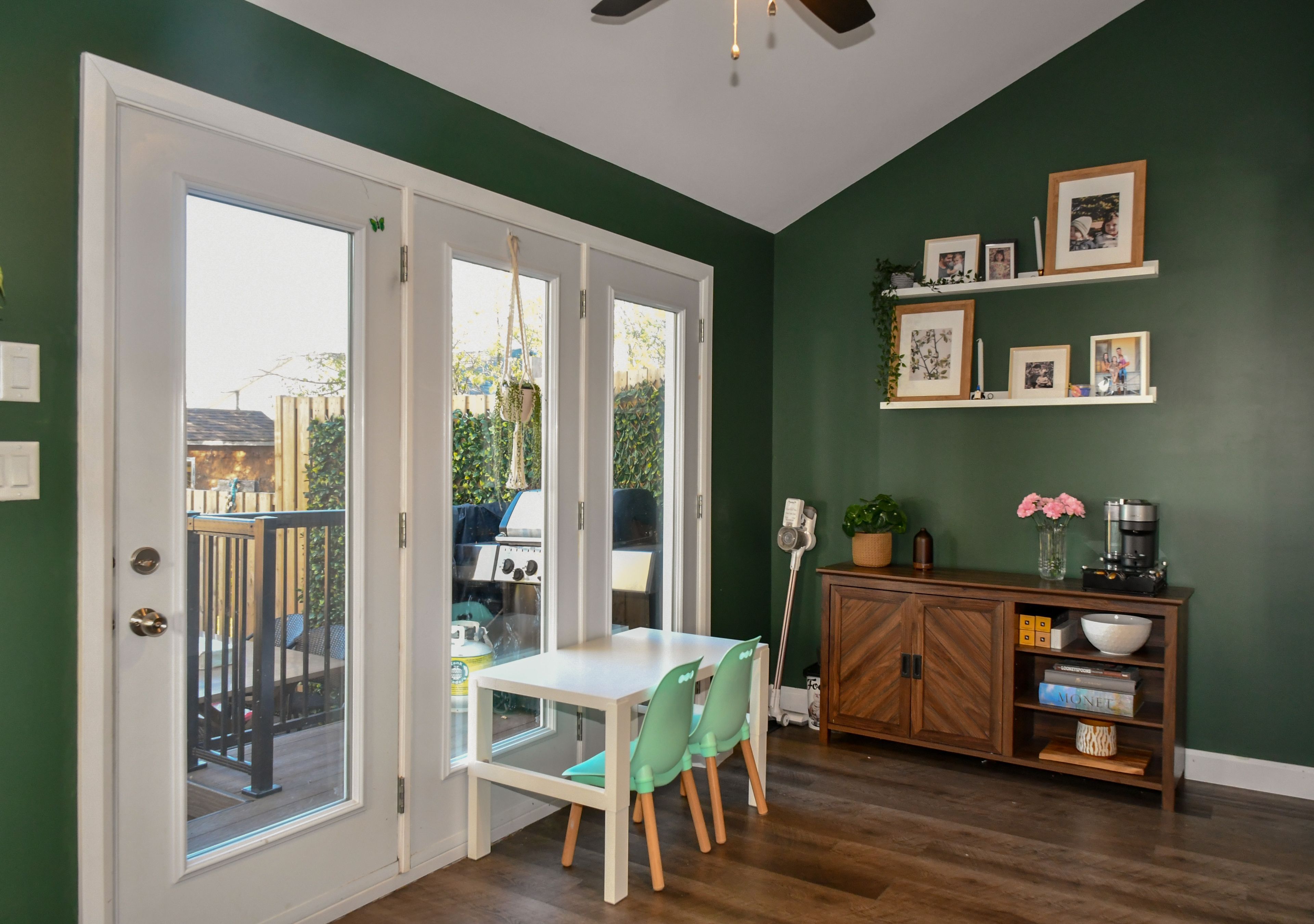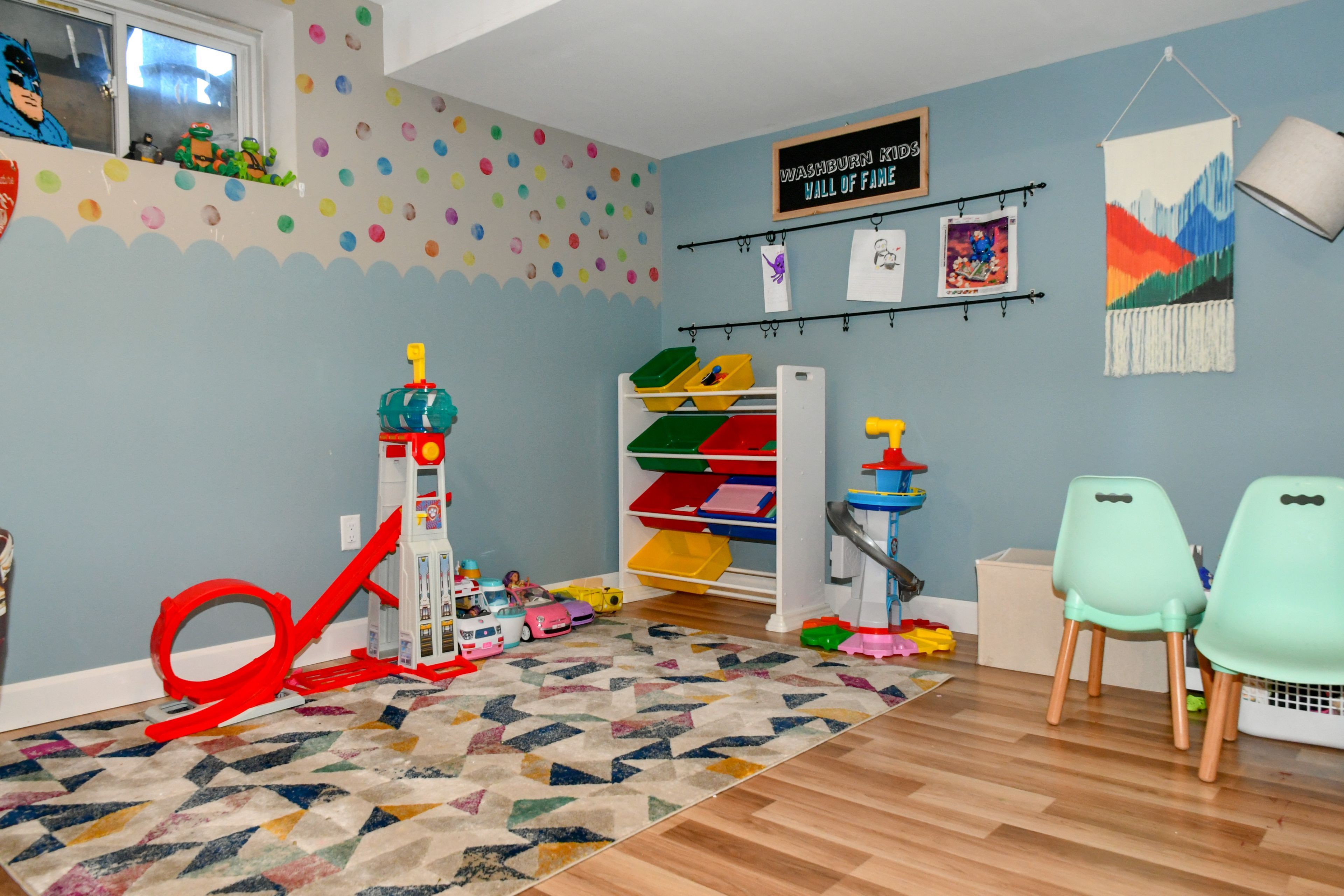 • Generous backyard space with room for play, storage shed, and lush lawn.