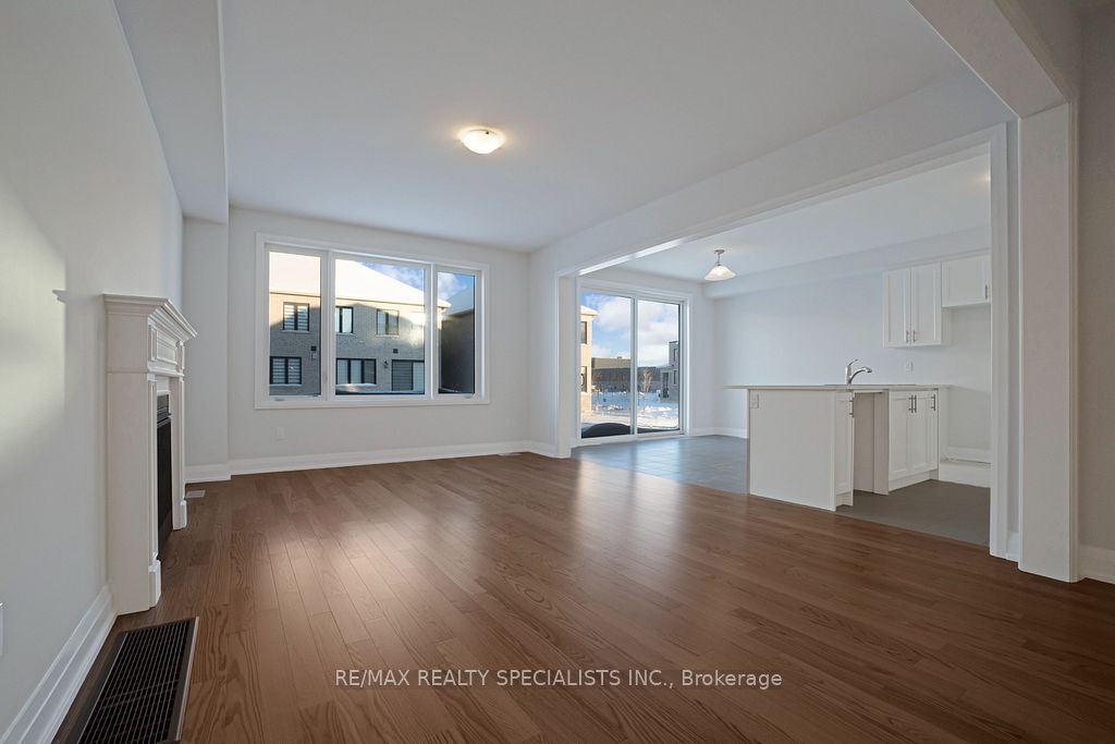Brand-new, never-lived-in freehold detached home offering 4 bedrooms and 3 bathrooms, thoughtfully designed with a bright, functional layout ideal for modern family living. A striking open-to-above foyer welcomes you, complemented by hardwood flooring on the main level and a spacious family room featuring a contemporary fireplace. The upgraded kitchen showcases quartz countertops, stainless steel appliances, abundant cabinetry, and a breakfast area with walk-out to the backyard-perfect for everyday living and entertaining. The primary bedroom retreat features a luxurious 5-piece ensuite and a walk-in closet, while three additional generously sized bedrooms provide comfort for the entire family. Additional highlights include main-floor laundry, interior access to a double-car garage, a full unfinished basement offering excellent storage or future potential, and parking for up to four vehicles. Situated in a family-friendly, newly developed neighbourhood, this home is close to shopping plazas, woodstock gurudwara, and a new school currently under construction, with convenient access to major routes. An exceptional opportunity to own a move-in-ready home in a growing community.