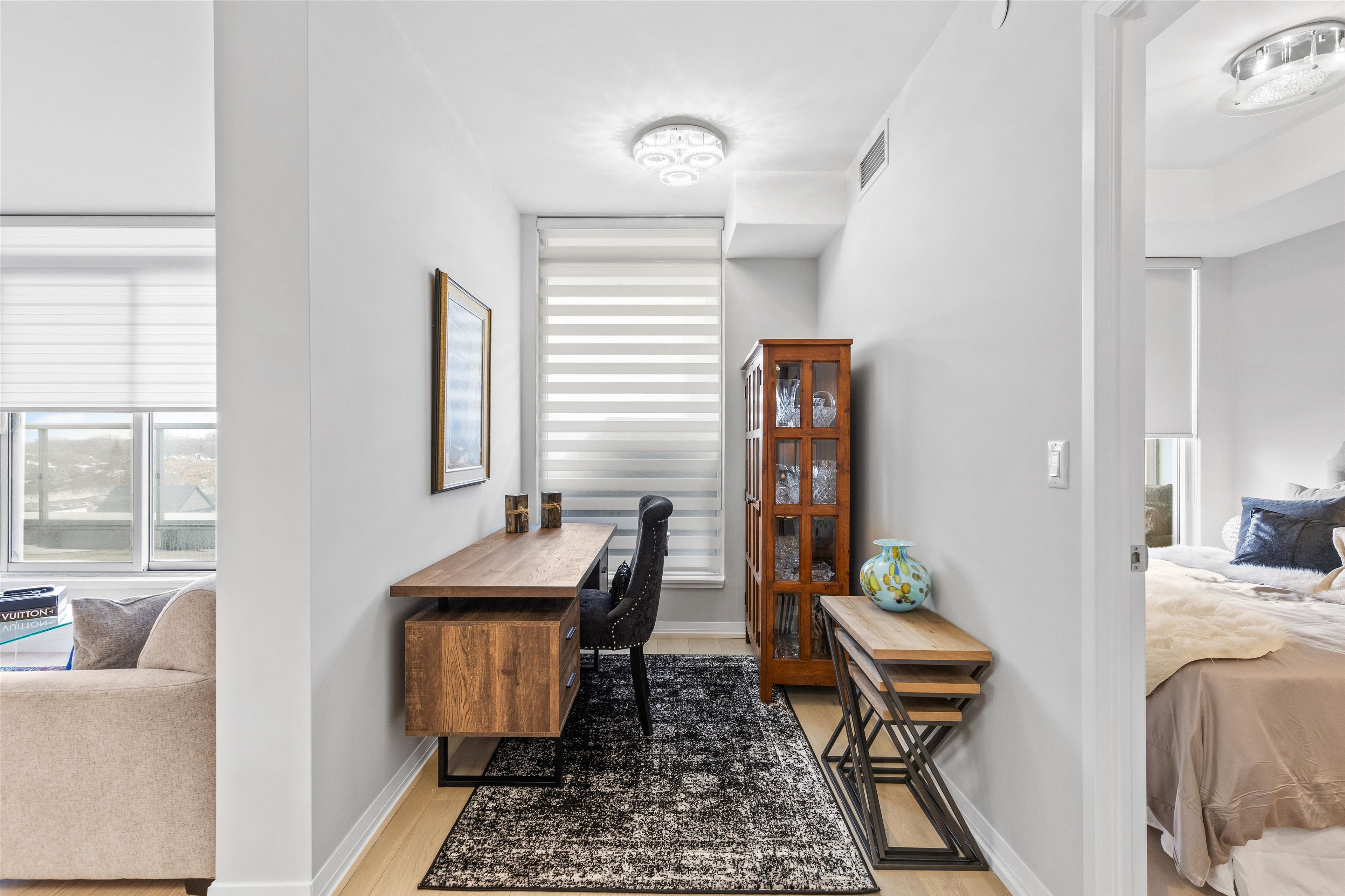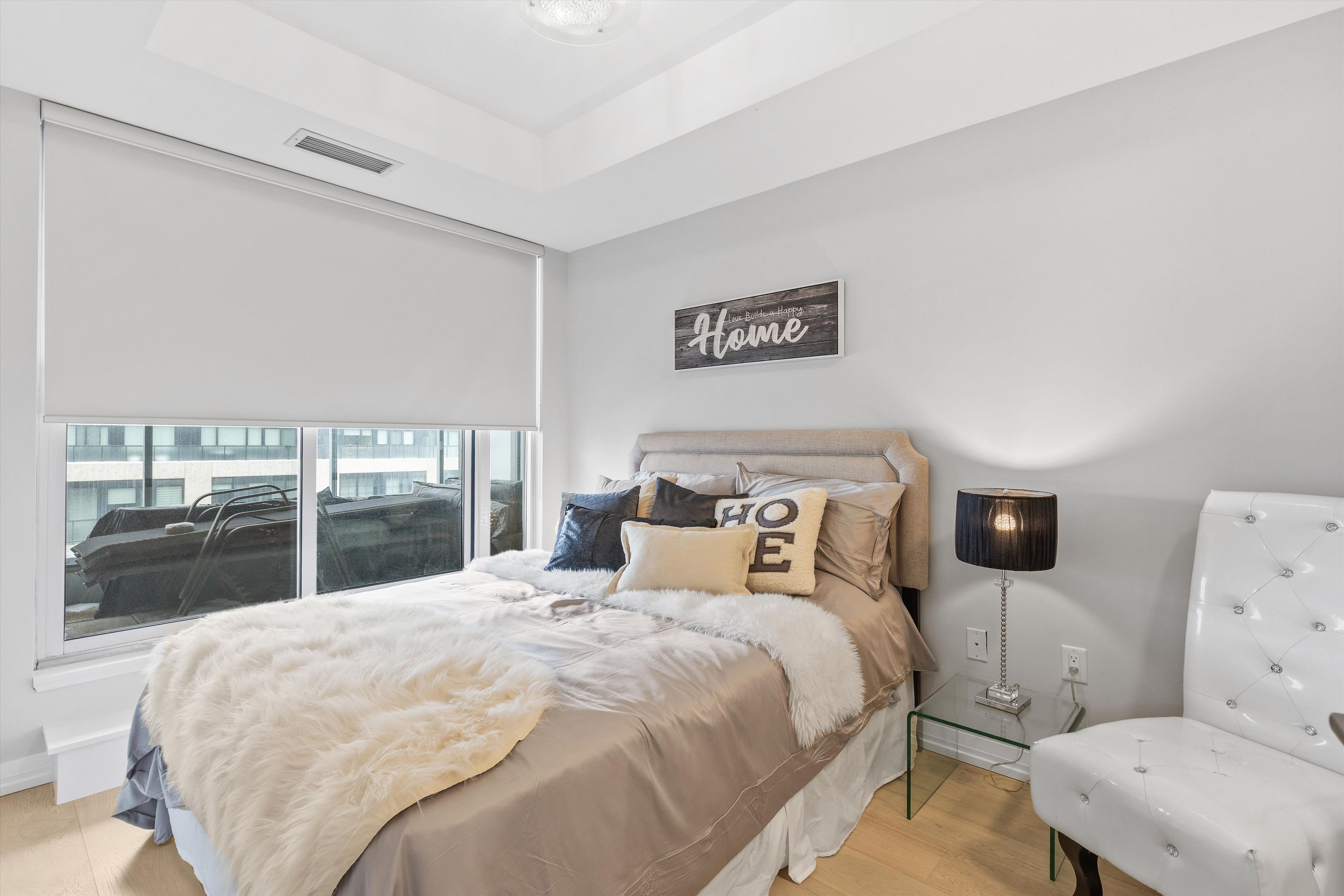 Welcome to the coveted nest building! This beautifully appointed 2 bedroom + convertible den,2 bathroom residence offers the perfect blend of style, comfort, and convenience. Spanning 948 sq ft, this bright,sun-filled suite features a highly functional layout and a stunning 200 sqft extra-wide terrace-ideal for relaxing, entertaining, and enjoying seamless indoor-outdoor living. Inside, you'll find designer finishes throughout, including custom crystal light fixtures, electric fireplace, built-in closet systems, and neutral modern décor that creates a sophisticated yet inviting atmosphere. The versatile convertible den is perfect for a home office, nursery, or guest space, adding flexibility to suit your lifestyle. This immaculate condo is in pristine, move-in-ready condition-there is truly nothing to do but call the movers! Residents enjoy premium building amenities including 24-hour concierge and security,two party rooms, and a spectacular communal rooftop with indoor and outdoor lounges with skyline views and outdoor kitchens-perfect for hosting and relaxing with friends and family. Located just steps from shopping, dining, and everyday conveniences, this is city living at its finest. Show and sell!