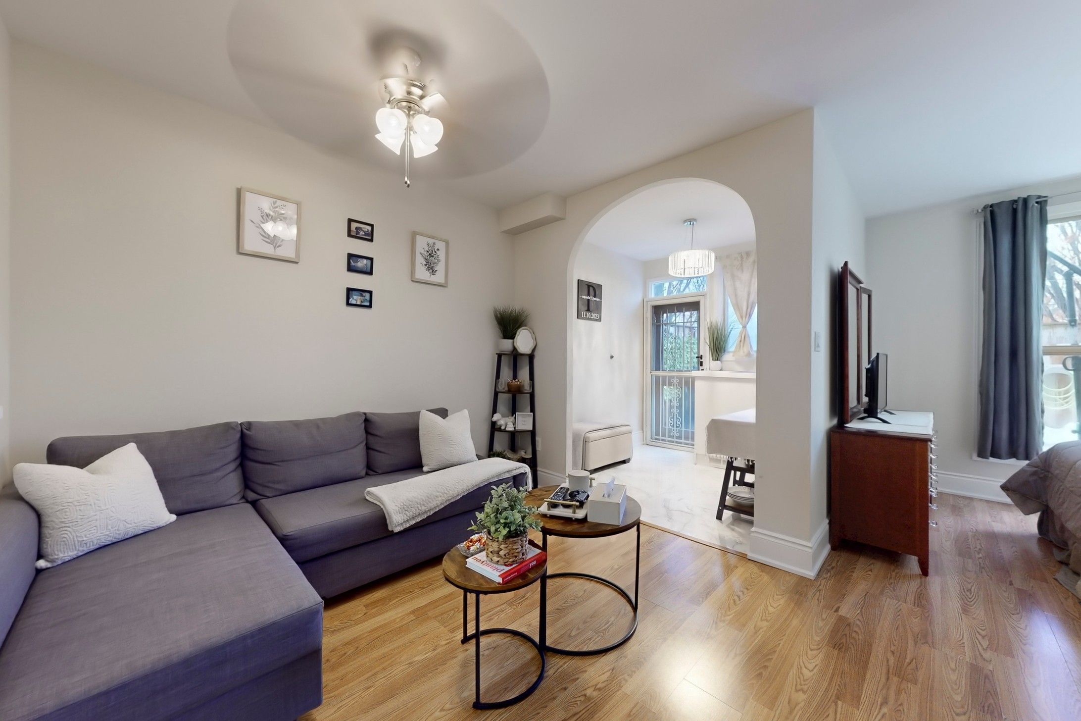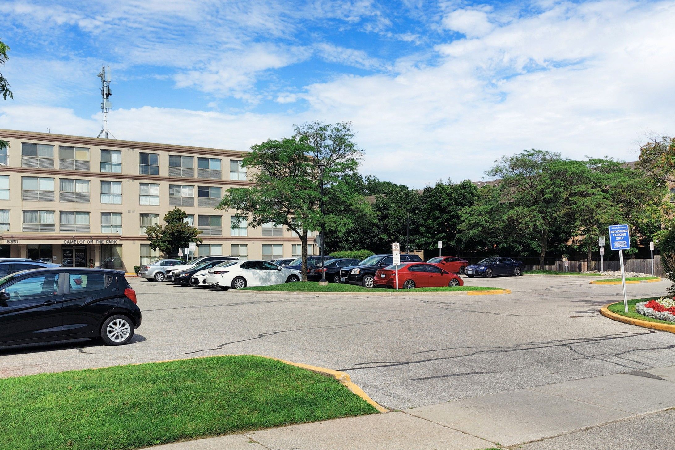 Welcome to camelot on the park, a quiet, well-maintained low-rise condominium ideally located near all amenities in the heart of brampton. This rare, move-in-ready first-floor suite offers a private oversized terrace of approximately 275 sq ft (approx. 18. 5 ft x 15 ft), perfect for outdoor entertaining, bbqs, and gardening. Only a handful of units enjoy this feature, with grass maintenance handled by the condo corporation for true low-maintenance living. Offering 505 sq ft of functional living space (per mpac), the suite features an updated kitchen with tiled flooring and backsplash (2023), re-stained cabinetry, and a convenient breakfast bar. The spacious 4-piece bathroom includes a walk-in tub, updated vanity, showerhead, bathtub tiling, and a full-sized stacked lg washer and dryer in the ensuite laundry area. The sunroom has been thoughtfully converted into a dining area, complete with a custom archway, italian tile flooring, and an updated door providing direct access to the terrace. The open-concept bedroom overlooks the yard and includes a generous walk-in closet, creating an airy and comfortable layout (bedroom is open to the living area). Additional updates include modern light fixtures, smooth ceilings, high baseboards, and a soft neutral colour palette throughout. Ideal for downsizers or first-time buyers seeking outdoor space and convenience. Residents enjoy excellent amenities including an indoor pool, fitness centre, party room, library, billiards room, visitor parking, and more. Centrally located near sheridan college, shoppers world, and with a quick commute to downtown brampton (gage park, ymca, lots of dining options). Future hazel mccallion lrt will connect shoppers world directly to port credit (currently under construction). Maintenance fees include heat, hydro, water, central air, one owned parking space, and a locker. A wonderful opportunity to join a welcoming and well-managed community. See virtual tour link for 3d tour