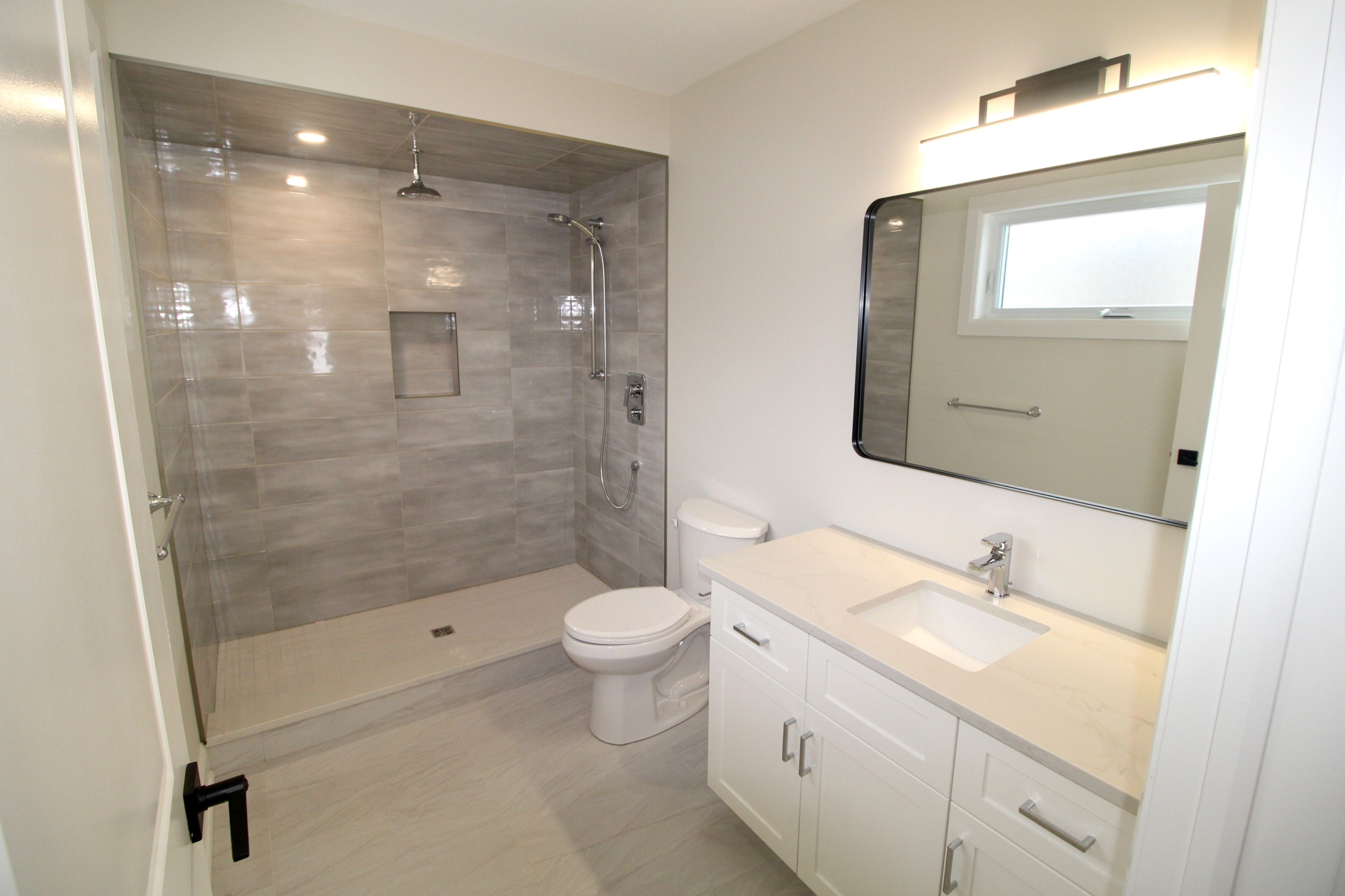 • Lower level includes a rec room, extra bedroom, and additional bathroom.
